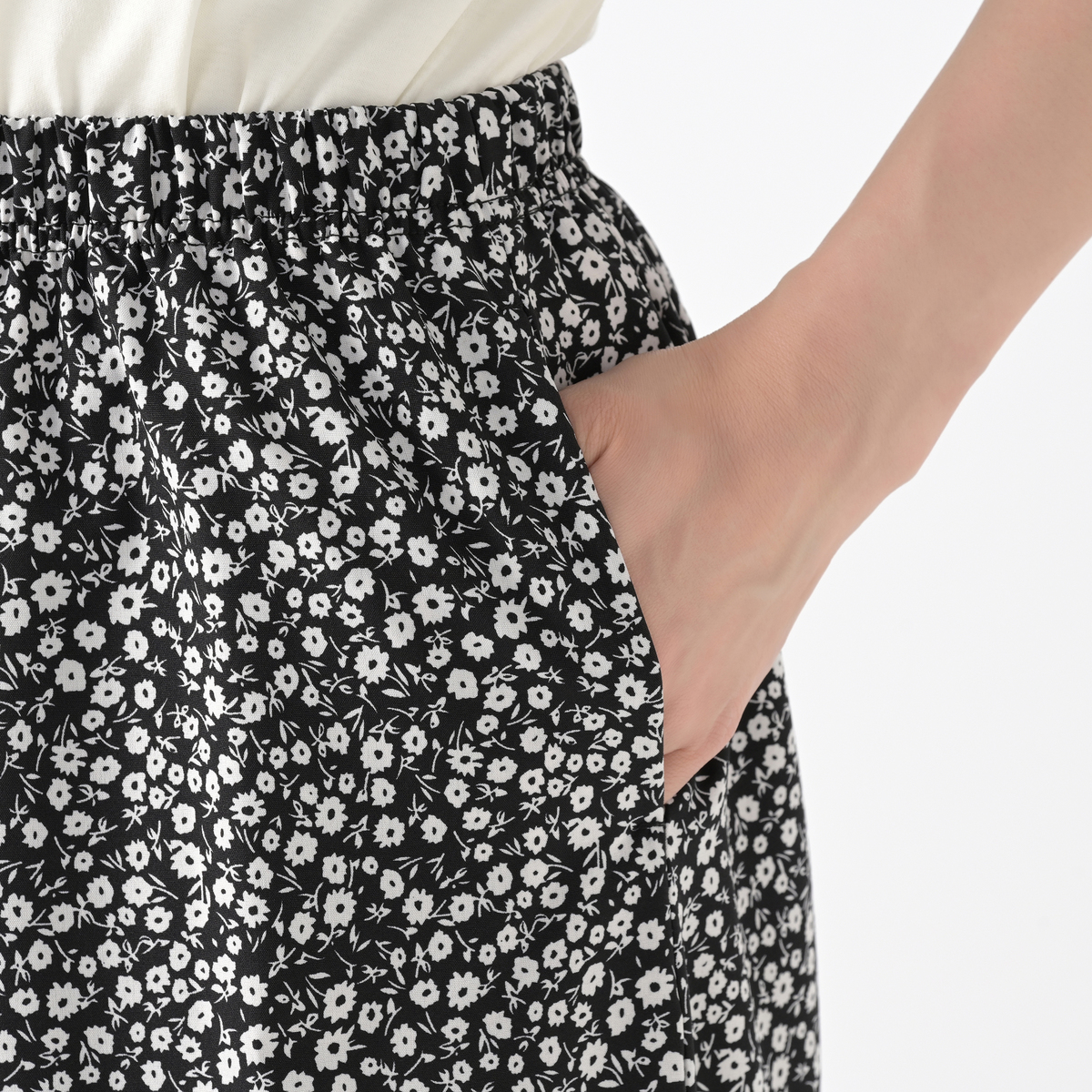 ウエストはゴム仕様でリラックス感のある穿き心地。たっぷりとギャザーを入れて、お腹やお尻周りをやさしく包み込みます