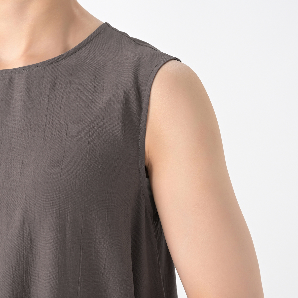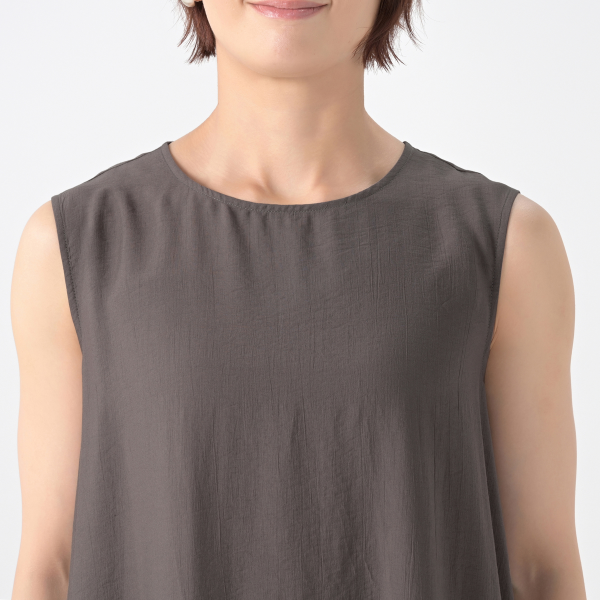 広がりすぎないクルーネックがお顔まわりをすっきり見せ、シンプルなデザインはアクセサリーや羽織りとの組合せも自由自在。お出かけやリゾート、デイリーコーデにも活躍します
