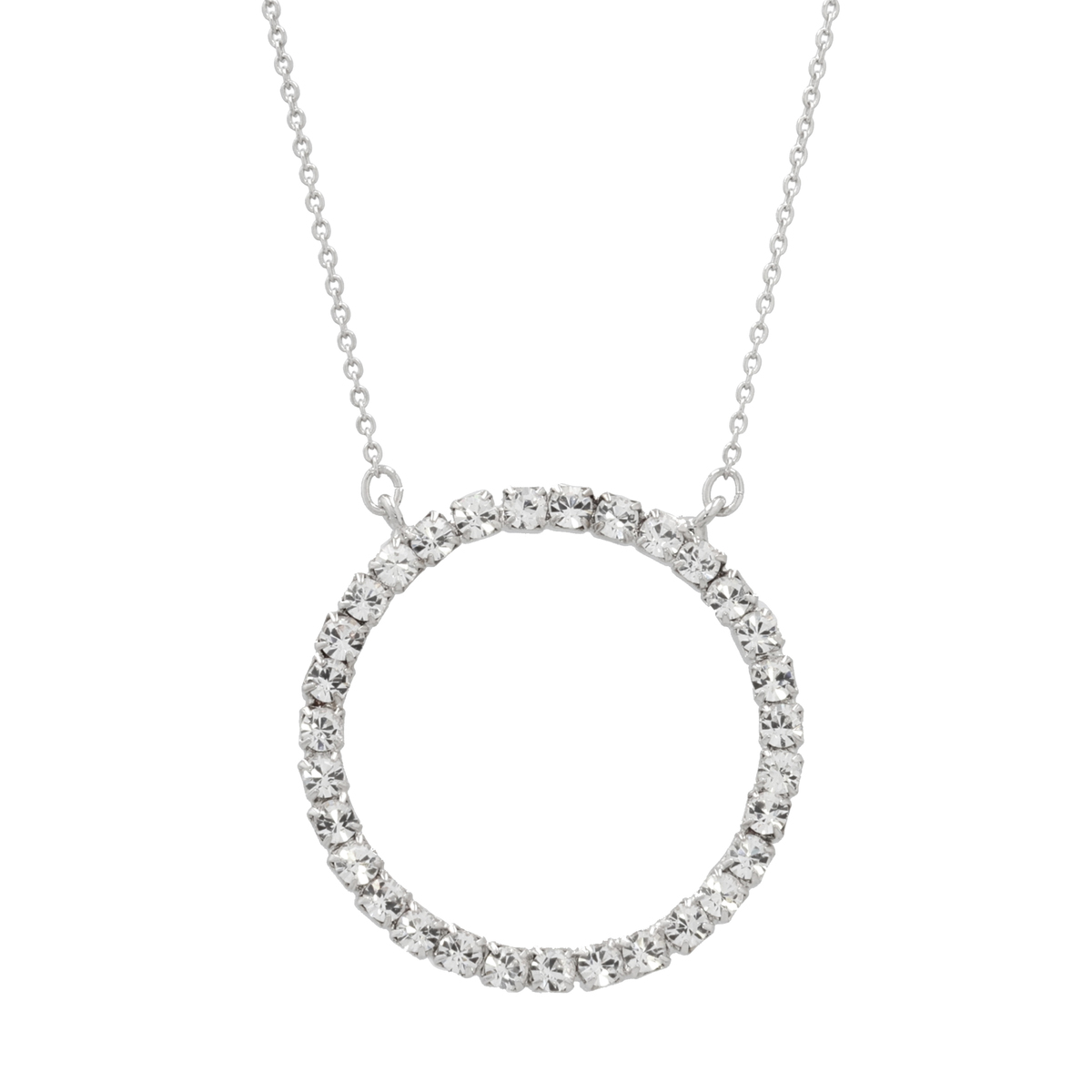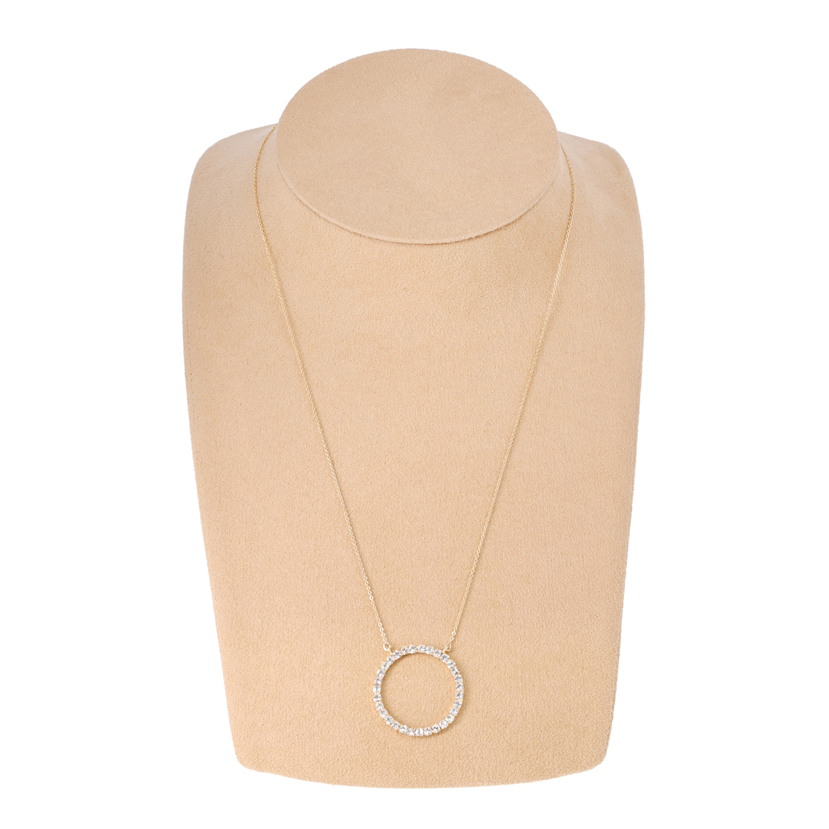 存在感ある大きめなビジューモチーフが胸元で美しく輝くネックレス。シンプルなラインのロングネックレスで、華やかさと使いやすさを両立し、日常から特別な日まで幅広く活躍します