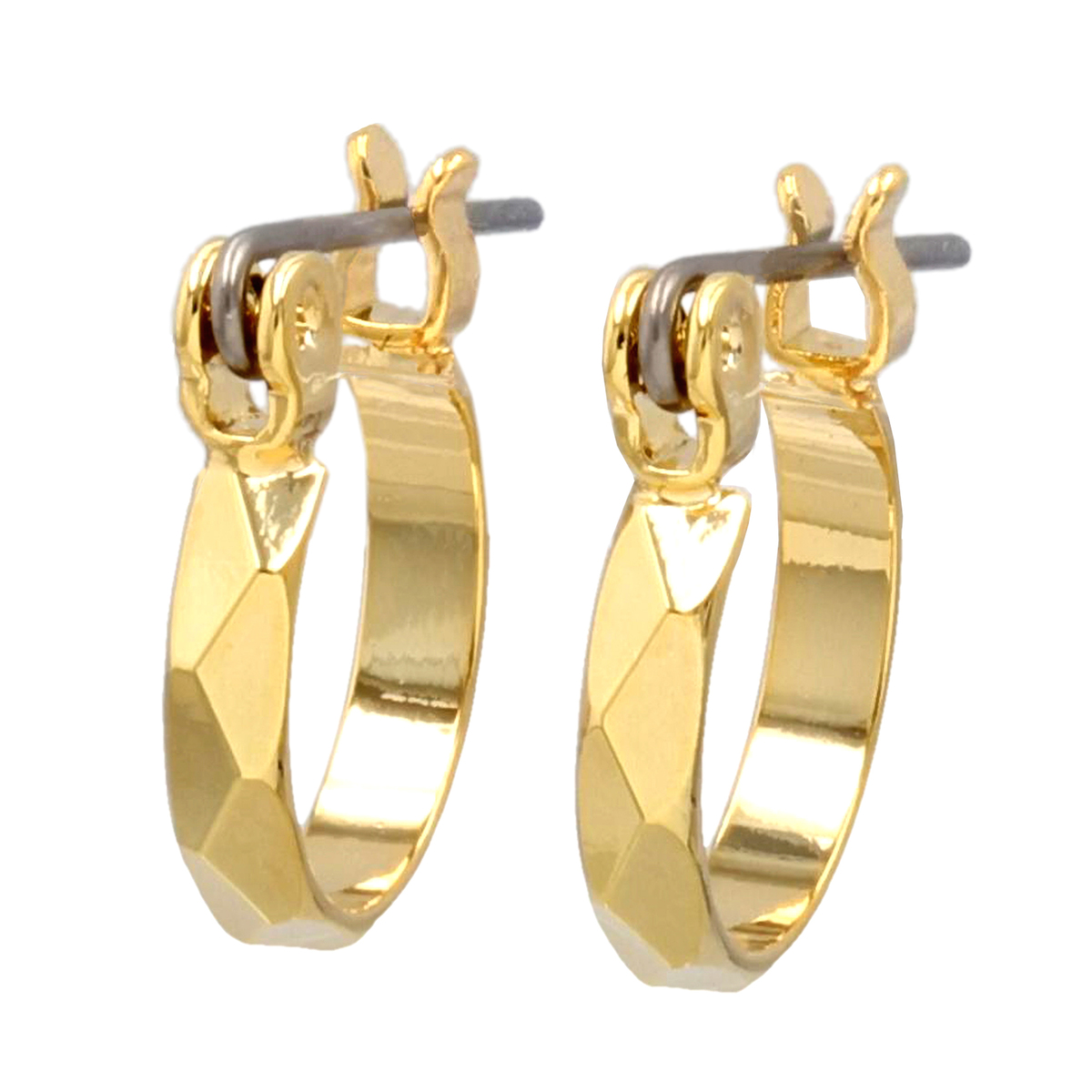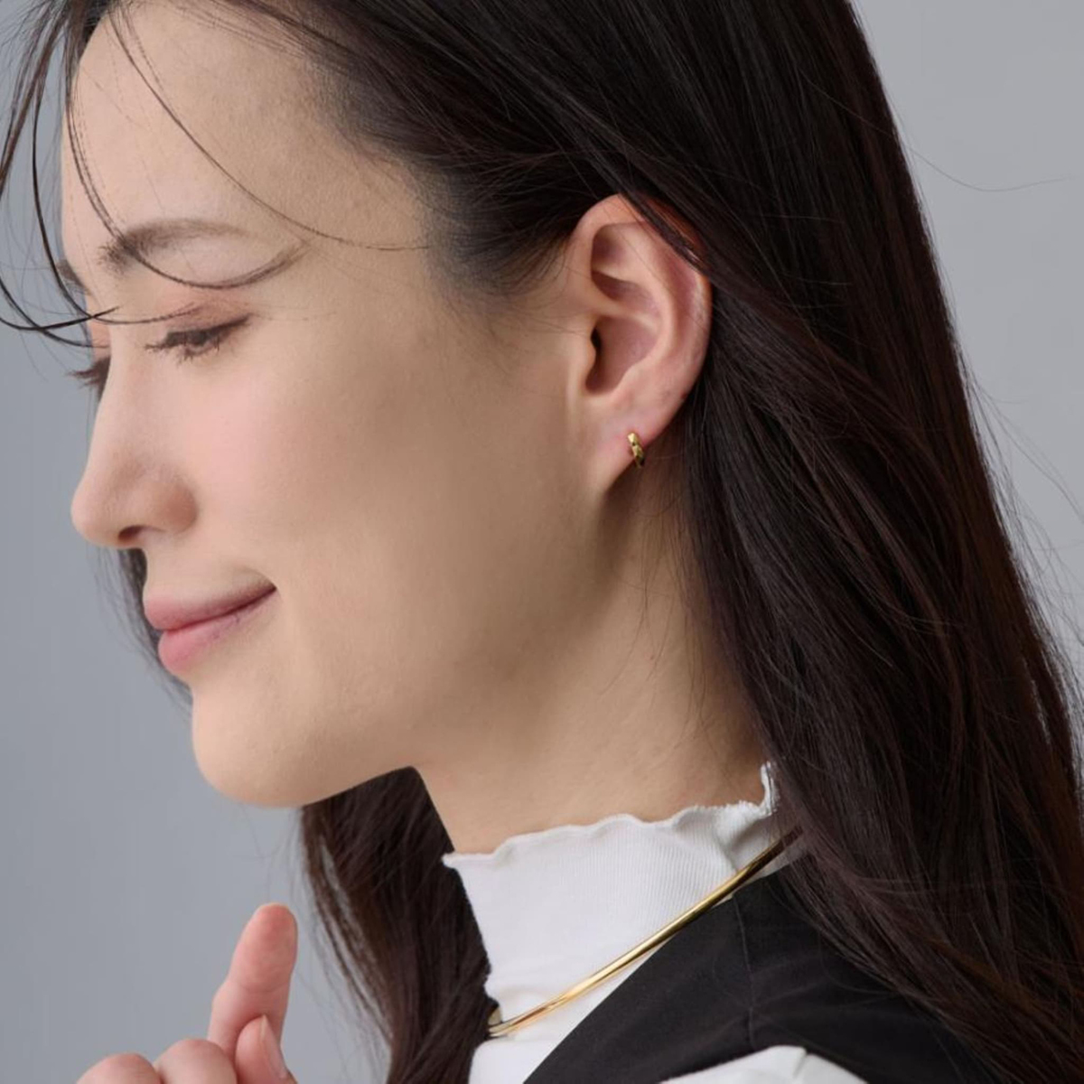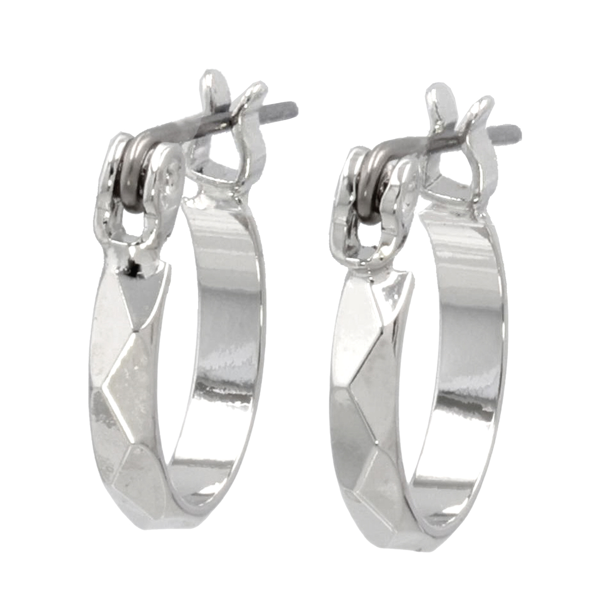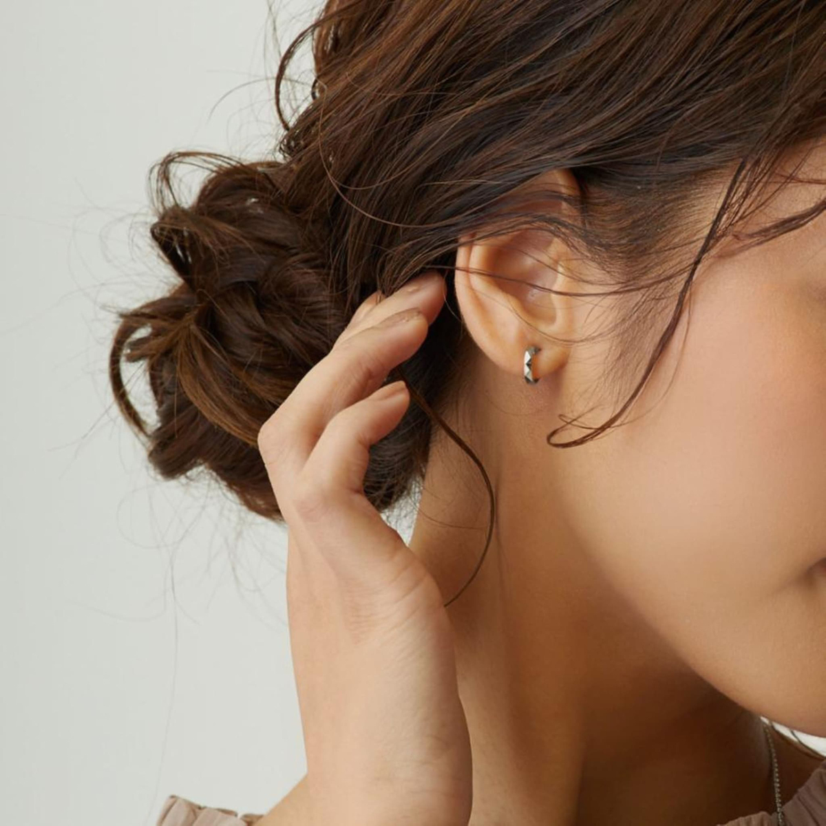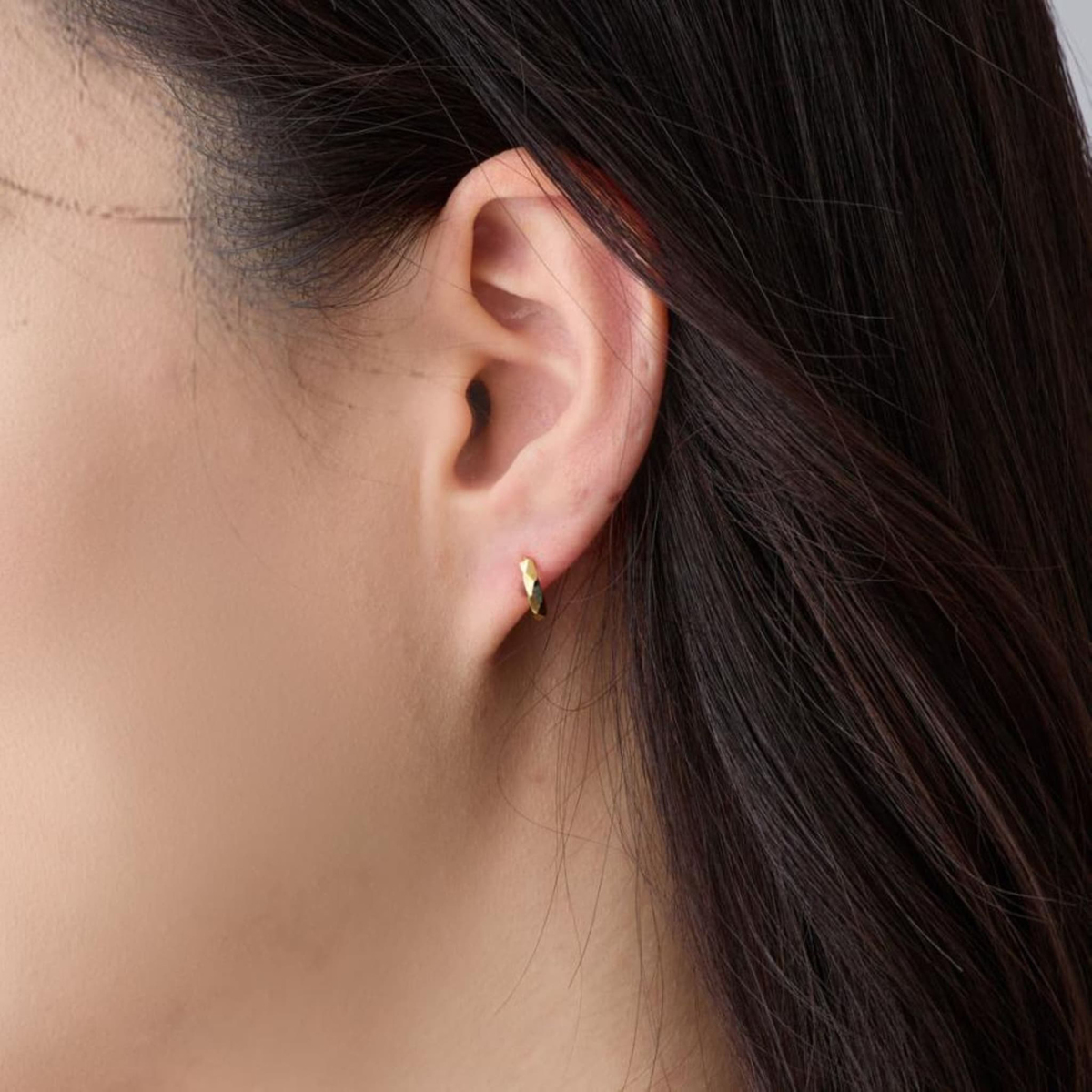 角度によって華やかに輝くダイヤモンドカットが特徴のミニフープピアス。さりげないデザインで上品な耳元を演出します