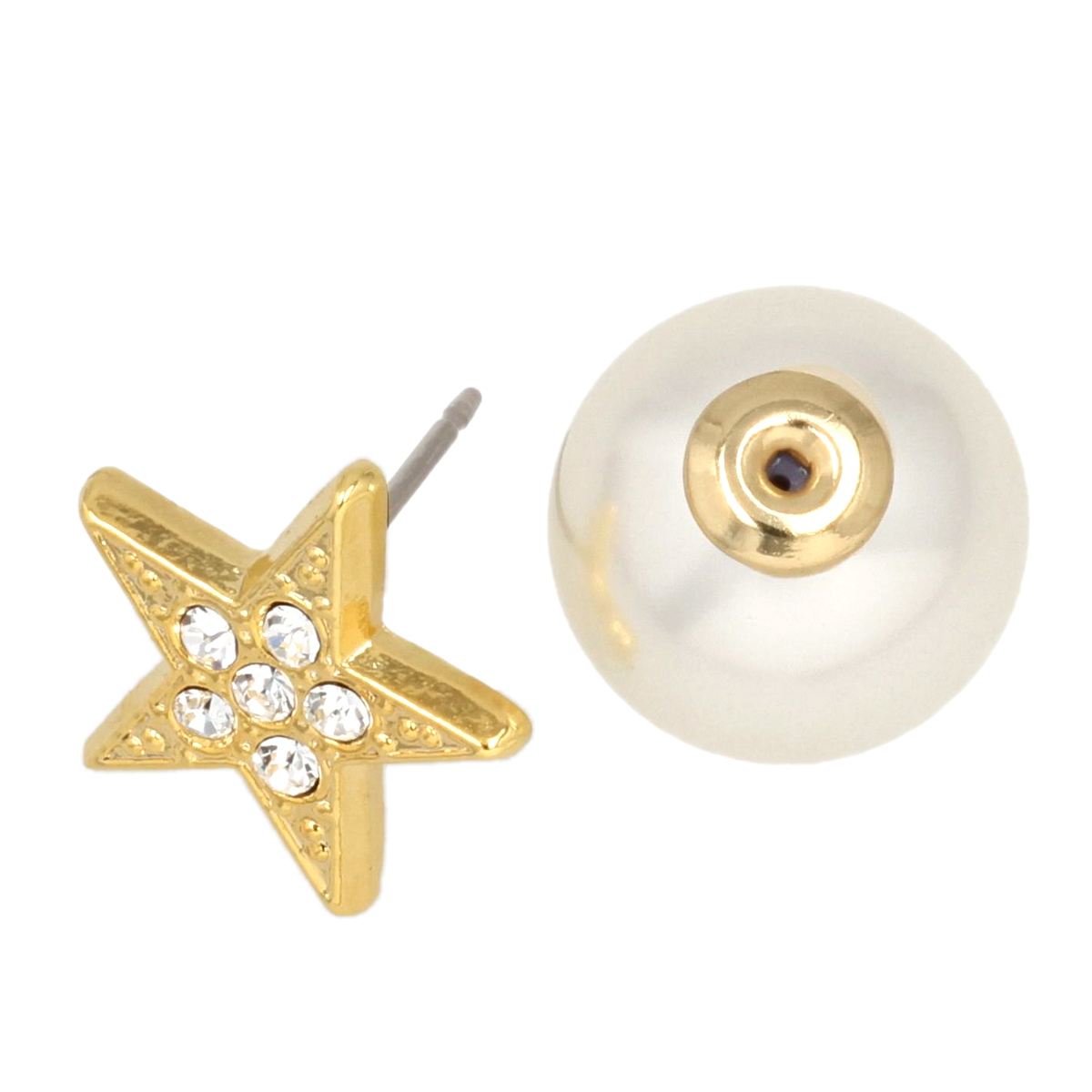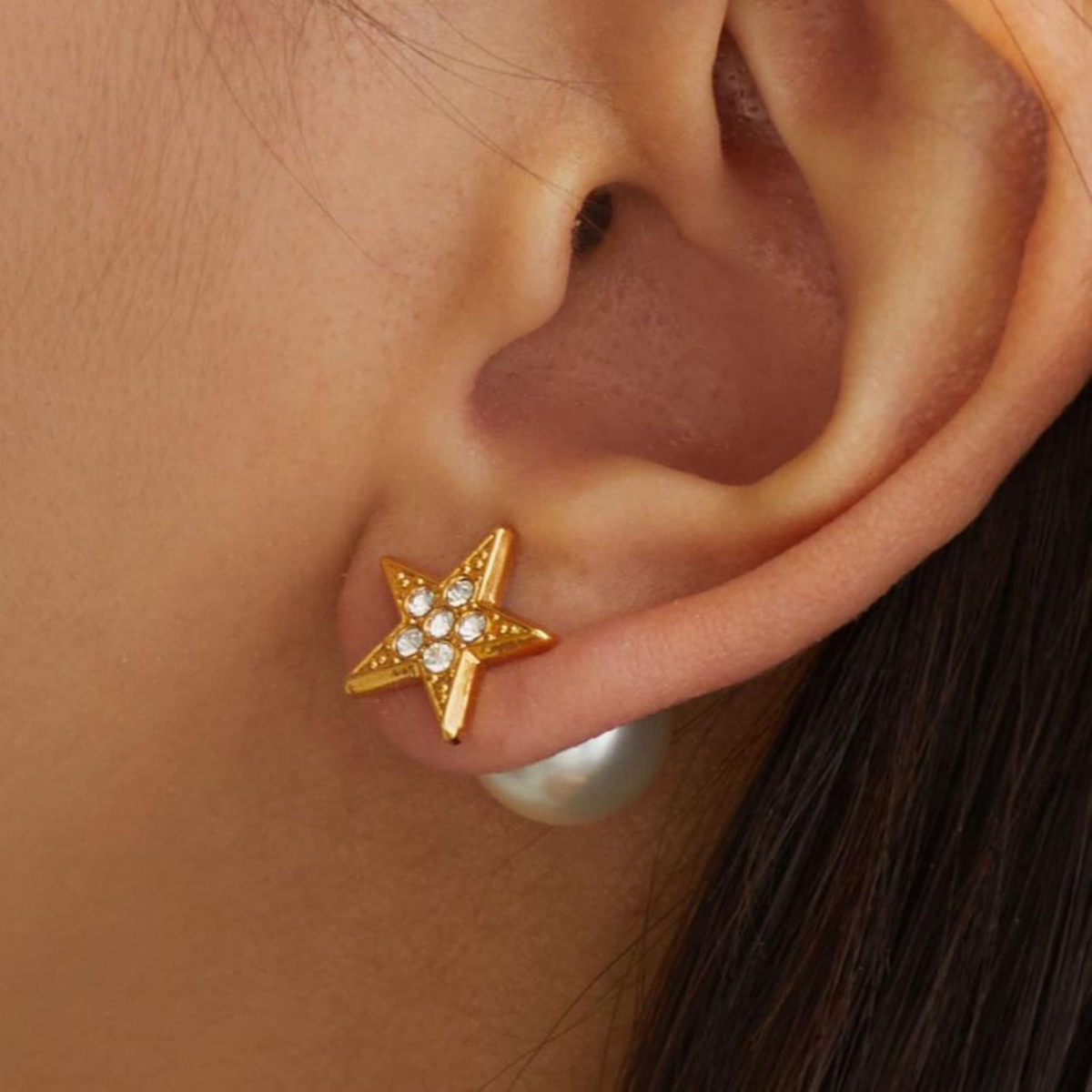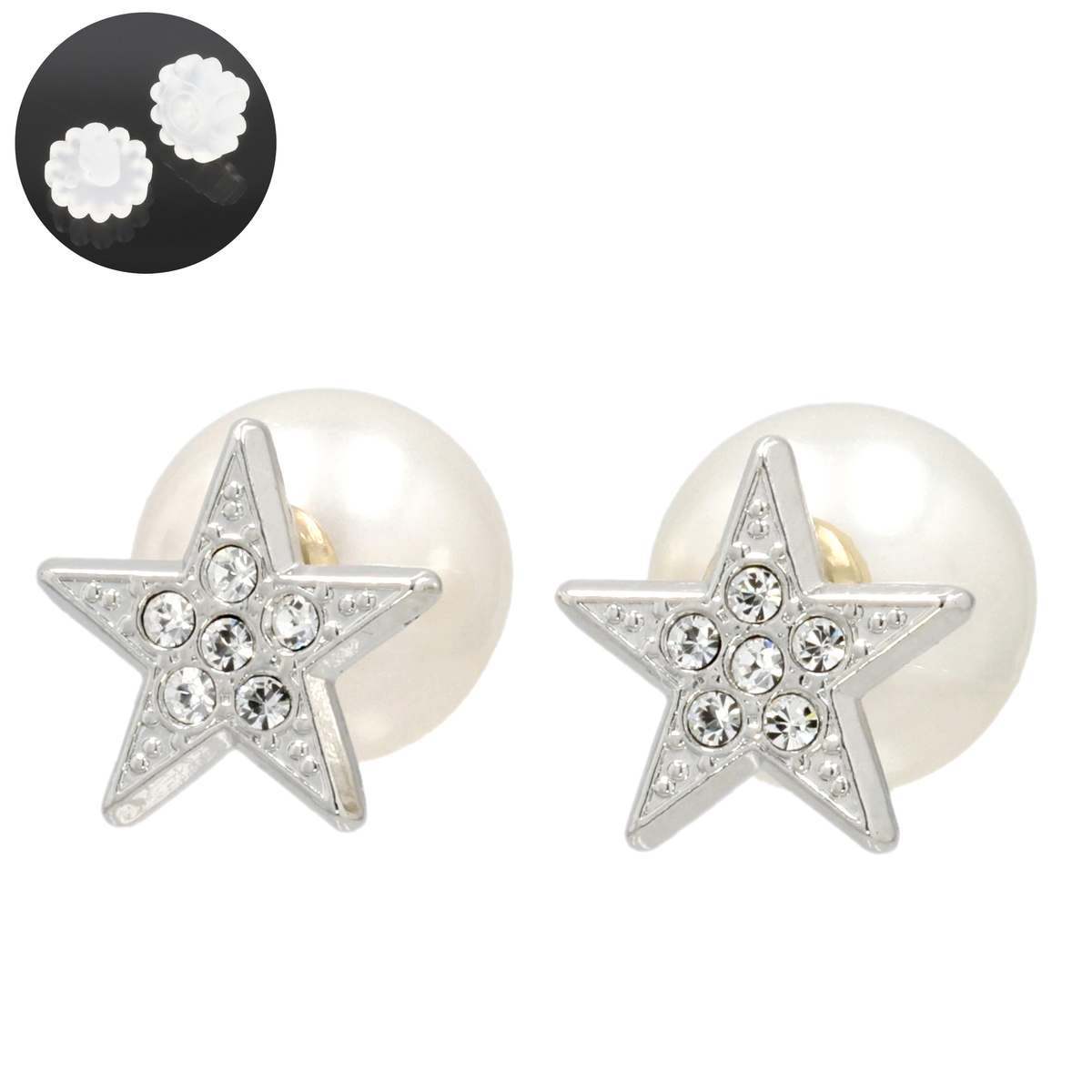 パールビジューのバックキャッチと、煌めくスターモチーフのピアス。どの角度から見ても可愛いデザインで、さりげない遊び心を添えるスターモチーフが洗練された装いを演出。付属のシリコンキャッチに付け替えれば、違った表情も楽しめます