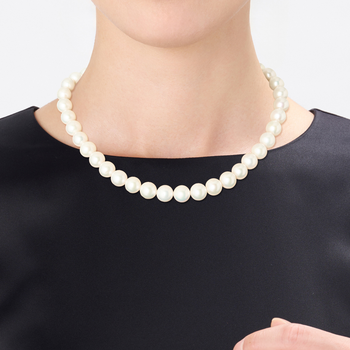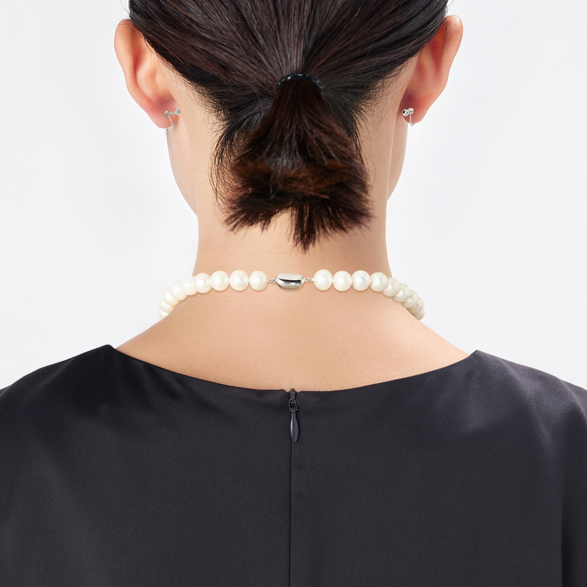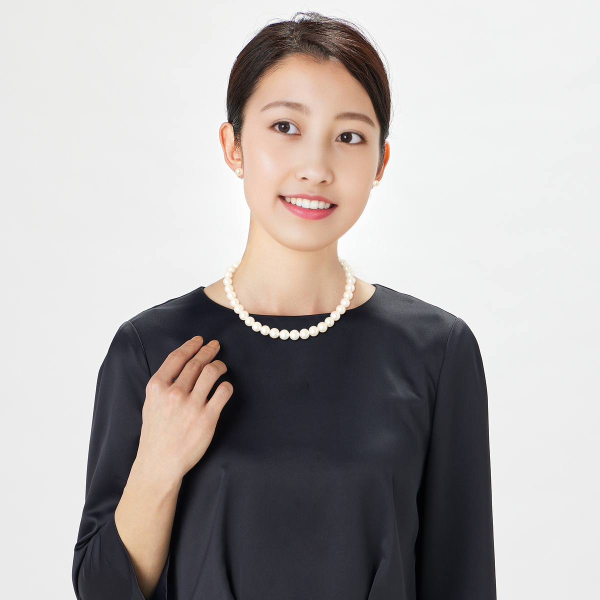 10.0mmUPの淡水真珠を使用したネックレスと、イヤリングまたはピアスのセット。テリにこだわった美しい真珠が胸元、耳元を上品に演出します