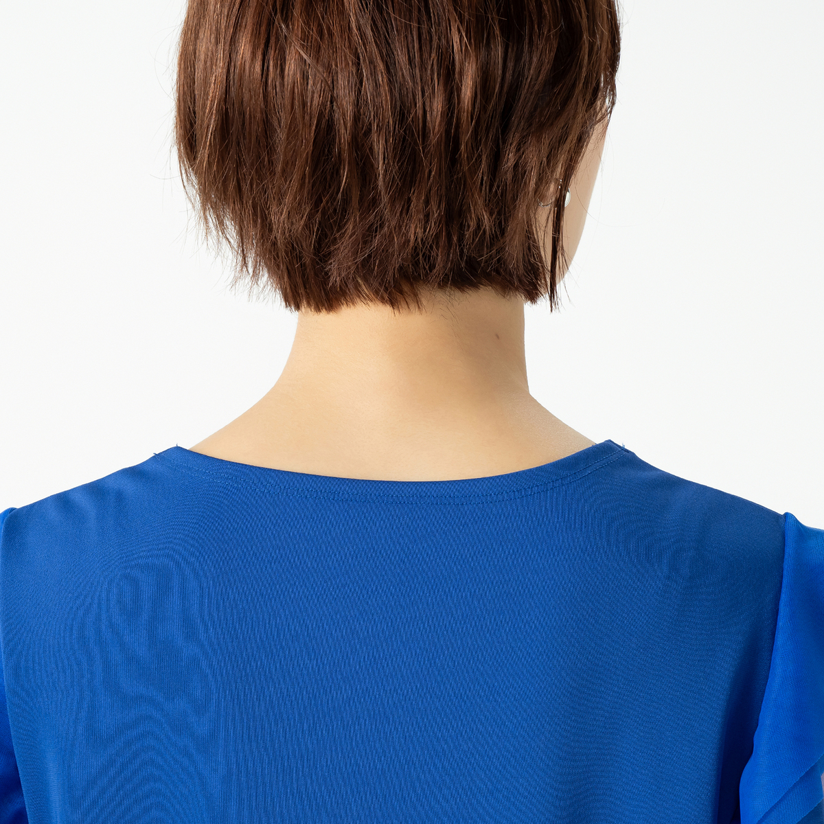 可愛いフリルのお蔭で二の腕が気にならず、体系を綺麗に見せてくれます。涼しくて真夏にも活躍しそうです。