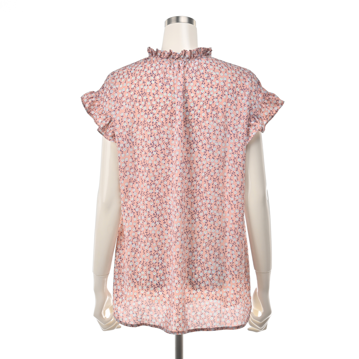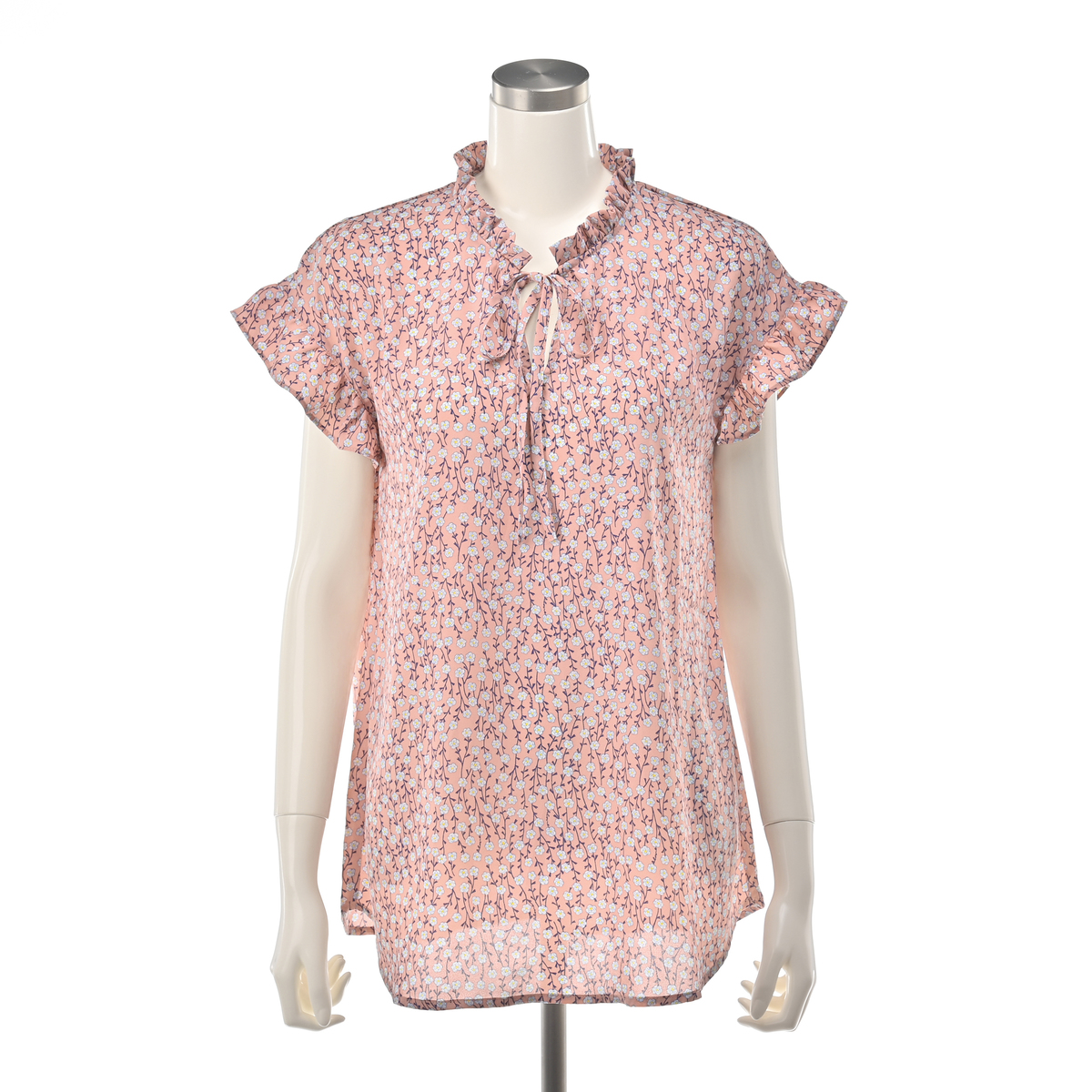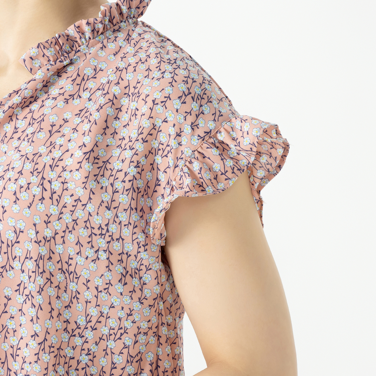 以前の夏は七分袖、半袖が主流でノースリーブやフレンチは殆ど着ずに過ごしていました 近年温暖化で私のブラウス用クロゼットにはノースリーブやフレンチが急ピッチで増えています! 今回、こちら袖口のフリフリが年配の私には気になるも小花柄でしたのでピンク LLサイズを購入 届いた翌日に数年前に&Loveで購入のアンクルに近い真珠の付いたクロップドパンツ(焦茶色)に 合わせ着て外出、軽く涼しく爽快でした! 強いて言えば… 袖口かと、若干狭めの為 動かしし過ぎると脇辺りが擦れかゆみが出て… 残念! 前側の脇口のフリル幅を狭めるか裏地の始末を考えるなどの余地あると存じます でもフレンチ袖のフリルのせいで落ち感が良くリボン結んだまま着用もでき素敵なデザインでした!