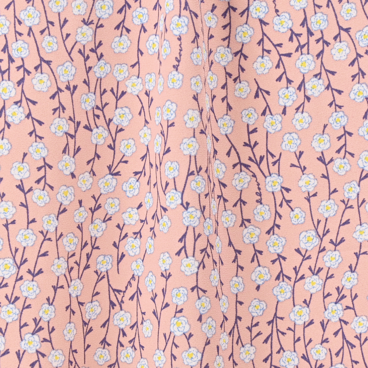 さらりとしたジョーゼット素材を使用した、優しいシボ感と上質な落ち感が魅力のブラウスです。白い花びらの小さなカメリアを全体に散りばめ、ハートの花芯やブランドロゴをさりげなくデザインし、大人にも着こなしやすい柔らかな雰囲気を演出します