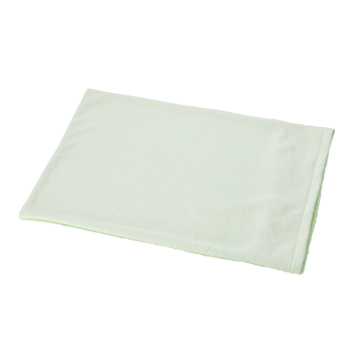 お好みに合わせて使い分けられるピローケースです。接触冷感性のある面と、タオルのような肌触りで吸水性のあるテリークロス(タオル地)面の両面で使用可能。竹素材由来のレーヨンを全体の30%使用しています