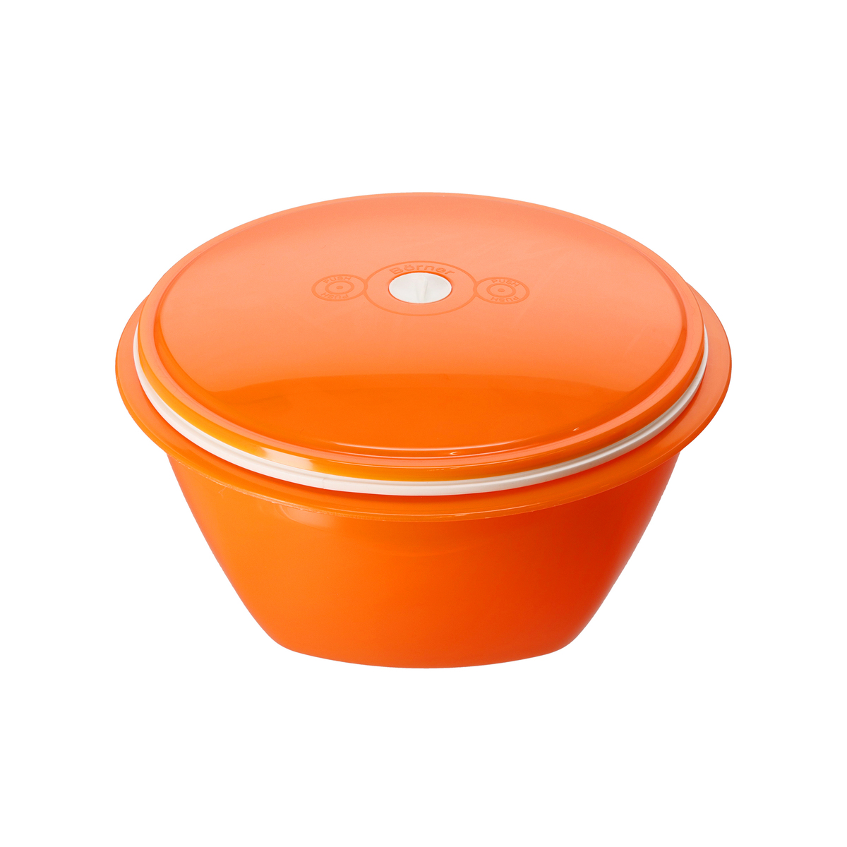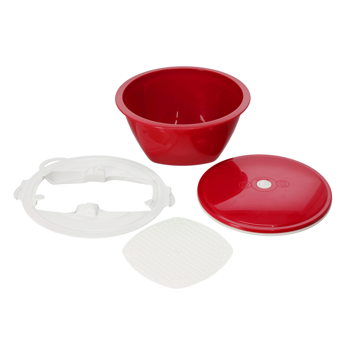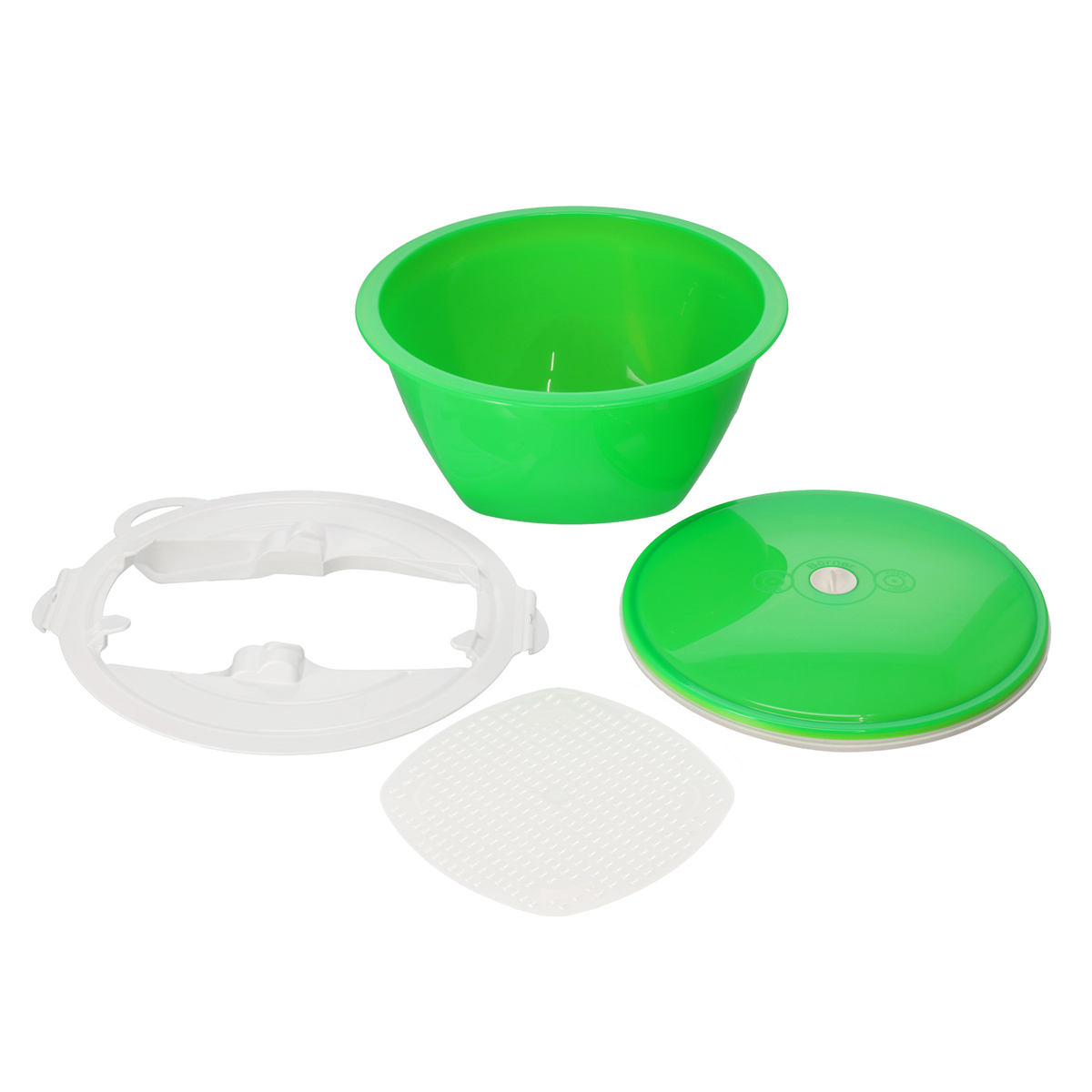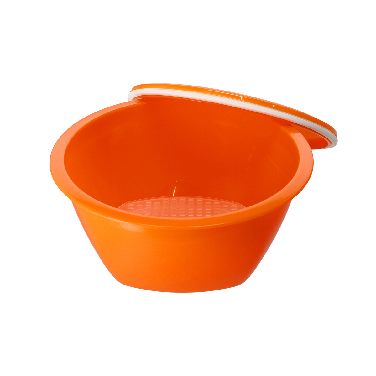 [商品内容] ・ボウル ・水切りすのこ ・マルチプレート ・蓋 [サイズ] 直径27x13cm [重量] 約580g [材質] ABS樹脂 [使用方法] ・ボウルにマルチプレートを置くと、別売りのV5スライサーがセットできます ・マルチプレートはボウルにしっかりとロックでき、ボウルはゴム製の滑り止め脚が付いています ・付属のすのこを入れれば、果物や野菜の水を切ることができます ・蓋は、PUSHの位置を軽く押して空気を抜くことで固定されずれにくくなります(蓋がずれない状態が2時間程度持続しますが、長時間ロックされるような仕様ではありません) ・蓋を外す際は中央のシリコン弁を倒してください。空気が入りと固定が解除され簡単に外すことができます [注意事項] ※使用不可:食器洗い機 ※使用可:電子レンジ(ボウルと蓋のみ) ※お子様が触れたり、おもちゃにする事が無いようにご注意ください ※電子レンジで使用する場合は、蓋についた白いパッキンと弁、ボウルに敷かれたすのこは取り外してください 【ドイツ製】