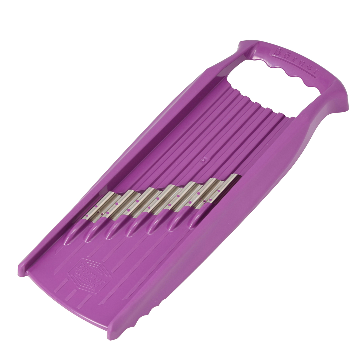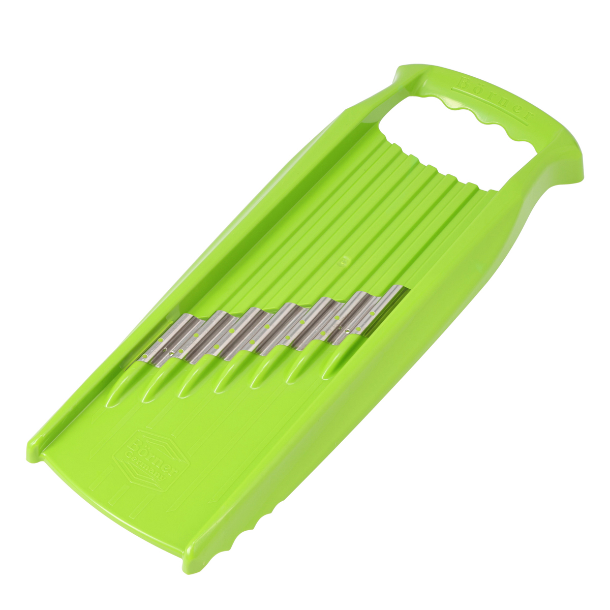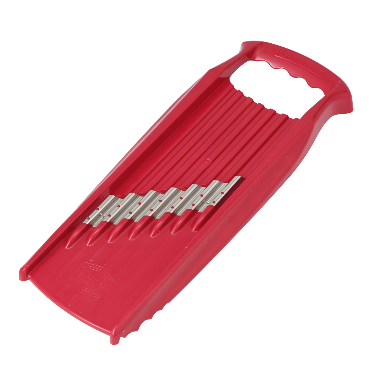 [サイズ] 13x34x3.5cm [重量] 約150g [材質] 本体:ABS樹脂 刃:ステンレススチール [使用方法] 上下に食材を動かすだけで波型の刃がウェーブカットになります。さらに、ウェーブカットした食材を全て重ね、90度回して横からもう一度スライスすると、スパイラルヌードルができます。食材を一回毎に90度回転させながらスライスすると、ワッフルカットになります [お手入れ] ・キッチンブラシなどを使い、流水で洗ってください ・刃には絶対に触れないでください ・洗浄後、水が切れてから保管してください [注意事項] ※使用不可:食器洗い機 ※スライサーは鋭利な刃物です。ご使用の際には十分にご注意ください ※プラスチック部分のみ手が触れるようにし、決して刃には触れないでください ※お子様が触れたり、おもちゃにする事のないようご注意ください ※素手でのご使用は事故やケガの原因となりますので、安全ホルダーのご使用を推奨しております 【ドイツ製】