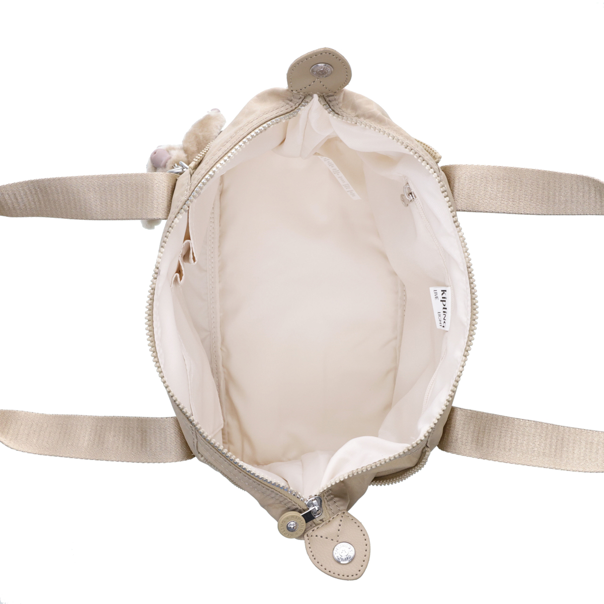 [サイズ(約)] 縦22×横38(上部)、27(下部)×マチ16cm ハンドル立ち上がり:16cm ショルダー立ち上がり:33〜64cm [重量(約)]※付属品含む 450g [素材] ナイロン ※裏地有 [仕様] 付属(取り外し可):チャーム×1、ショルダーベルト×1 開閉:ファスナー式 底ビョウ:無 [ポケット] 内側:ファスナーポケット×1、オープンポケット×2、ペン挿し×1 外側:前面:ファスナーポケット×1、オープンポケット×1 [注意事項] ※直射日光や蛍光灯の影響で変色することがありますのでご了承下さい 【バングラデシュ製】