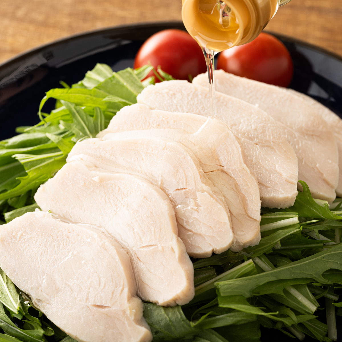 透明醤油やお酢と混ぜることでさらに風味が広がります。ローストビーフ、ステーキはもちろん、サラダ、カルパッチョ、モッツァレラチーズ、サラダチキンなどさまざまな料理へのアレンジもおすすめです