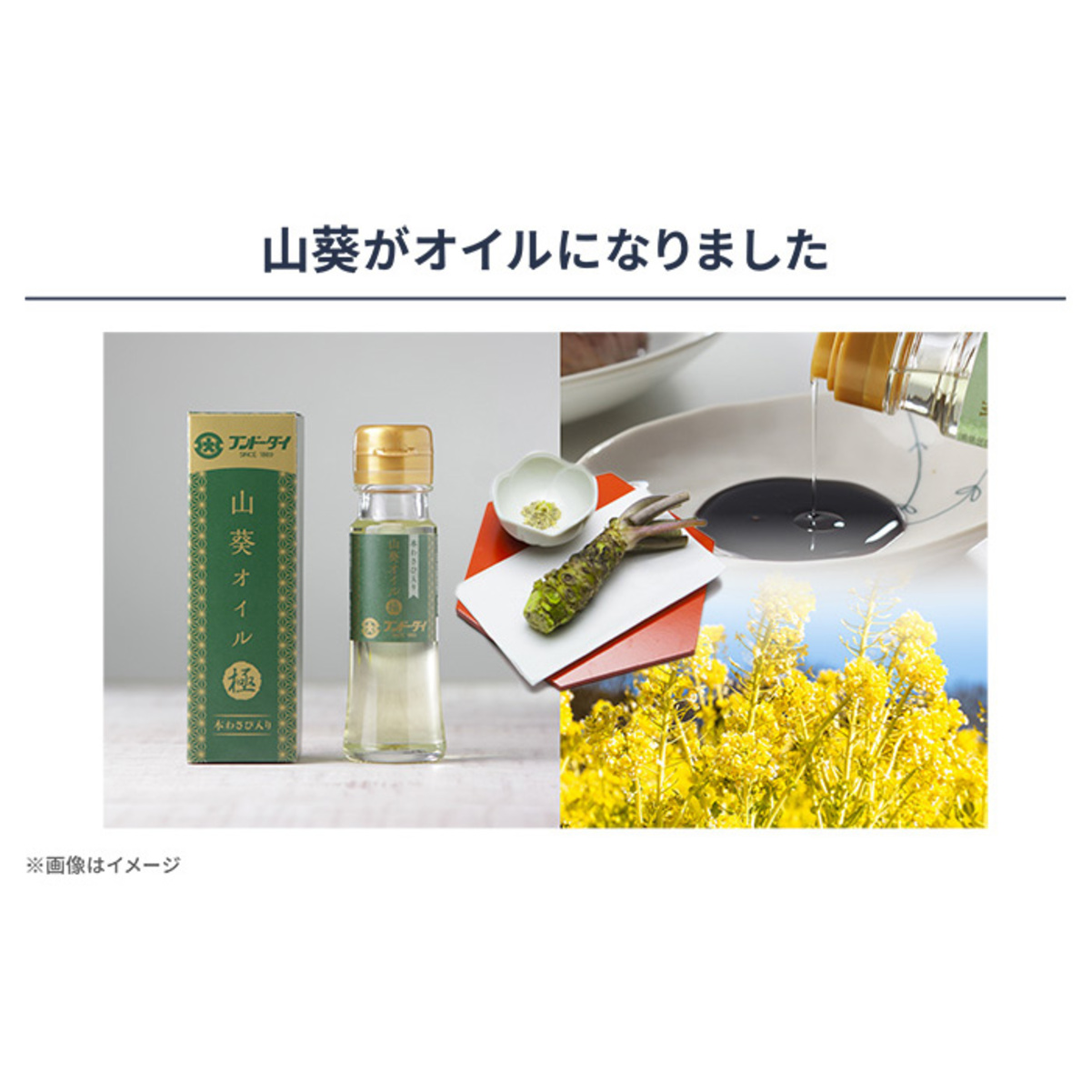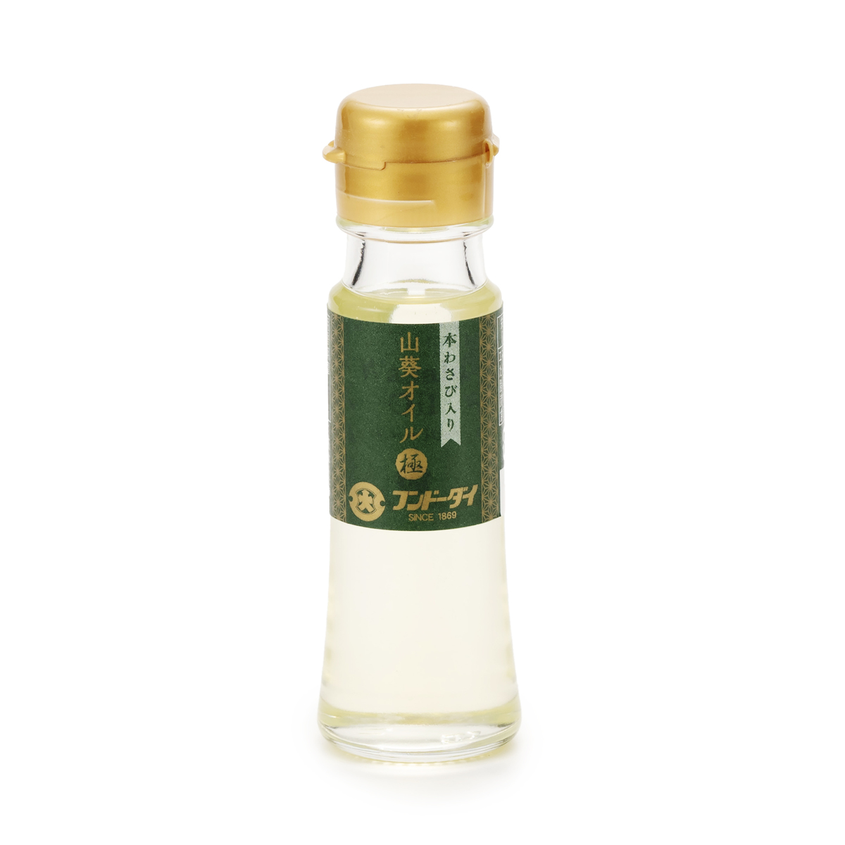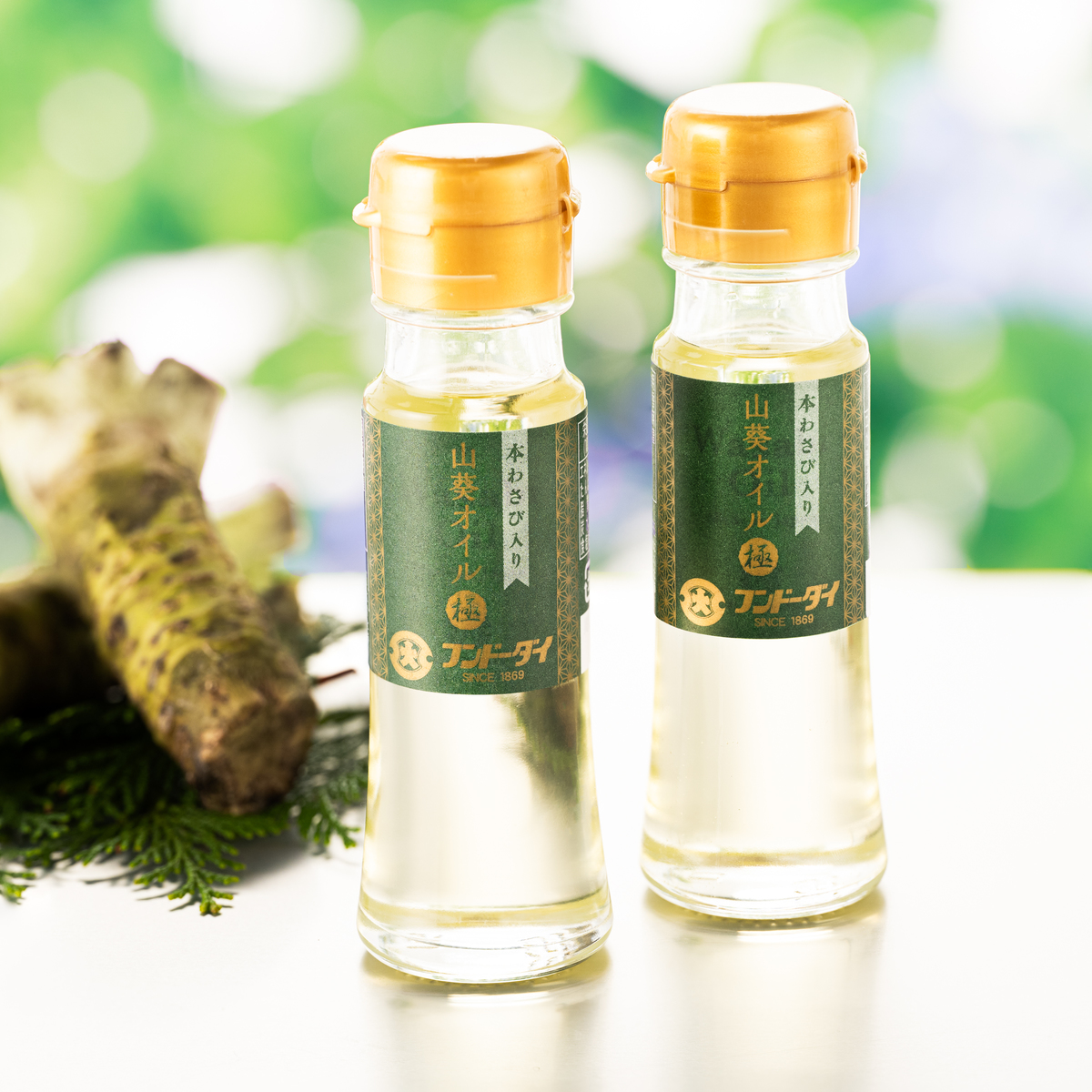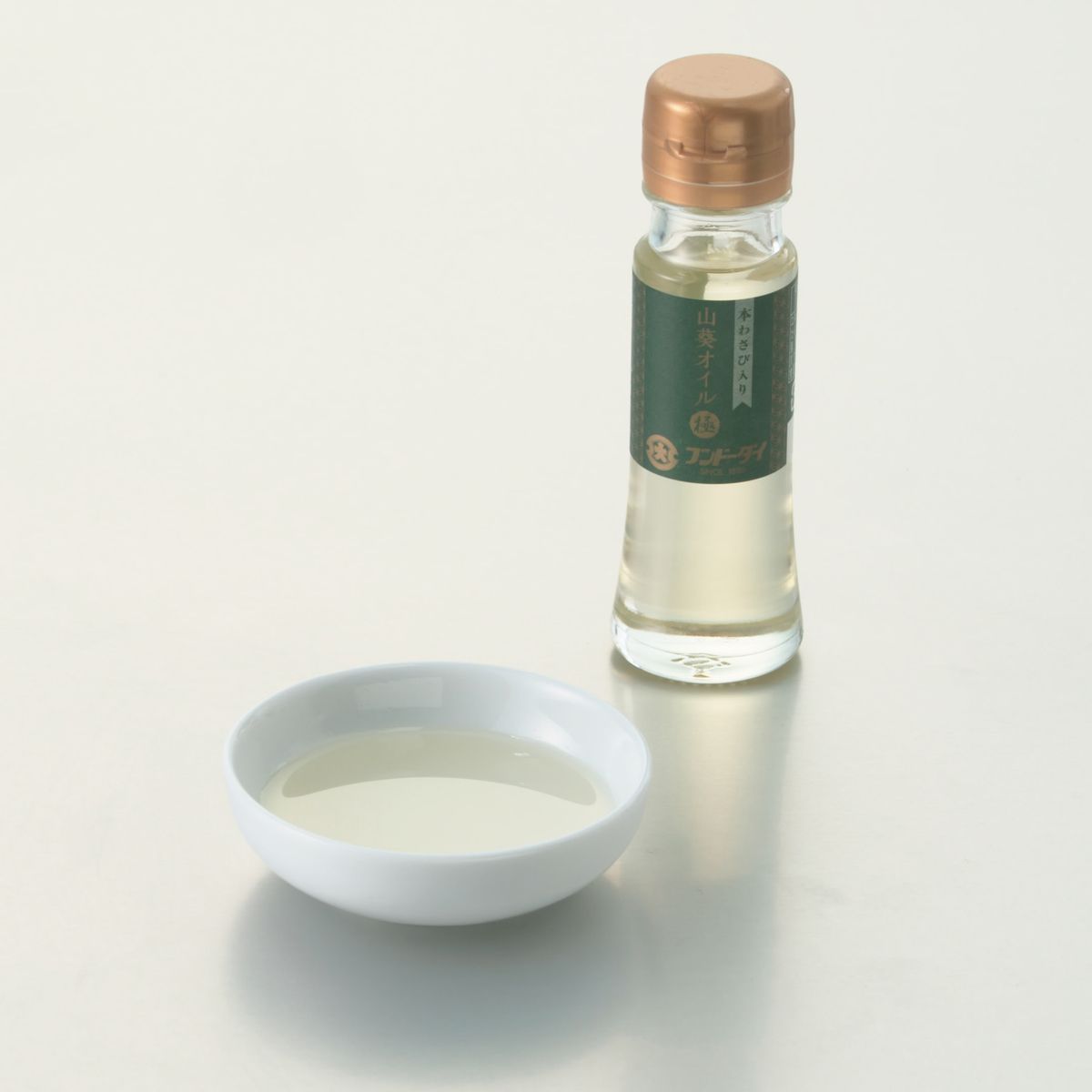 日本料理に欠かせない和の香辛料「わさび」が使いやすい油(オイル)になりました。くせのない上質な菜種油にわさびから抽出した辛味成分*を加えて仕上げました。山葵(わさび)の“辛味”と“香り”が料理の味をひきたてます