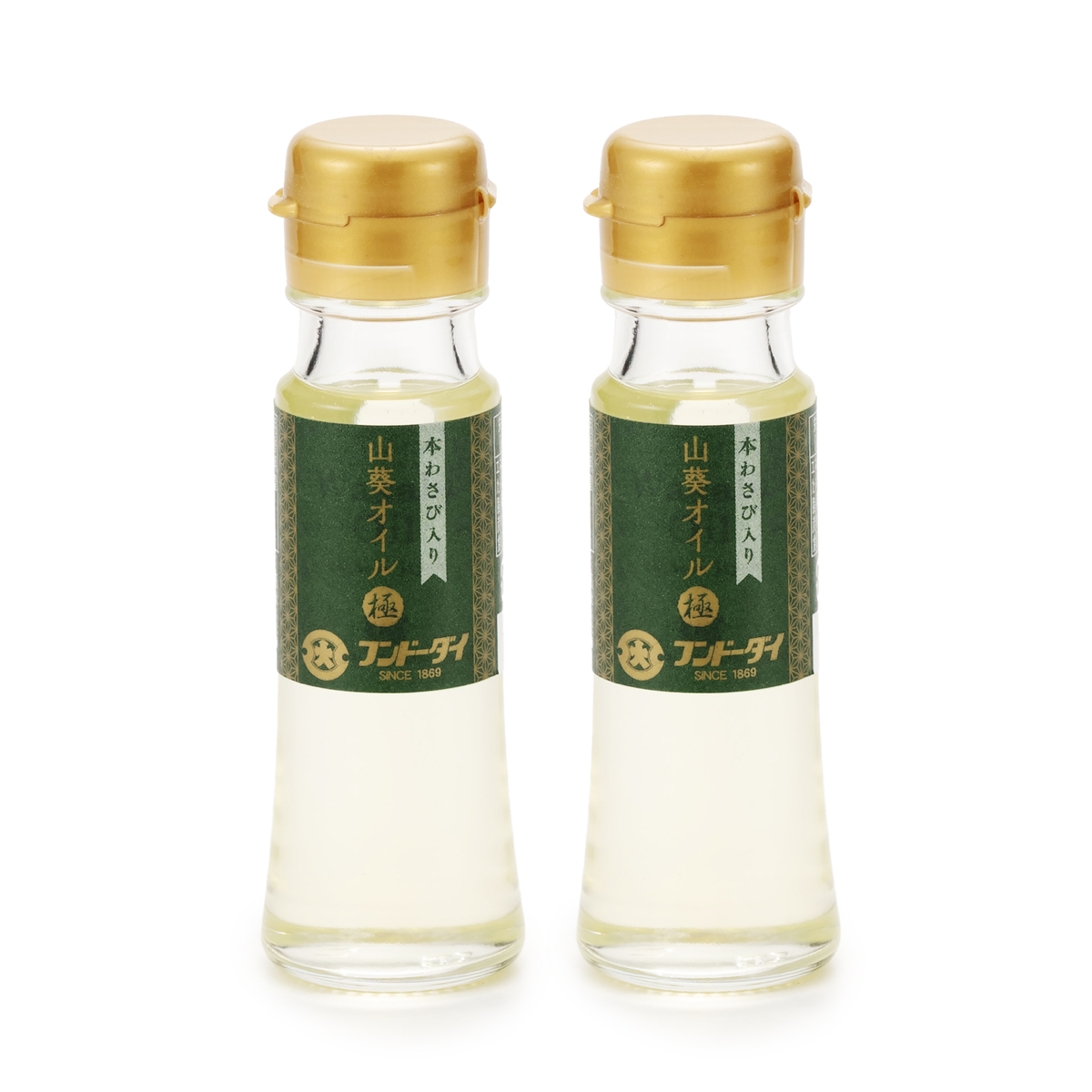 [アレルギー物質特定原材料8品目] なし [商品内容] ・山葵オイル極 45g×2本 ・レシピ [保存方法] 開封前:直射日光を避け常温で暗所に保存してください 開封後:開栓後はお早めにご使用下さい [お召し上がり方] ・調味料としてご使用してください ・カルパッチョ、寿司、ローストビーフ、サラダ、アボカドや乳製品にもよく合います ・キャップをしてよく振ってお使いください [注意事項] ※油は加熱により発煙、発火することがあります。また、水が入ったり水の混ざった油を加熱すると飛び跳ね大変危険です ※瓶は割れ物ですので取り扱いにご注意ください ※時間の経過とともに沈殿物が生じたり、退色することがありますが、品質には問題ございません [原料原産地] 食用なたね油(国内製造) [原産国] 日本 [原材料]食用なたね油(国内製造)、わさび/香辛料抽出物