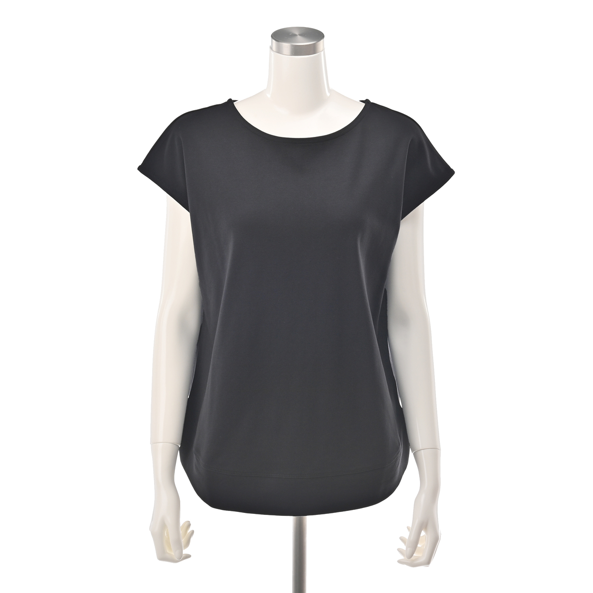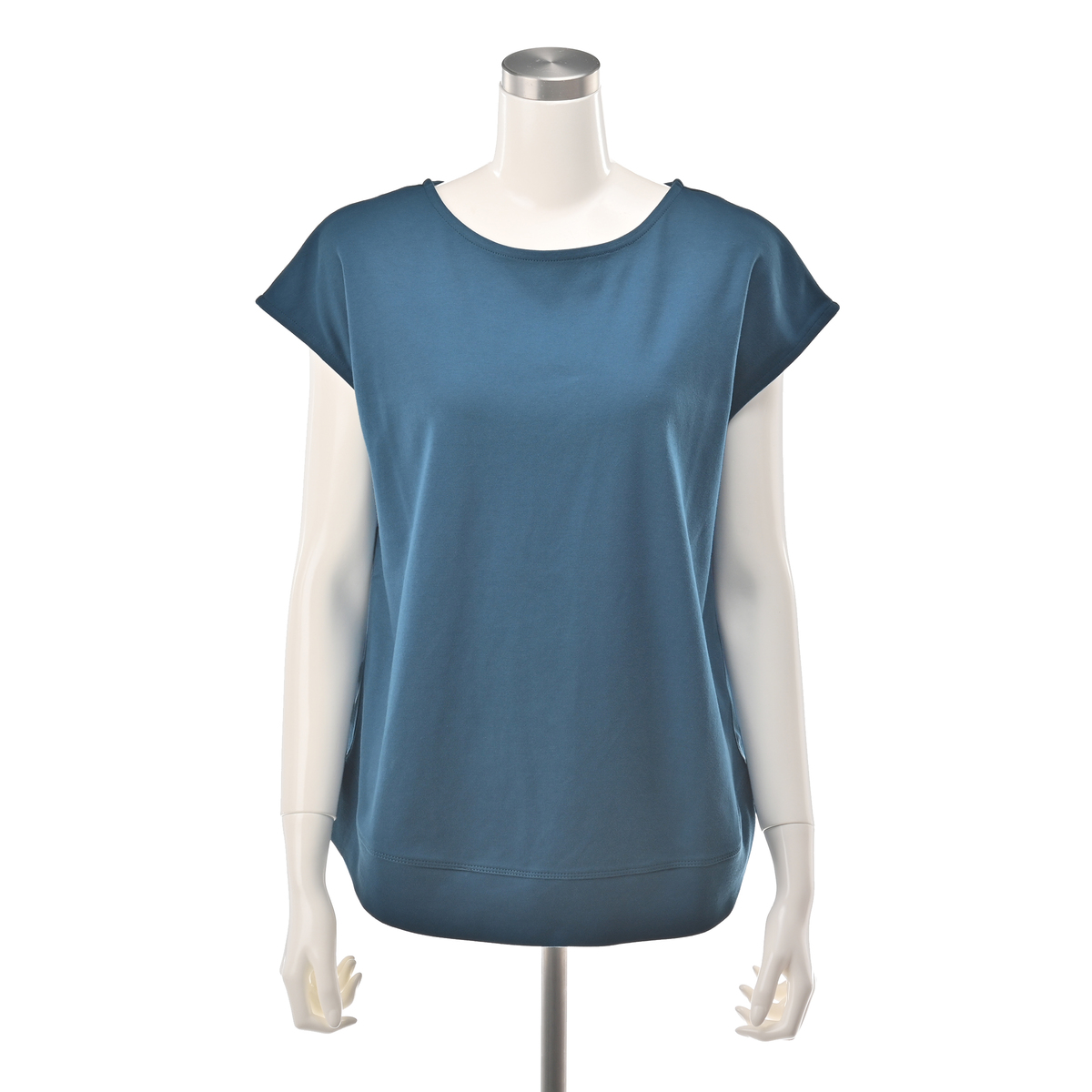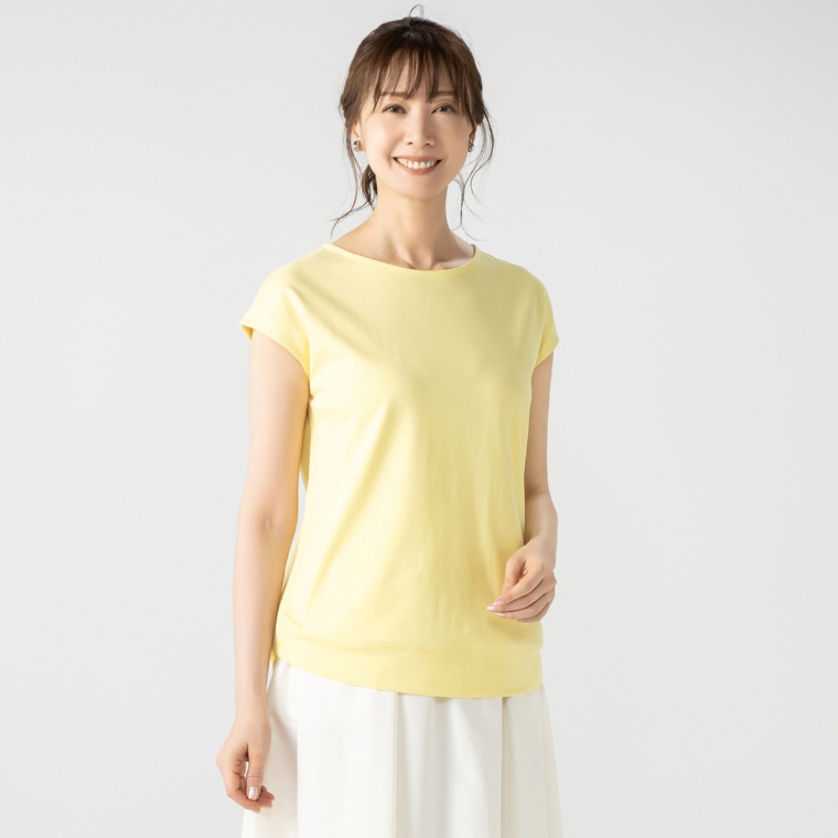 スーピマコットン混多機能プルオーバー。フレンチスリーブのシンプルなシルエットで、コーディネートに自然に馴染みます