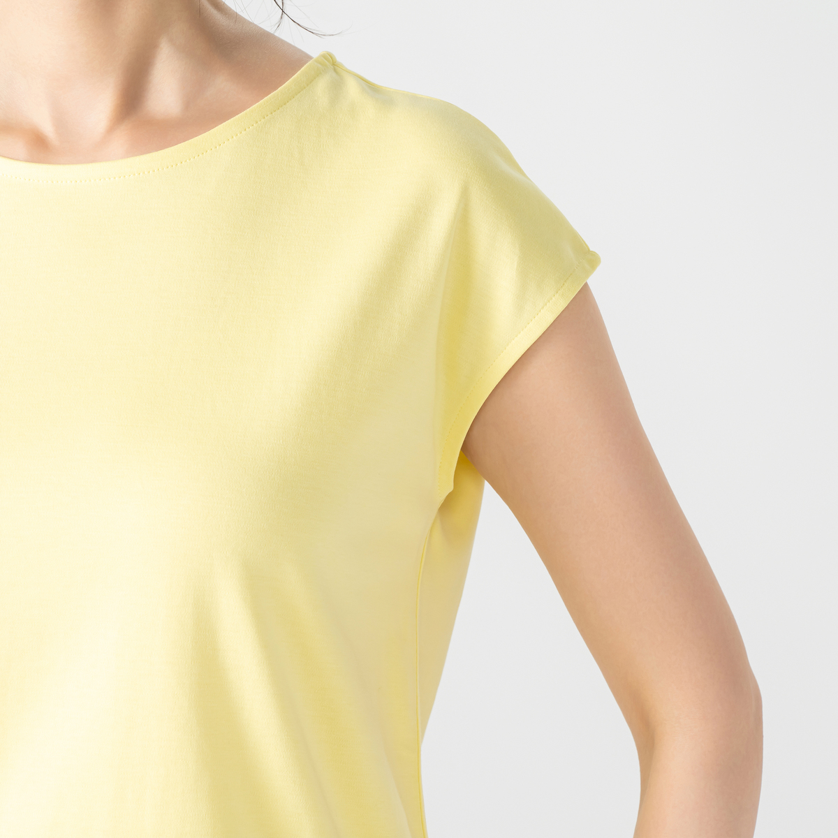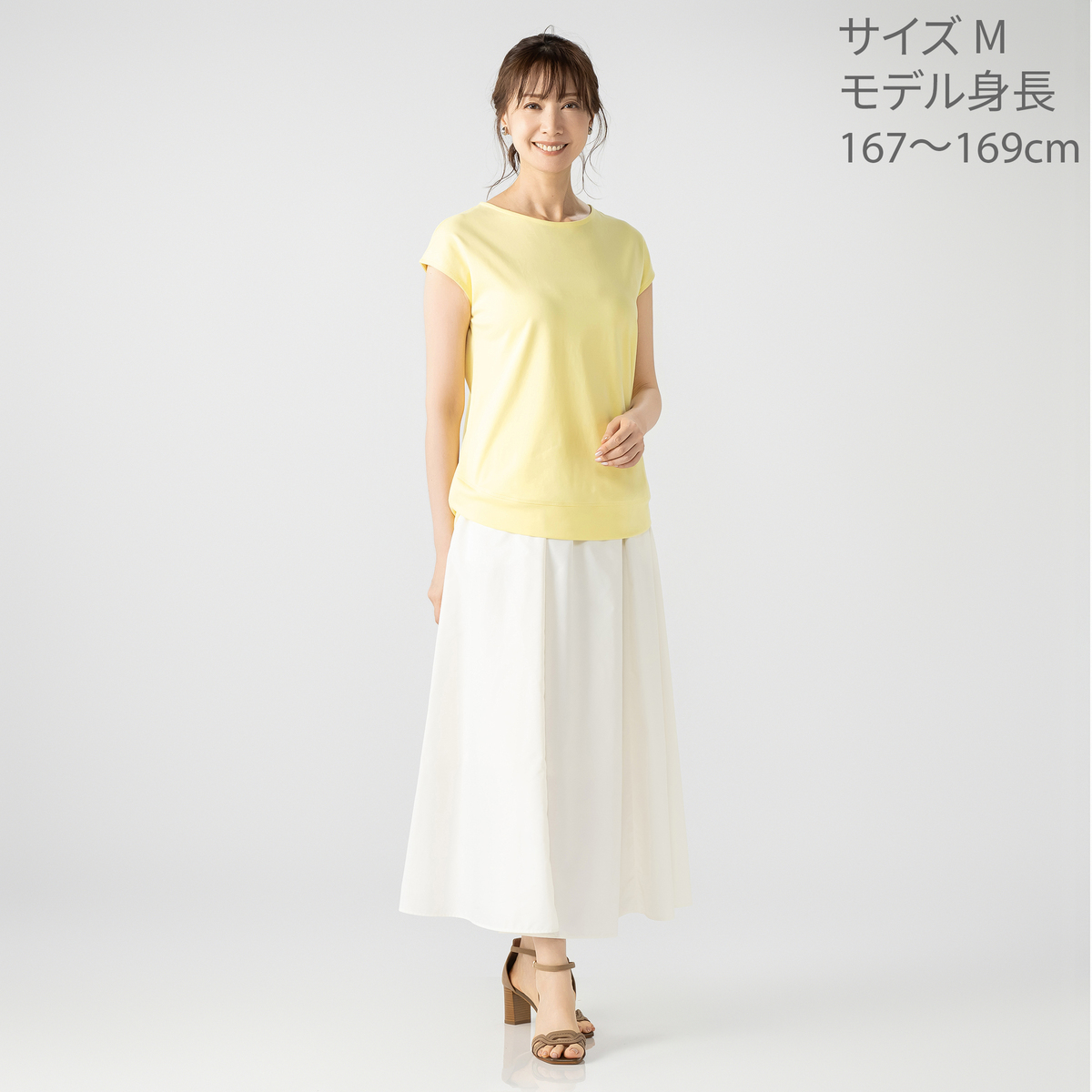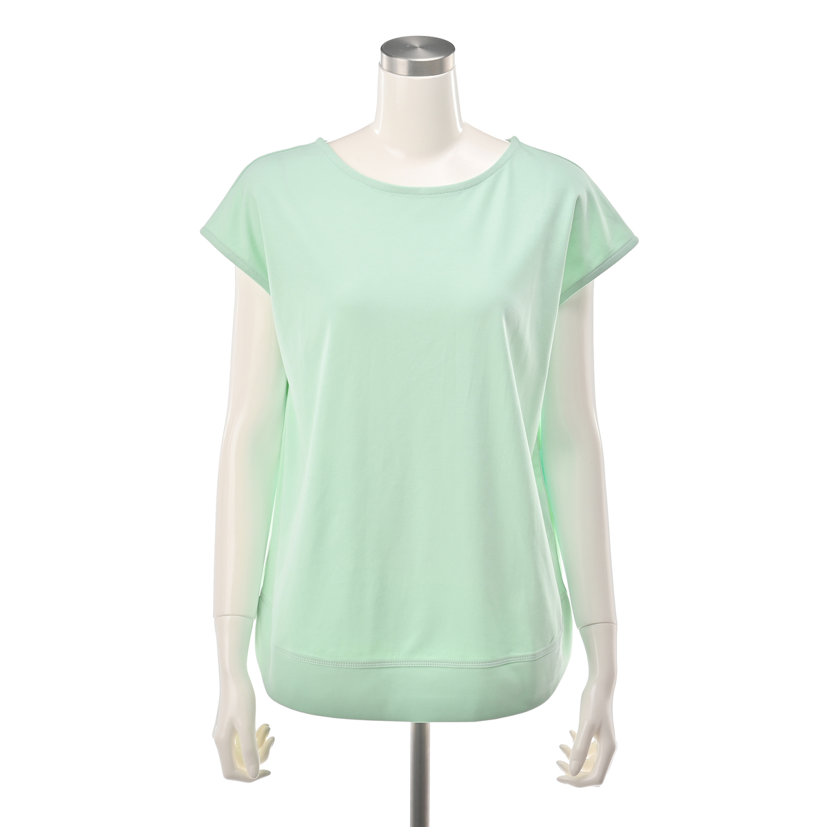 スーピマコットン混多機能プルオーバー。フレンチスリーブのシンプルなシルエットで、コーディネートに自然に馴染みます