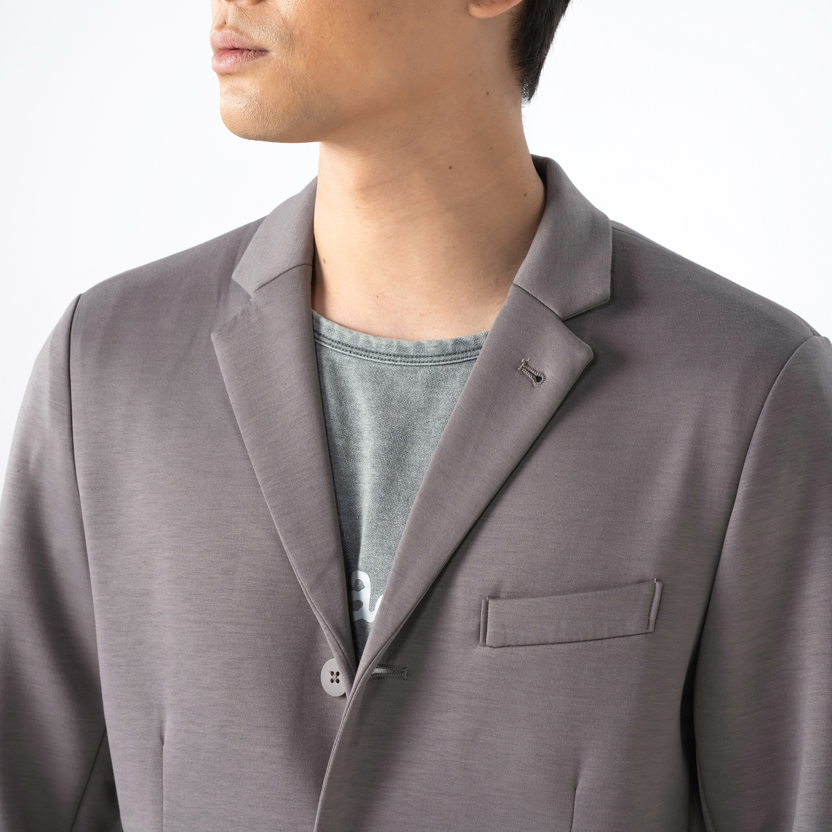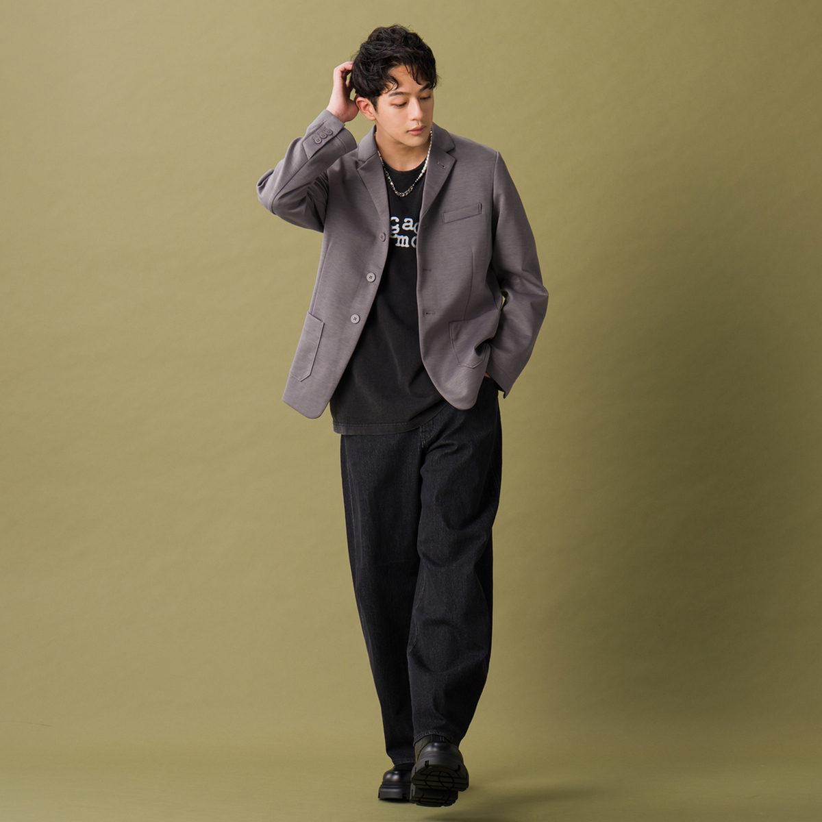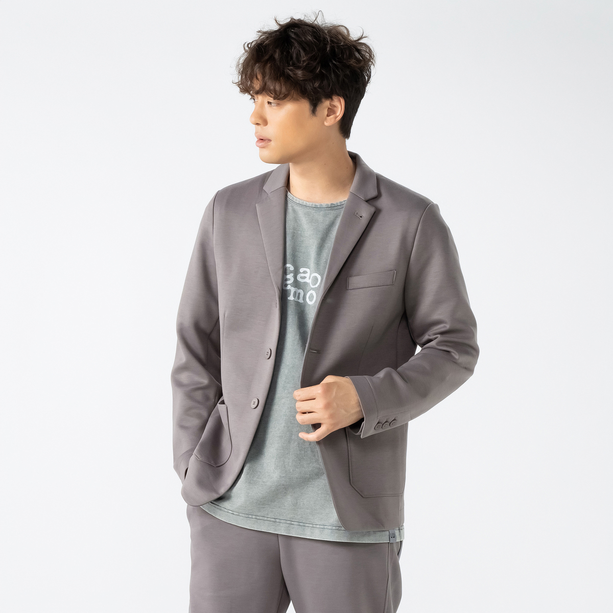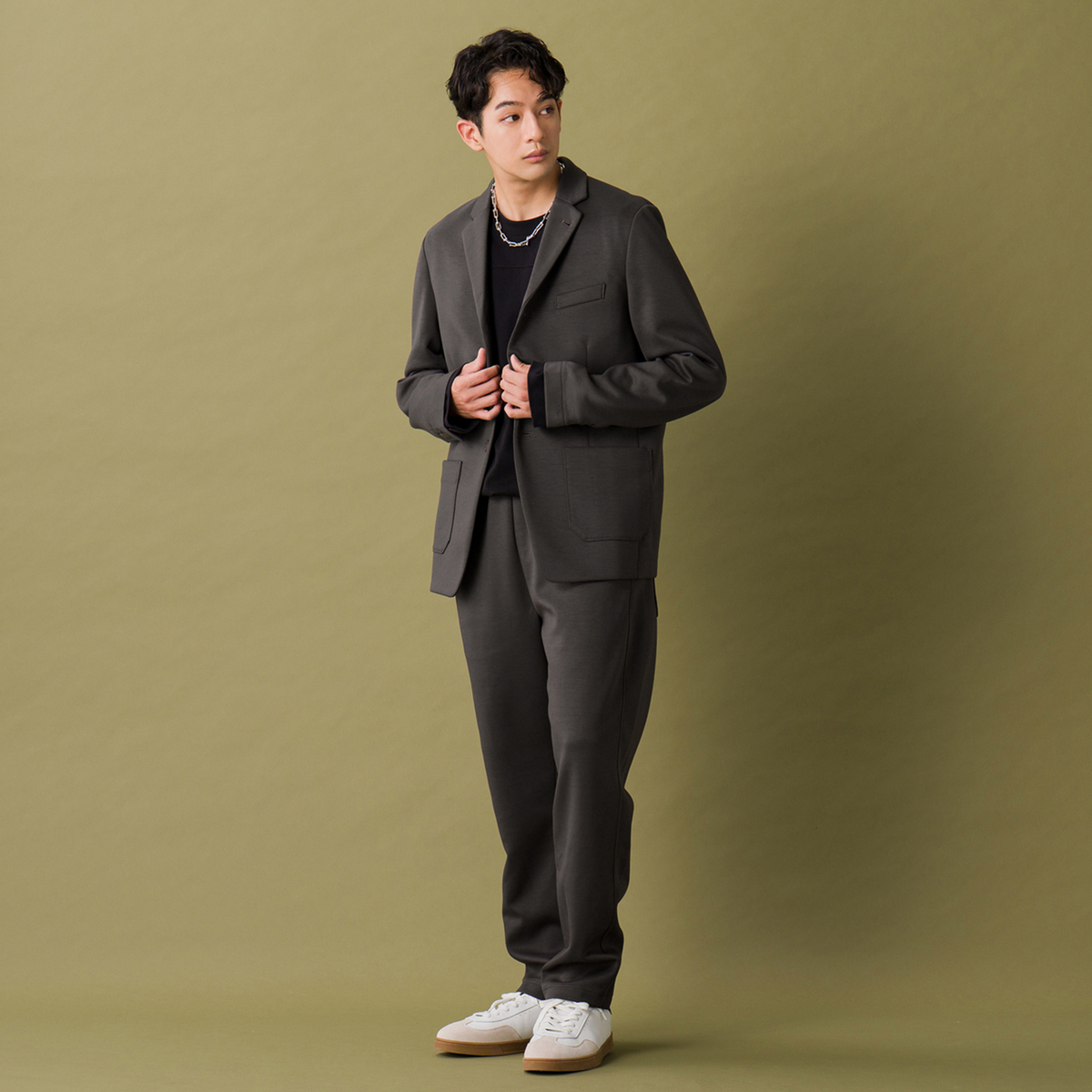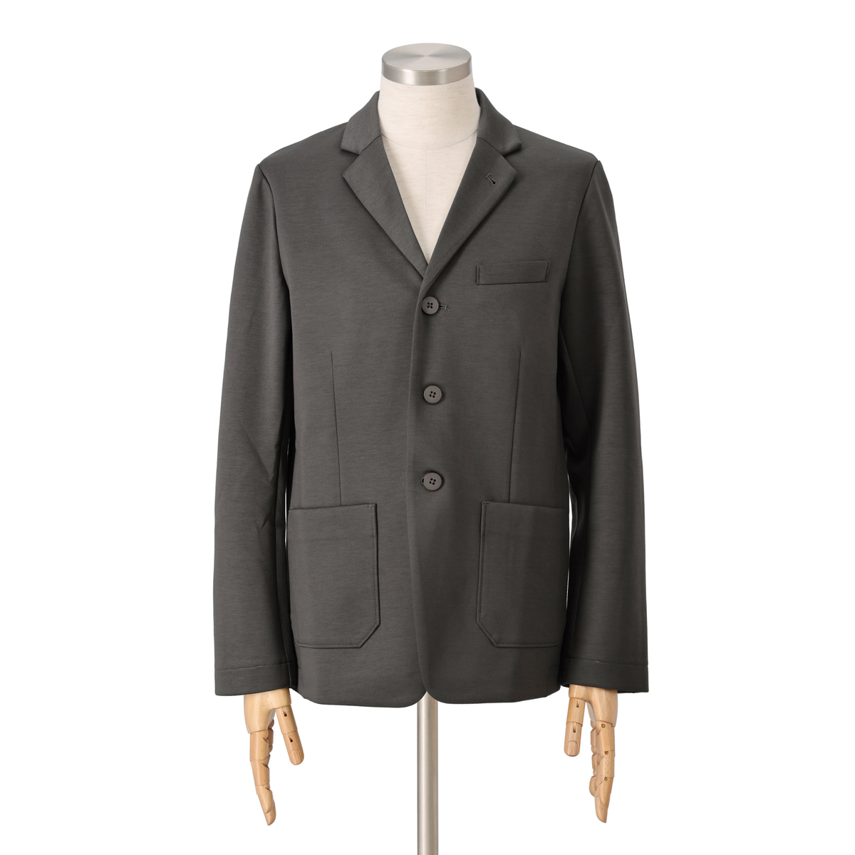 オリジナルハイゲージダンボールニットで仕立てたジャケット。すっきり見えるシルエットで、スタイリッシュな印象を演出します