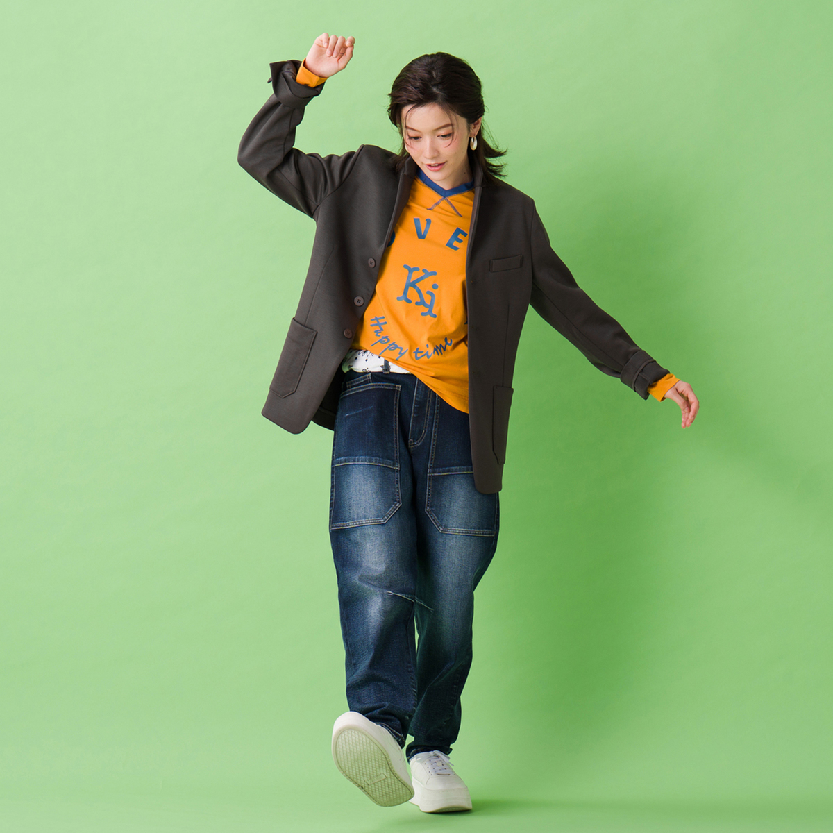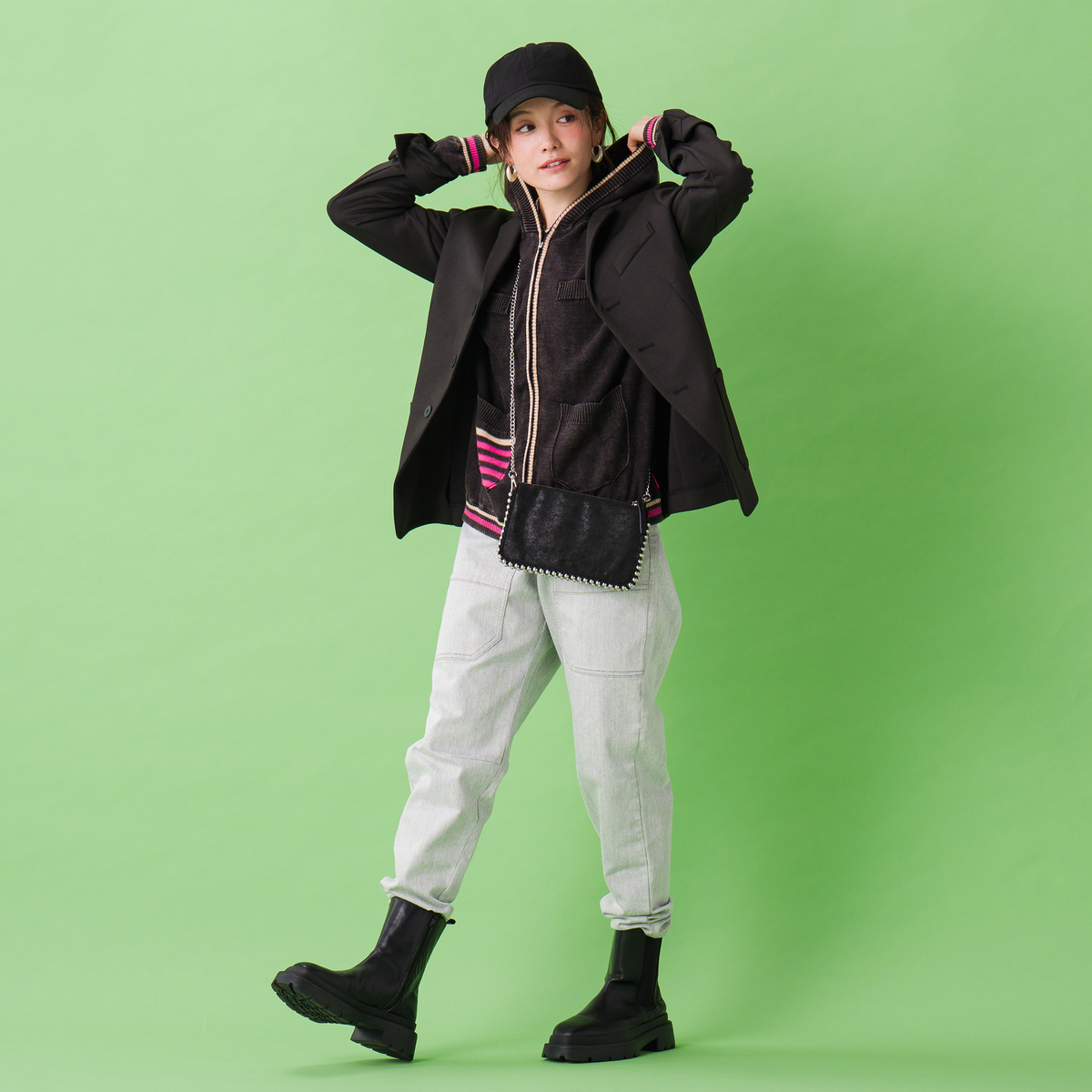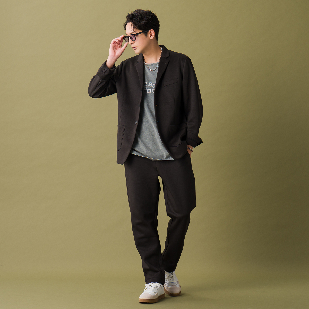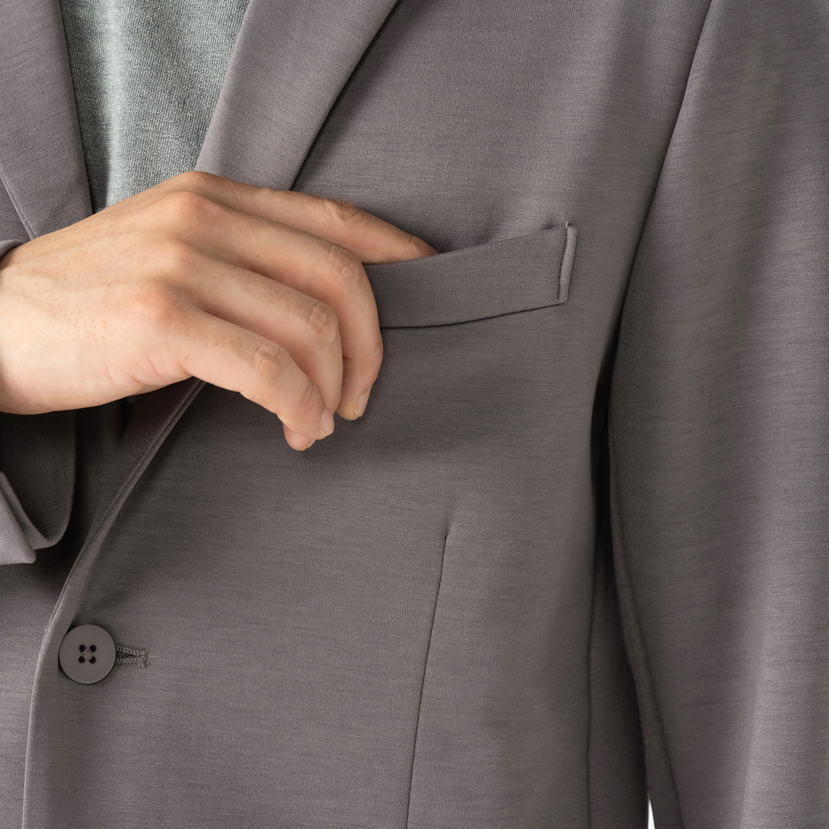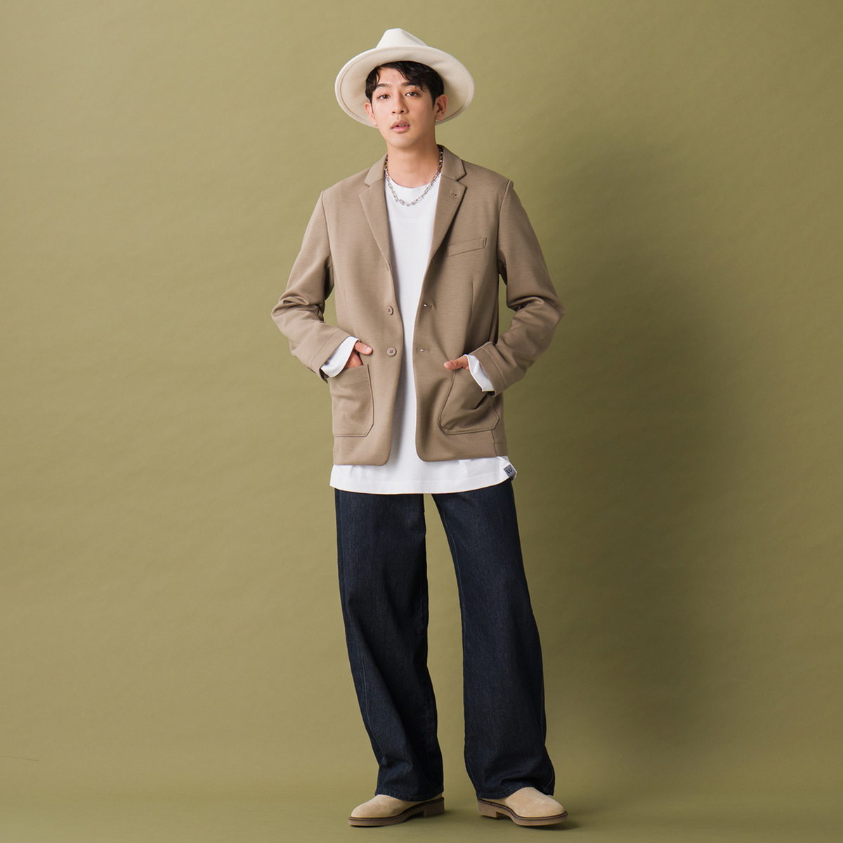 オリジナルハイゲージダンボールニットで仕立てたジャケット。すっきり見えるシルエットで、スタイリッシュな印象を演出します