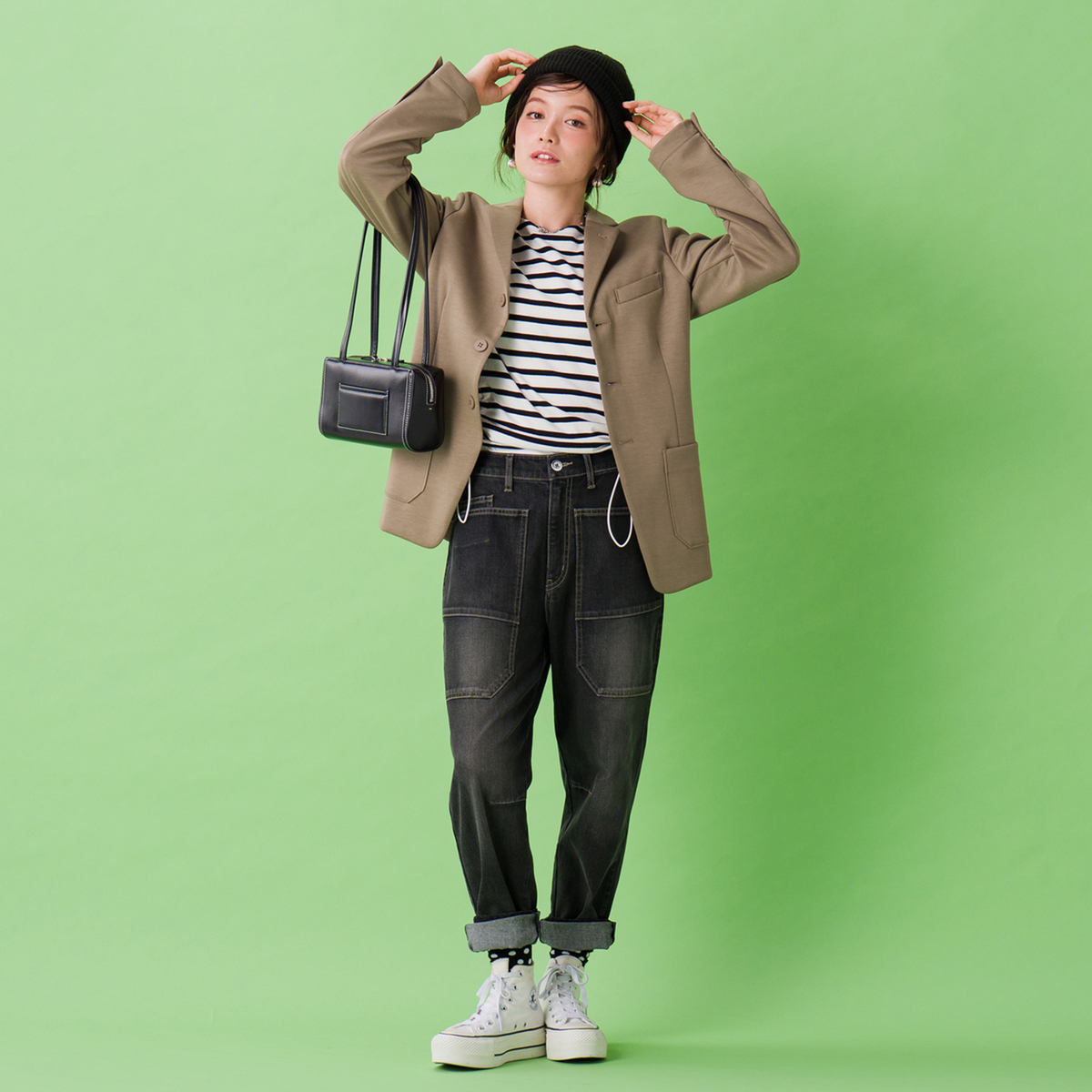シンプルなデザインなので、カジュアルにもきちんとした装いにも合わせやすく、日々のコーディネートに活躍してくれます