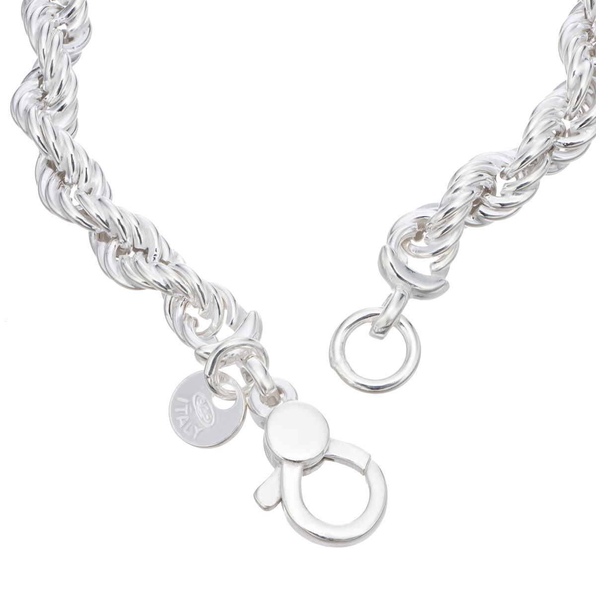 [地金] シルバー925 総重量(約) 6.2g 長さ(約) 19.0cm 幅(約) 5.0mm チェーンの形状 ロープ 留具の形状 ロブスター アジャスターの有無 無 チャームの有無 無 [付属品] 磨きクロス ■素材の大きさ・形・色合い、製品のサイズは1点1点多少異なります ■中空製品のため、強い衝撃を与えますと破損や変形の恐れがありますのでご注意ください ■製造工程上、小さな丸い穴が開いている場合がございます。また、穴周辺にキズやへこみが付いてしまうことがあります。個々に穴の数・位置は異なります 【イタリア製】