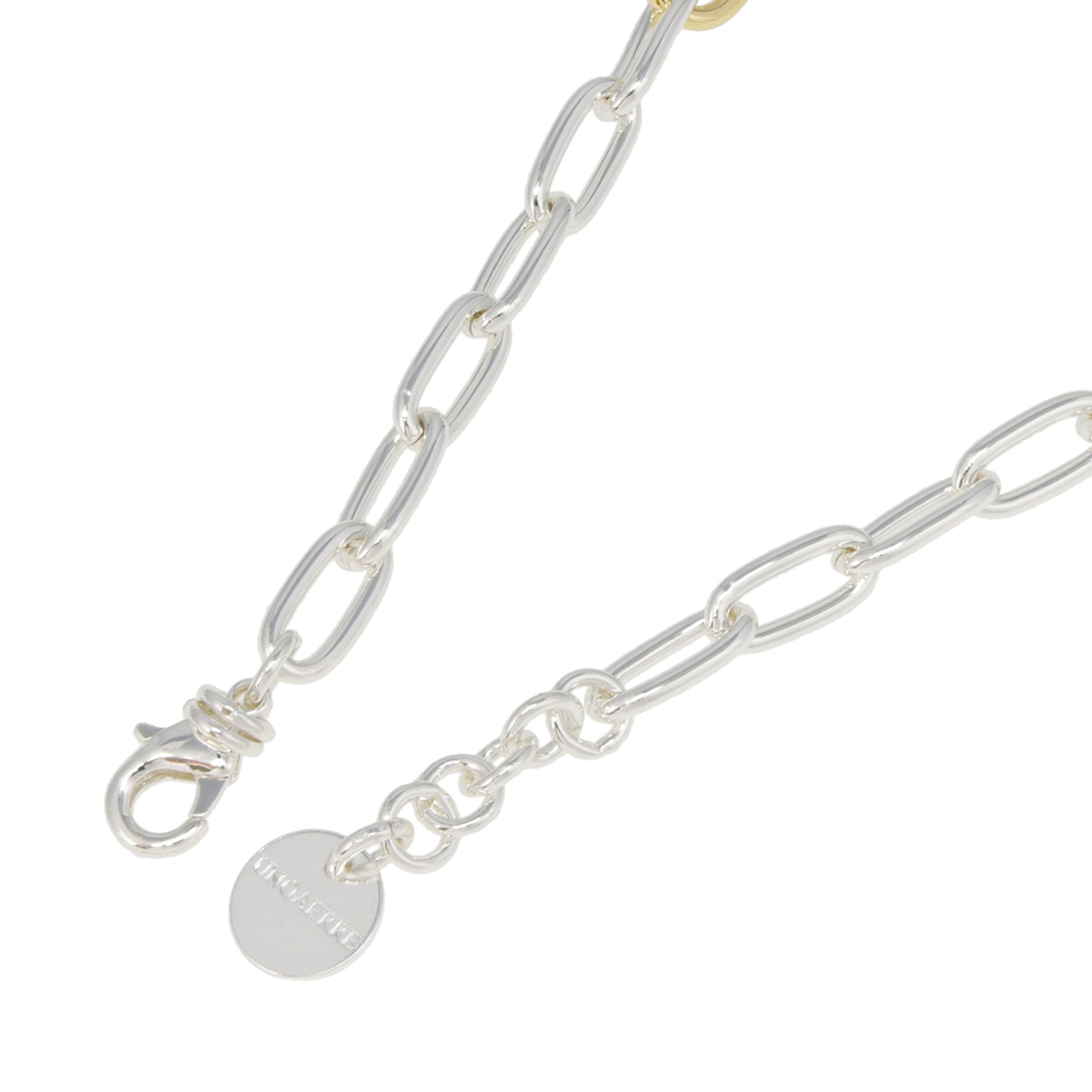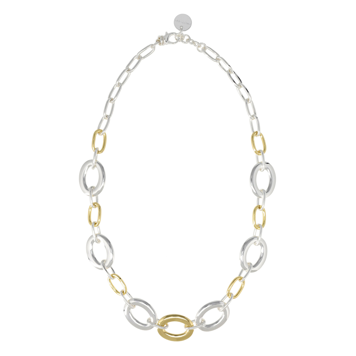 オーバル型のパーツを連ねた、印象的で洗練されたデザイン。2色のコントラストが華やかさを添え、装いに洗練されたアクセントをもたらします