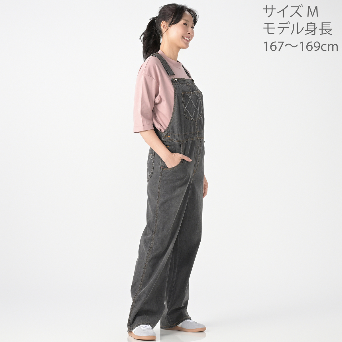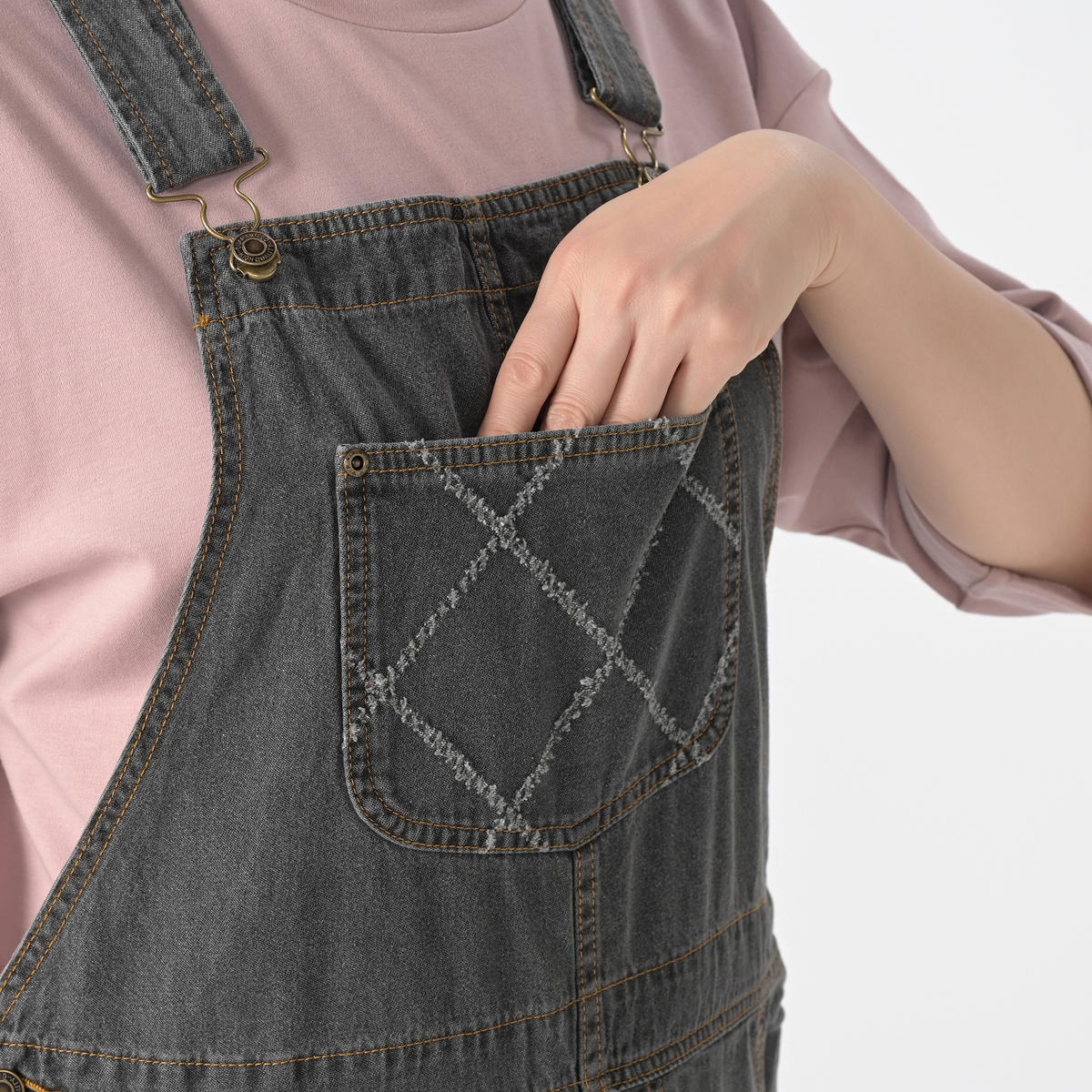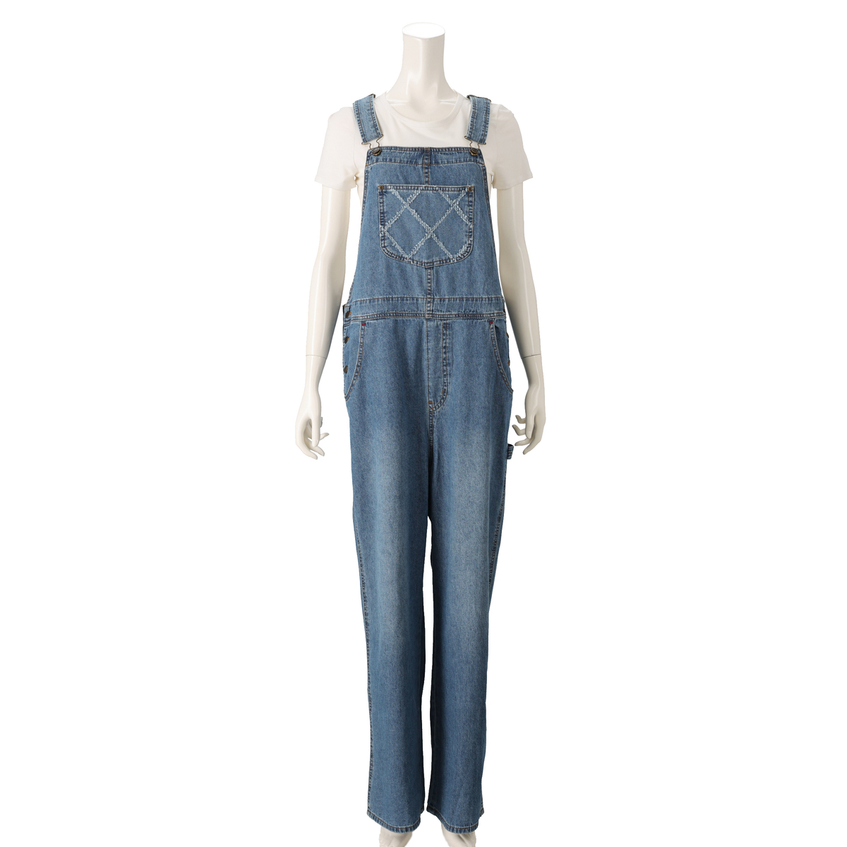 軽やかな綿100%のライトオンスデニムで仕立てたオーバーオール。ゆったりとしたシルエットに、共布×レーザーカットを施したポケットが個性のあるアクセントになっています