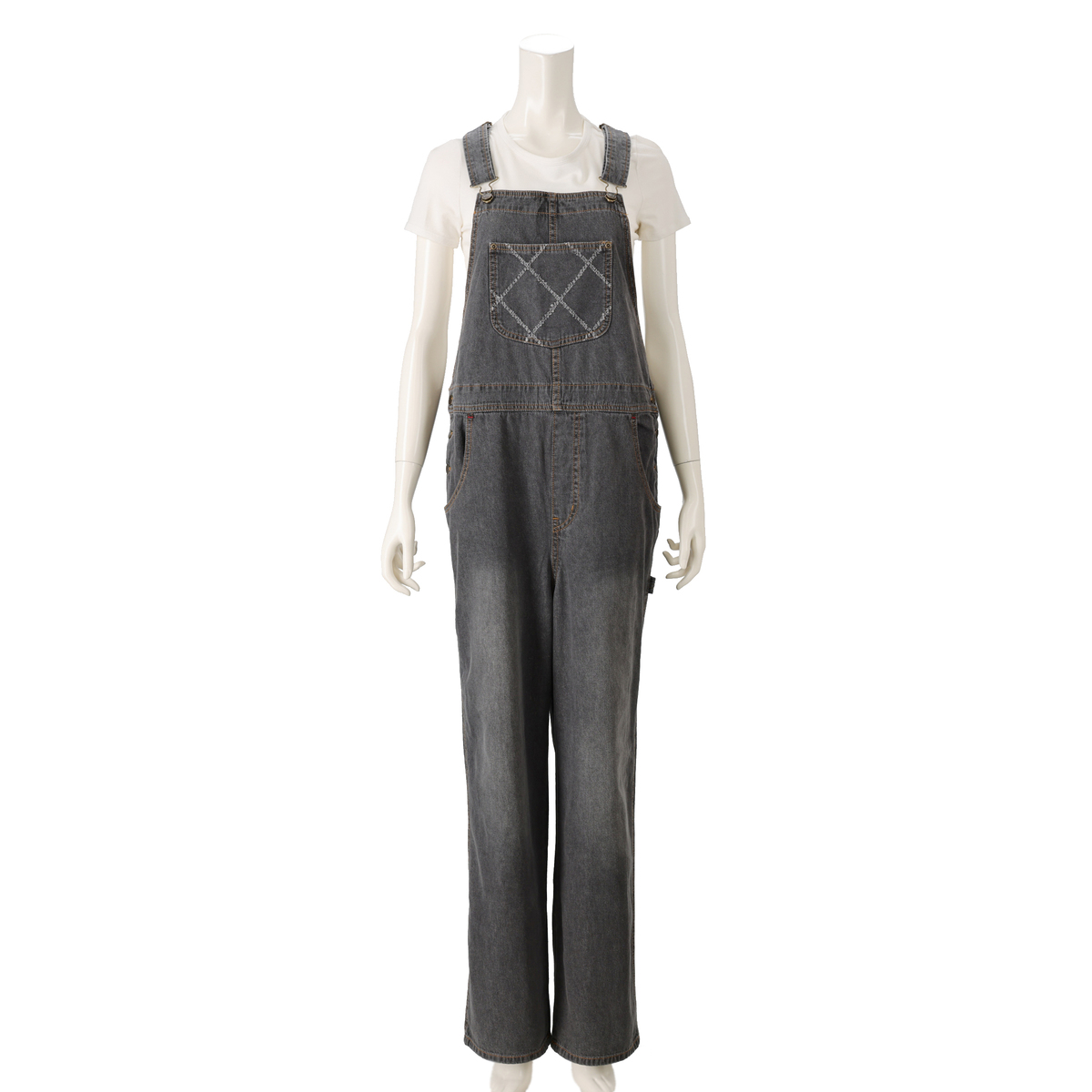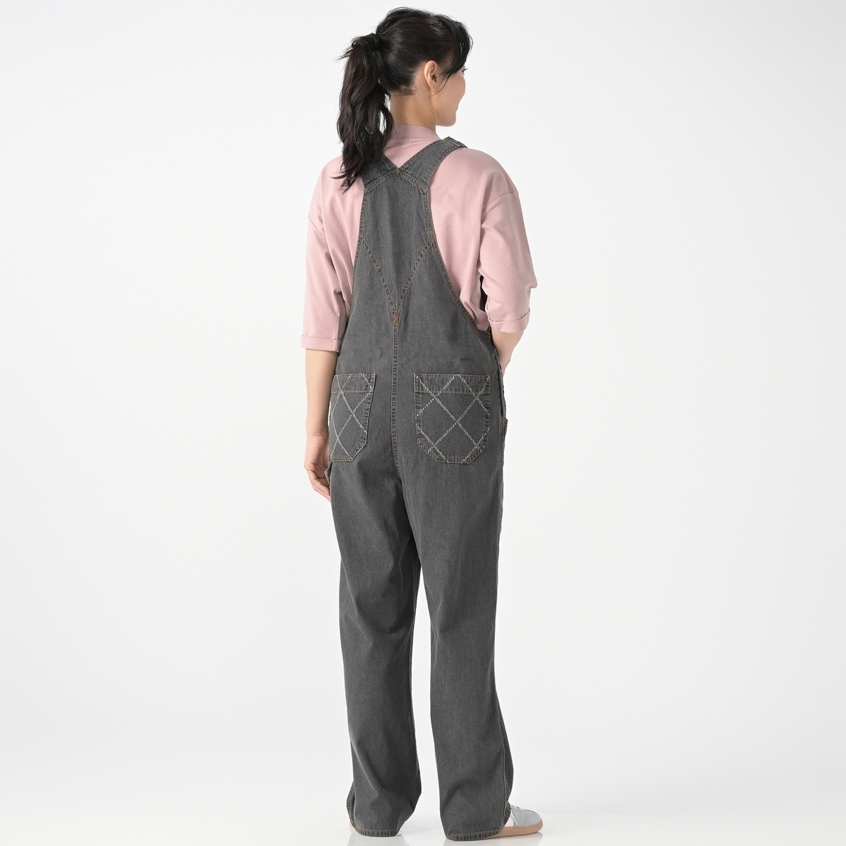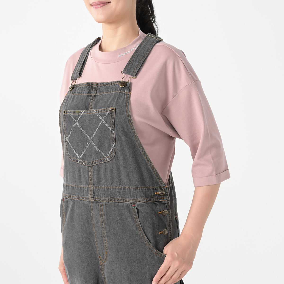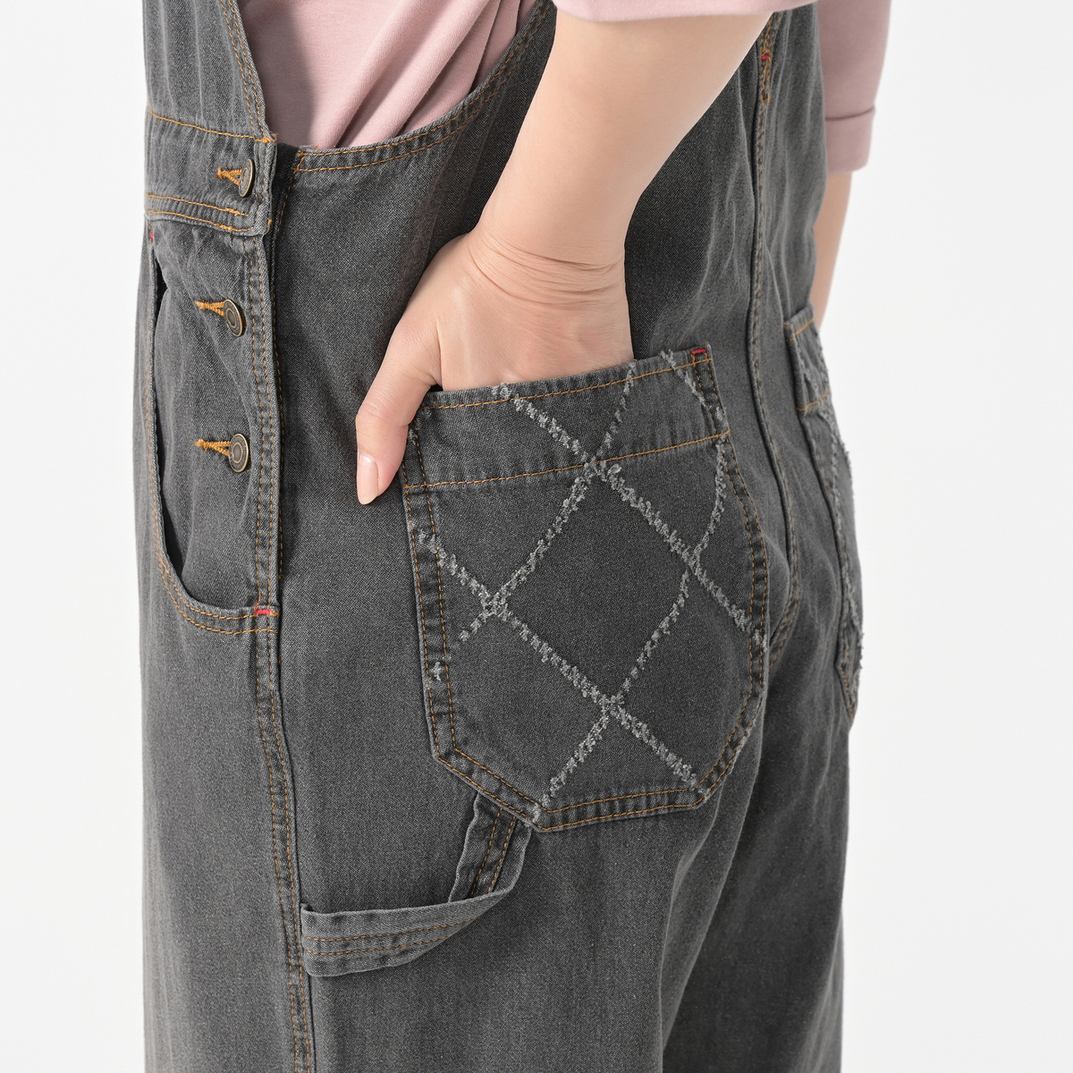 軽やかな綿100%のライトオンスデニムで仕立てたオーバーオール。ゆったりとしたシルエットに、共布×レーザーカットを施したポケットが個性のあるアクセントになっています