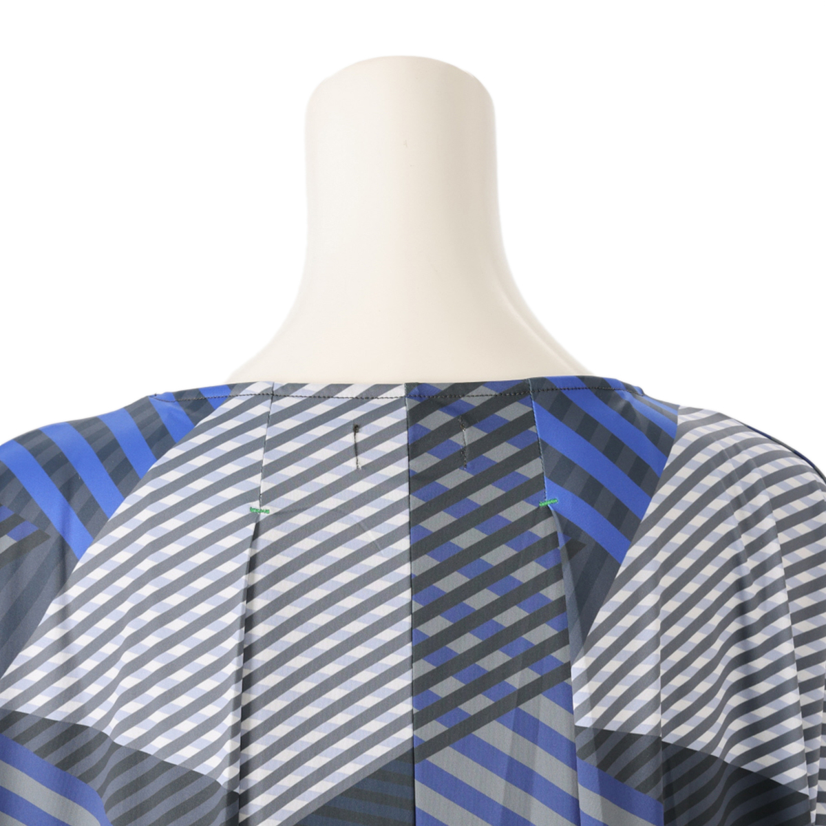ブランド品の3点セット、やはりワクワクします。求めてやすくなっていた時に購入しました。デザインも素敵、縫製も確かです。半日着て、個人差があるでしょうが、首の後ろのタグが痛くて、家に帰ってすぐ外そうとしましたが、なかなか取れず、生地を傷付けないよう、かなり時間がかかりました。また後ろの布の重みなのか、首元が詰まって元のシルエットと違って見えたのが残念でした。