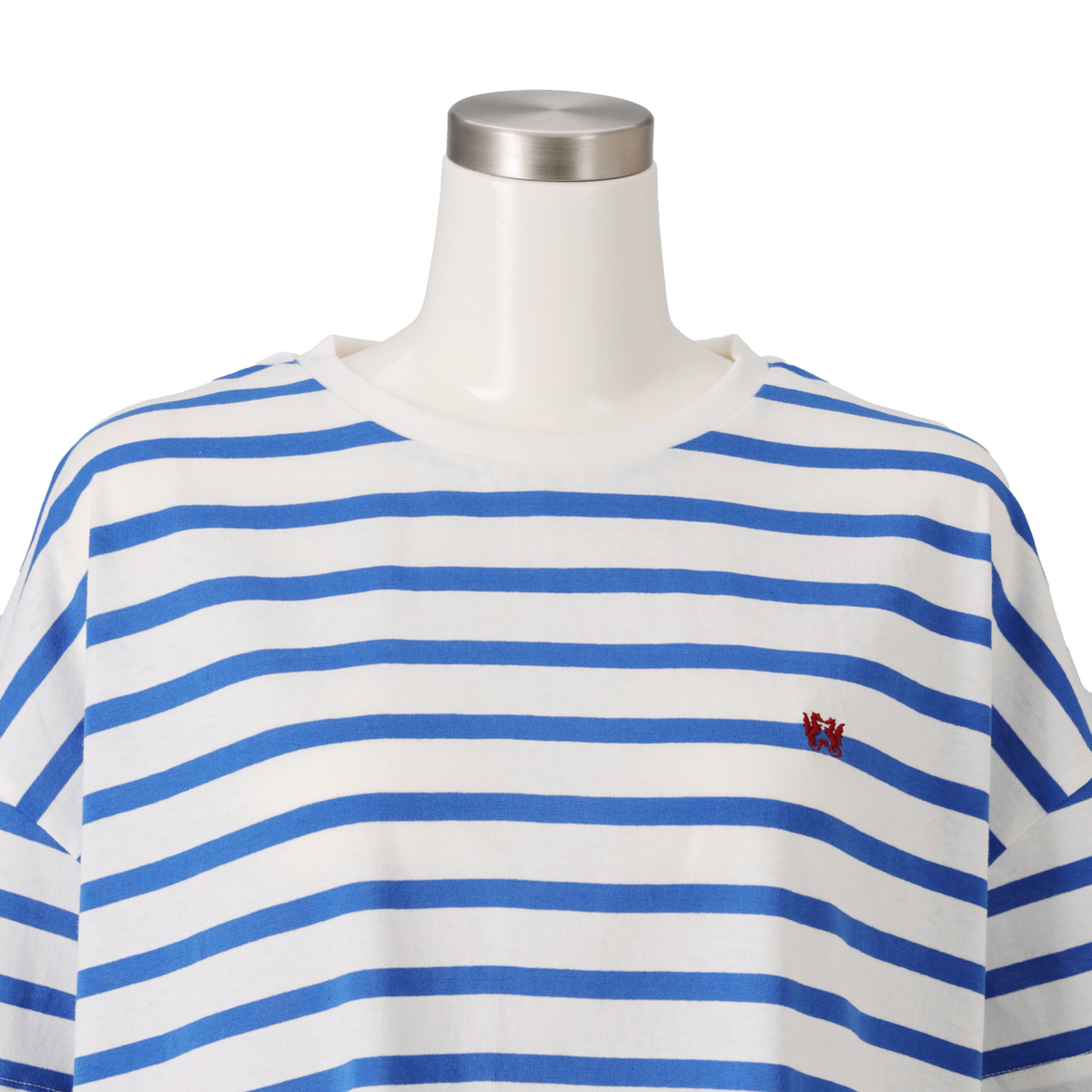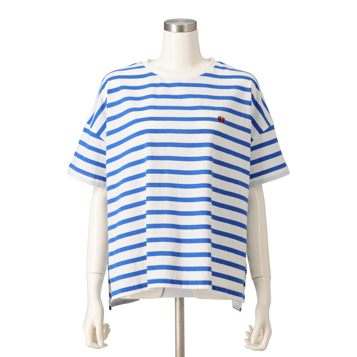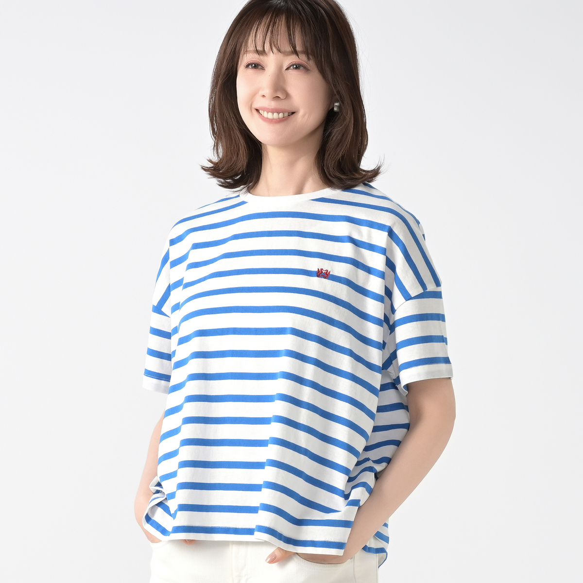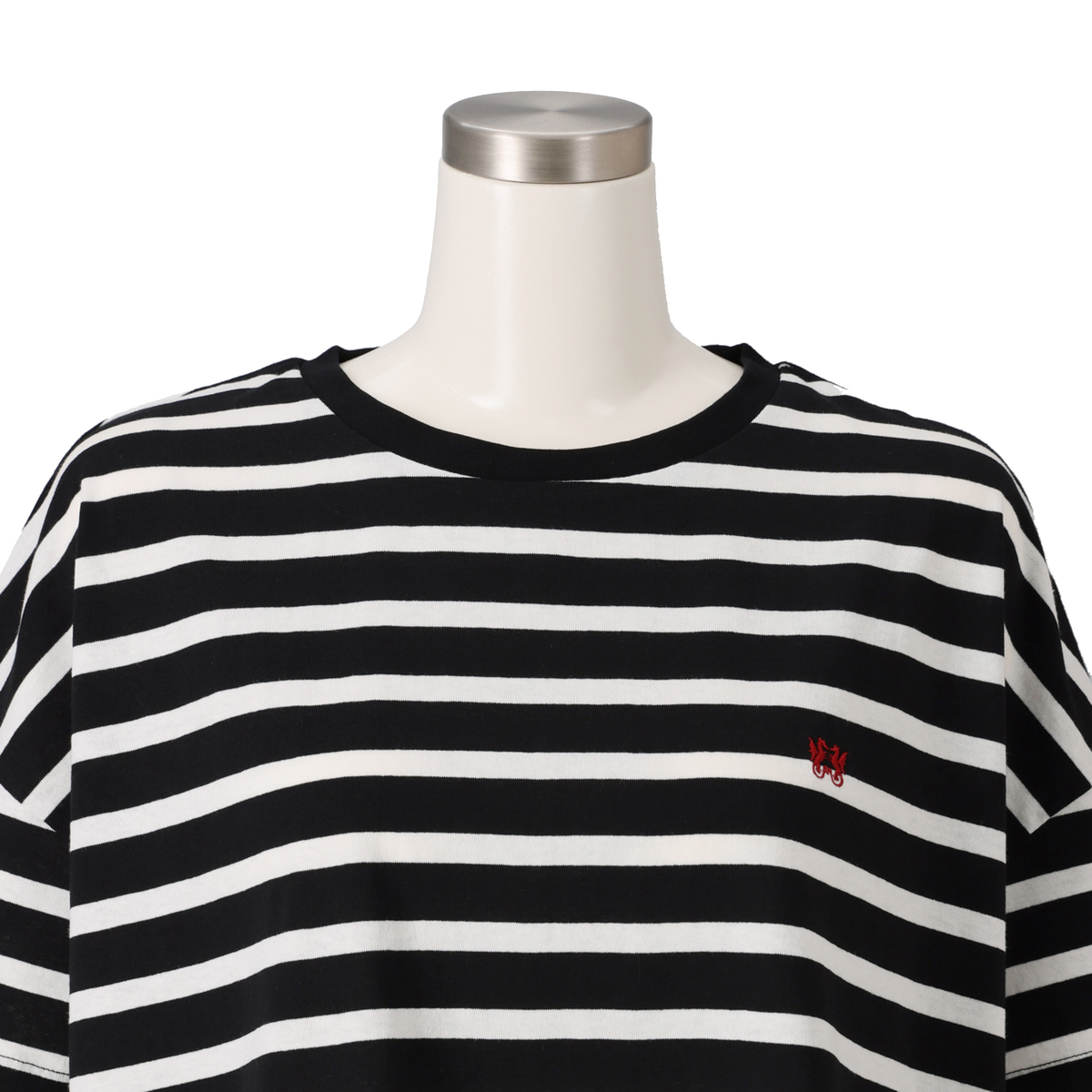 ボーダーと配色のドラゴン刺繍がポイントに。裾に向かってゆったりと広がるAラインのシルエットです。身幅をゆったりと取っているため風通しが良くなっています