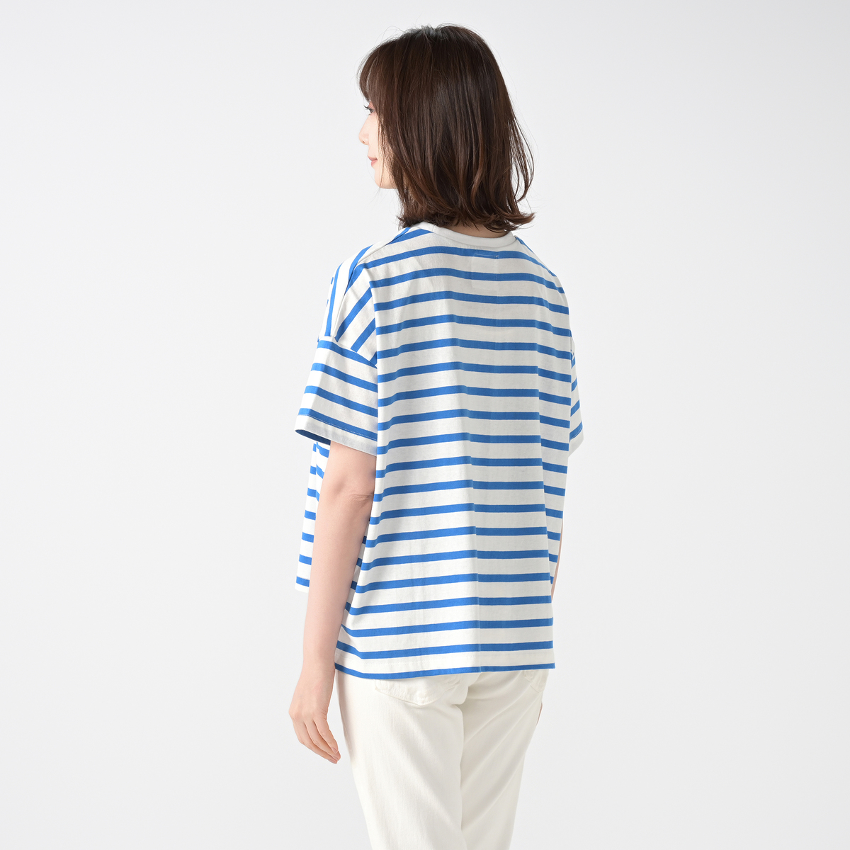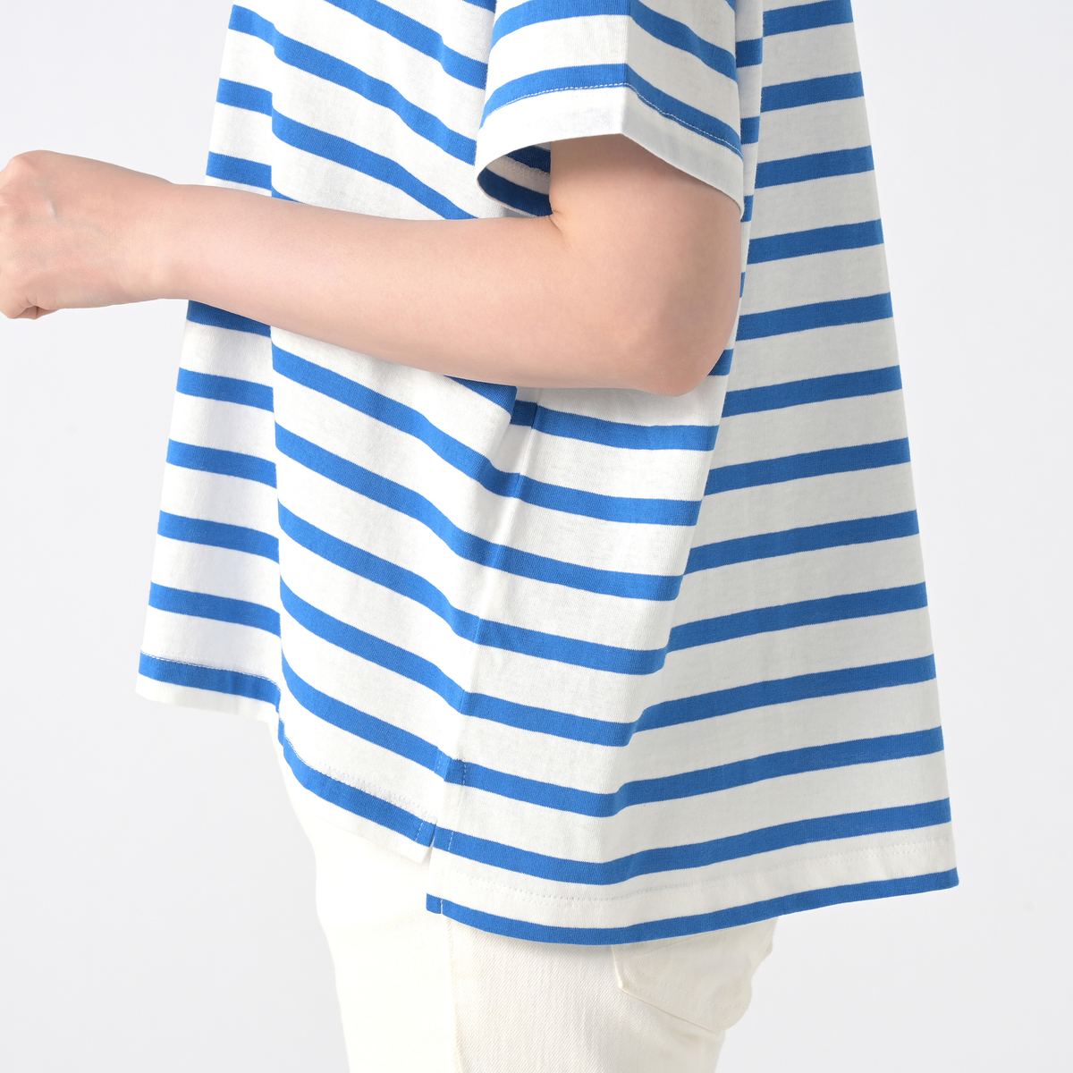 柔らかくサラッとした肌触りが特徴的なコットンの20番手空紡糸を採用。仕上げに洗い加工を施し、やわらかな着心地の1枚に仕上がっています