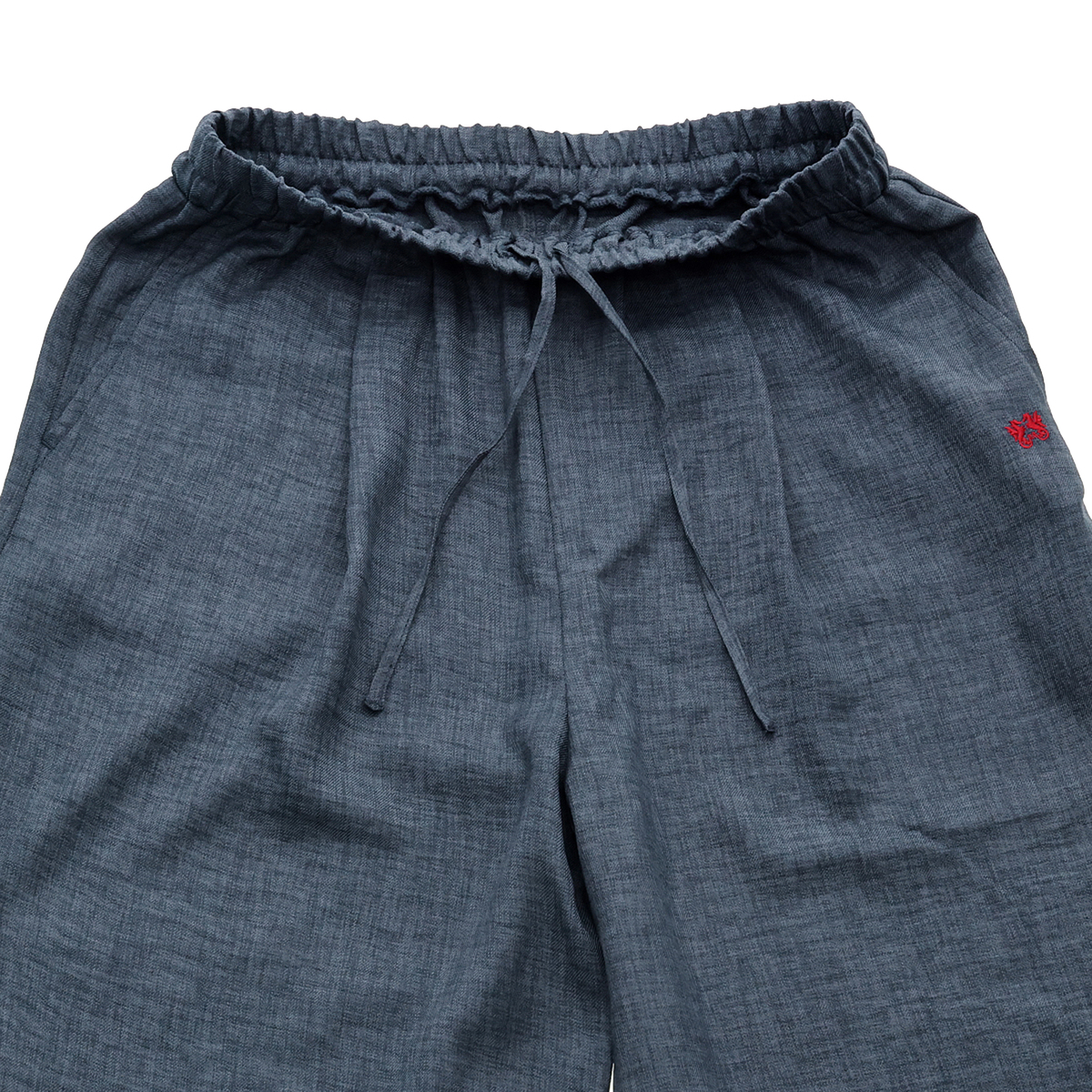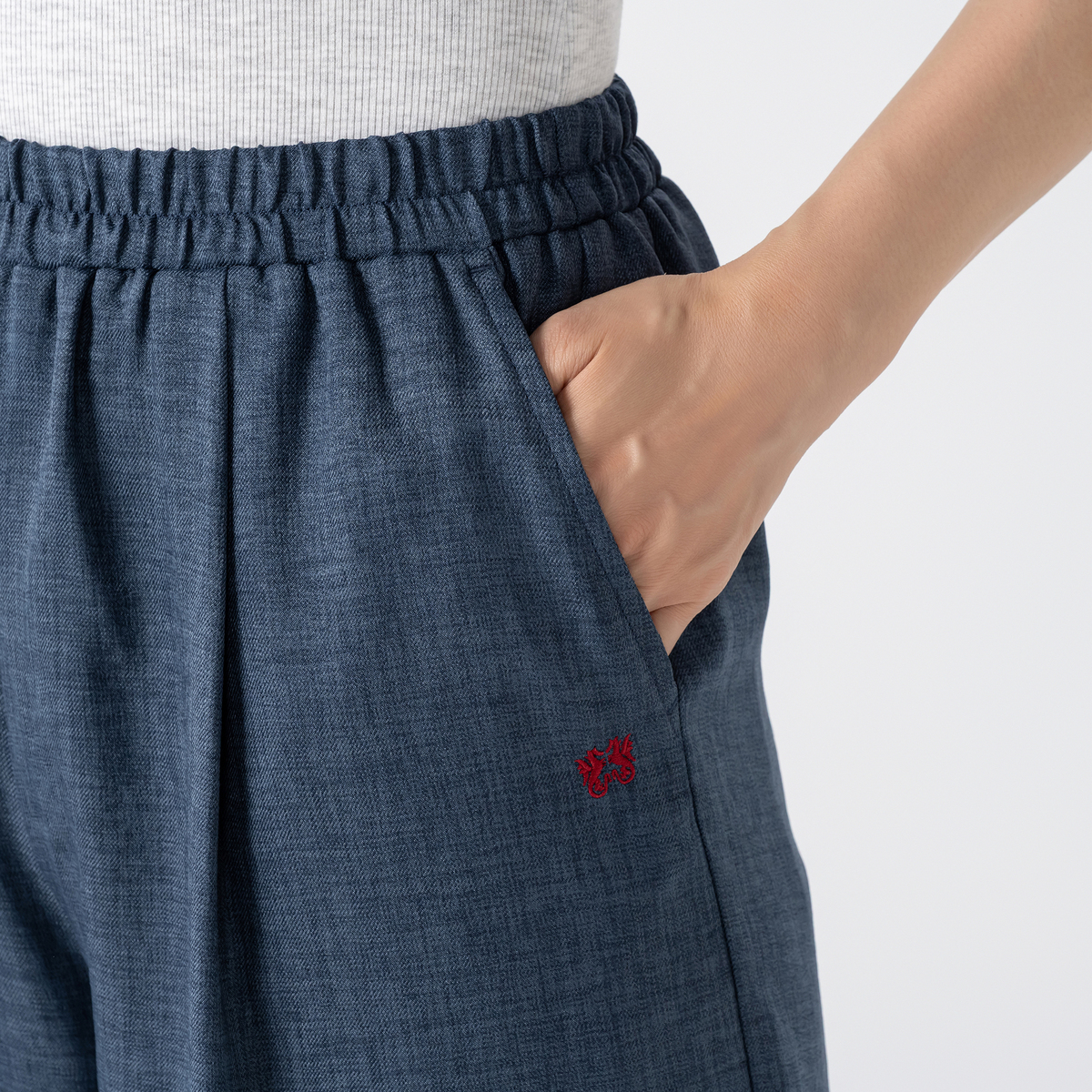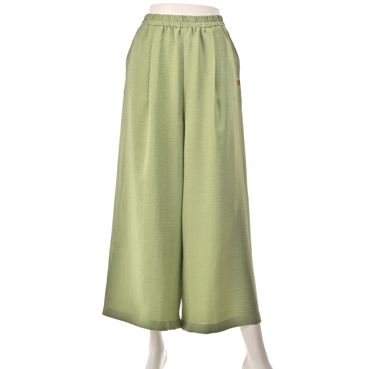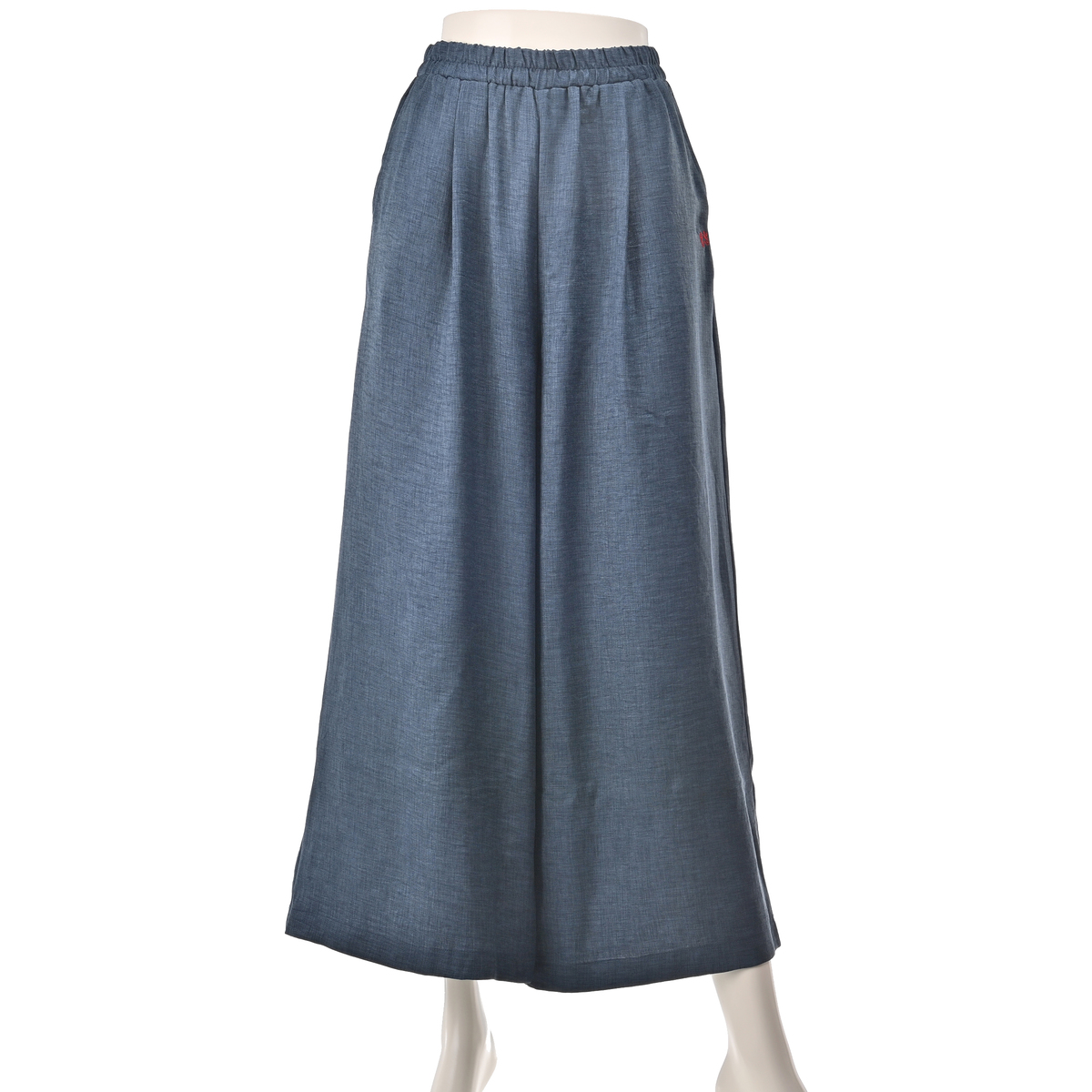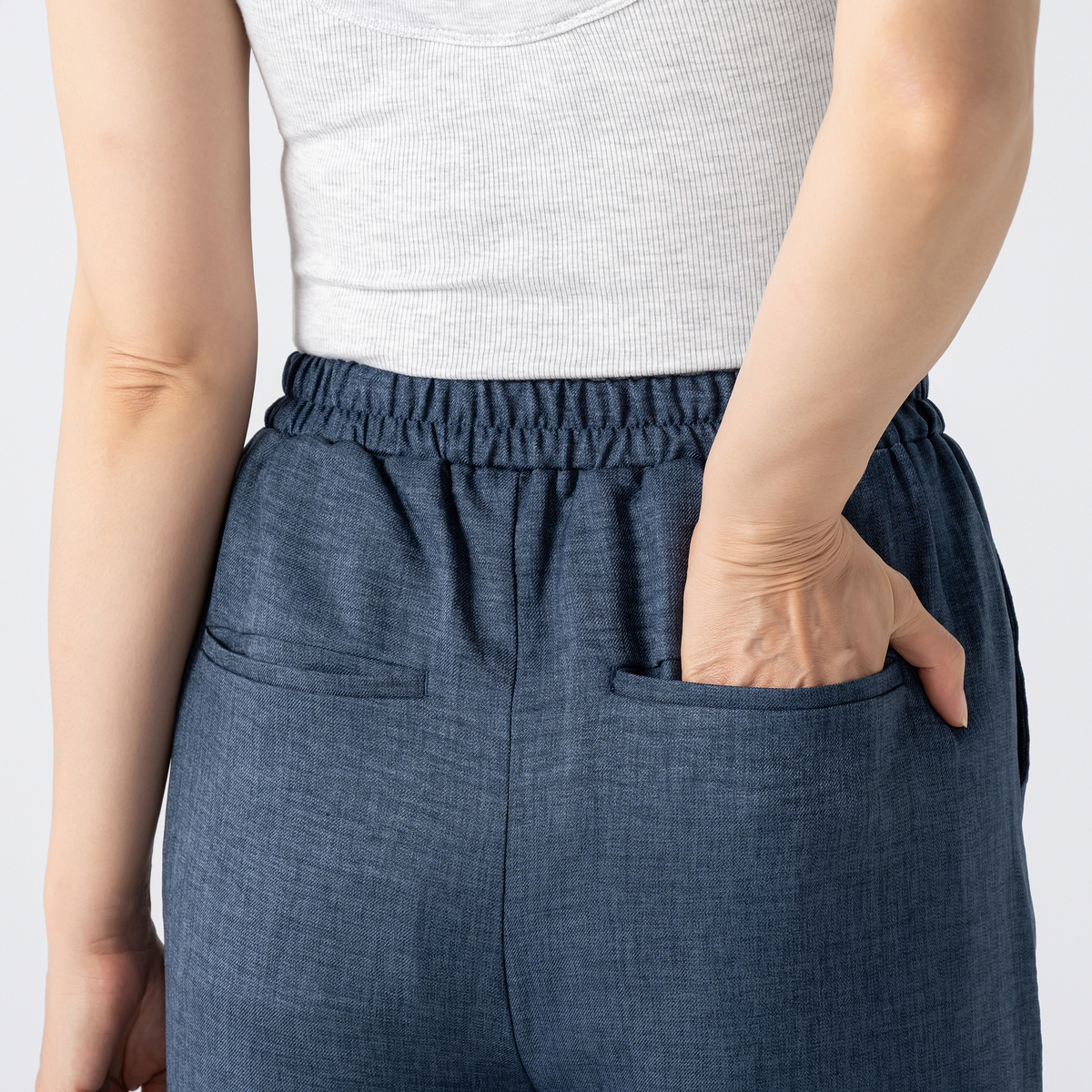 ふっくらと織り上げた麻調合繊で、やわらかな風合いが印象的なワイドパンツ。フロントタックやウエストゴムがゆとりを生み、風通しが良く、快適な穿き心地です