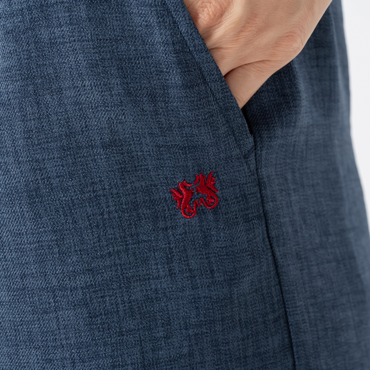 しわになりにくい素材でご自宅でも洗え、お手入れが簡単。左脇のドラゴン刺繍がさりげなく個性をプラスします