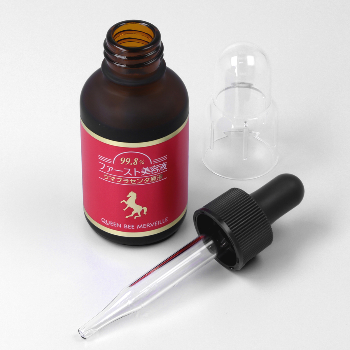 サラブレッドの胎盤を加工。肌に浸透しやすいよう分子化、さらにナノ化した、浸透型ナノ処方のウマプラセンタエキス*1、2)を配合した美容液です。ウマ由来のプラセンタエキス(水を含む)99.8%配合。ウマプラセンタエキスは分子の細かいバブル水(全成分名:水)で抽出しています