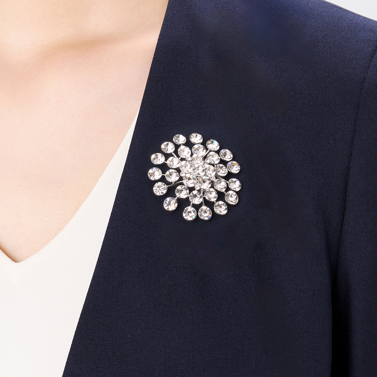 近々、親友の就任祝いがあるのでこのブローチを購入しました 手に取って見ると眩しいほどの輝きです。かなり目立つでしょう 男性用のスーツの上着に付けた所、少しマグネットが弱く感じました 動くとずれそうです。厚い生地には向いてないようです!