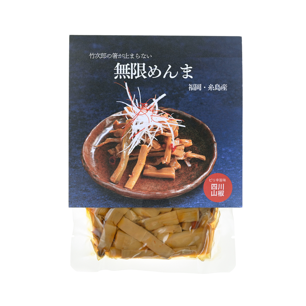 福岡県糸島産のたけのこを使った無限めんま。ご飯や麺類のトッピング、おつまみなどにもおすすめです