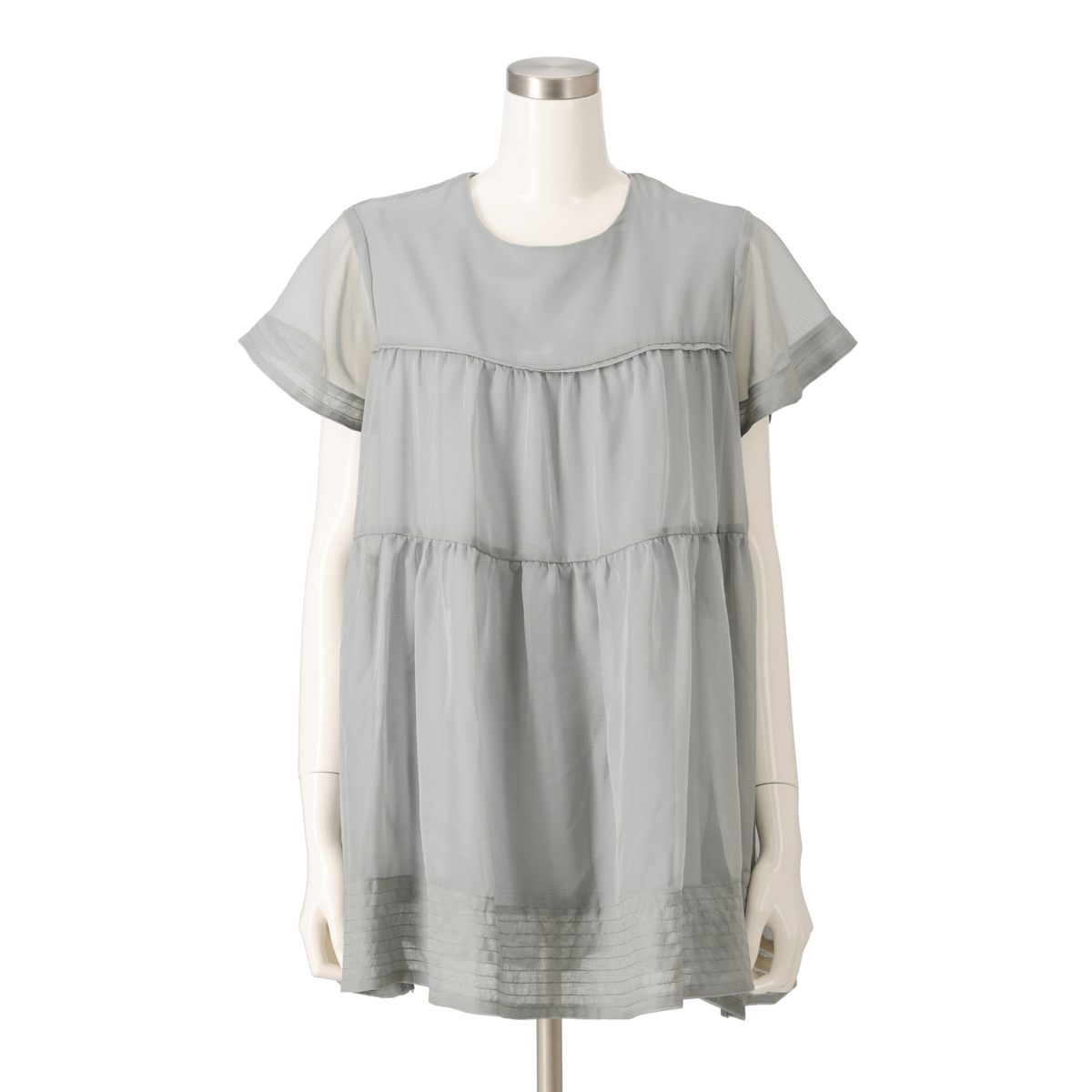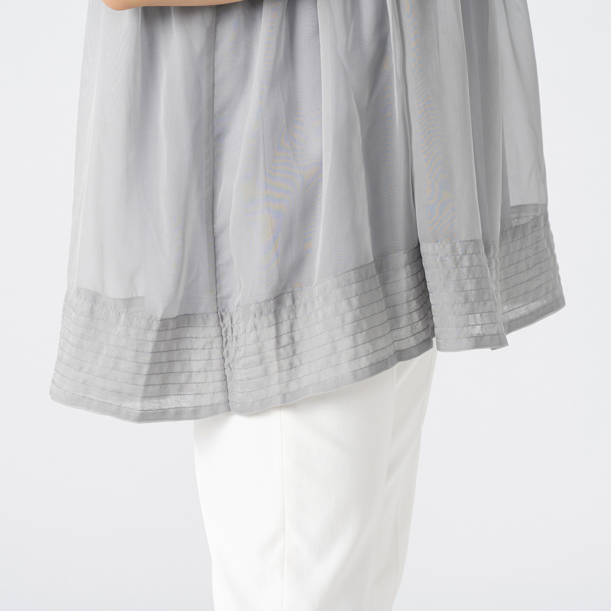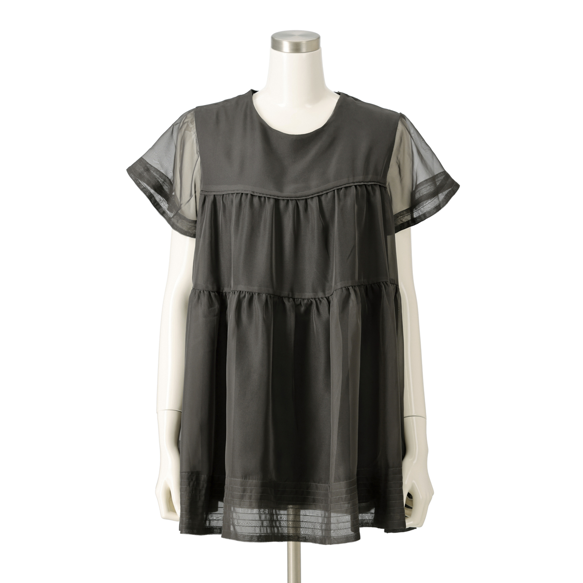 柔らかなシフォンを贅沢に使用したチュニック。優雅なAラインのティアードシルエットで、裾と袖口には複数のデザインステッチを施しました