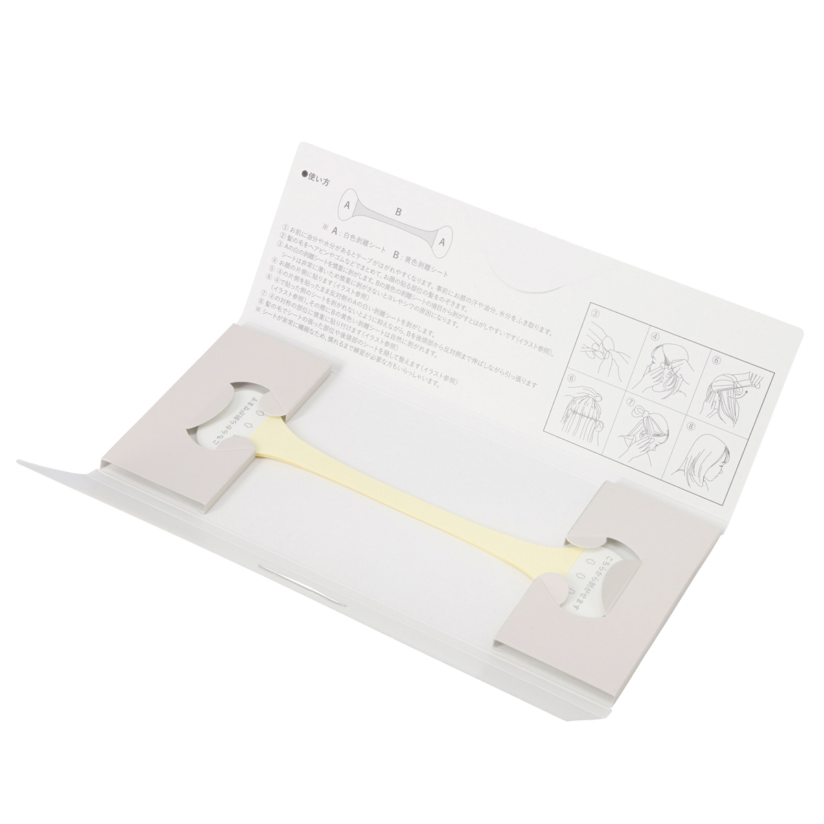 [商品内容] 本体シート(1セット7枚)×2+2枚/計16枚 [サイズ] 本体シート(1枚):16×4cm [使用方法] 1.お肌に油分や水分があるとテープがはがれやすくなります。事前にお顔の汗や油分、水分をふき取ります 2.髪の毛をヘアピンやゴムなどでまとめて、お顔の貼る部位の髪をのぞきます 3.Aの白の剥離シートを慎重に剥がします。Bの黄色の離シートの境目から剥がすとはがしやすいです(イラスト参照) ※シートは非常に薄いため慎重に剥がさないとヨレやシワの原因になります 4.お顔の片側に貼ります(イラスト参照) 5.4の片側を貼ったまま反対側のAの白い刺離シートを剥がします 6.4で貼った側のシートを剥がれないとように抑えながら、Bを後頭部から反対側まで伸ばしながら引っ張ります(イラスト参照)。その際にBの黄色い刺離シートは自然に剥がれます 7.4の対称の部位に慎重に貼り付けます(イラスト参照) 8.髪の毛でシートの張った部位や後頭部のシートを隠して整えます(イラスト参照) ※シートが非常に繊細なため、慣れるまで練習が必要な方もいらっしゃいます [注意事項] ※剥がす際に爪などを立ててこすると、お肌を傷つける危険性があります ※強く引っ張って剥がすとテープの粘着で肌表面を傷める可能性があります ※傷やニキビ・腫物、整形手術後、肌荒れ、湿疹部位にはご使用できません ※本製品を塗り薬の上から貼ると、肌のダメージの原因になります ※貼る場所によっては耳の付け根にシートが擦れ肌ダメージの原因になります。痛みを感じた際は剥がしてください ※本製品使用により湿疹、かゆみ、等異常を感したときは直ちに使用を中止し、改善のない場合は医師にご相談ください ※湿布や絆創育などに弱いお肌の方は、ご使用をお控えください ※貼ったまま睡眠をしないでください ※一度使ったシートを再度使うことはできません ※高温多湿環境、直射日光のあたる場所での保管は避けてください ※小児の手の届かない場所で保管してください 【日本製】