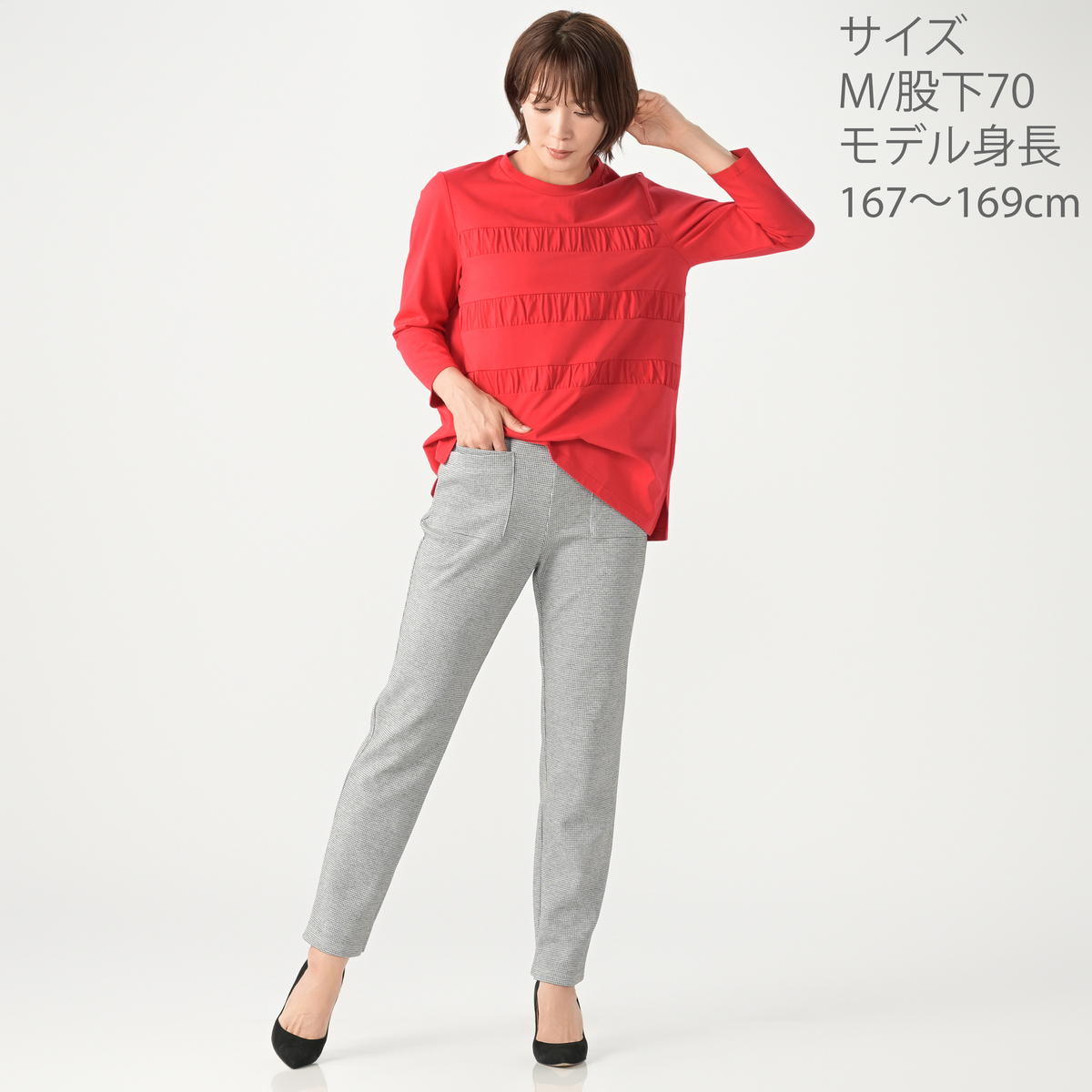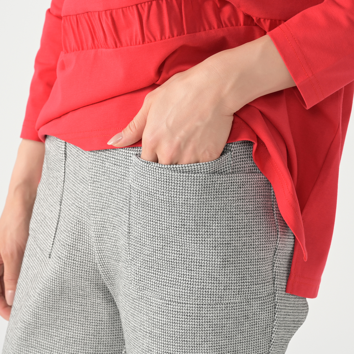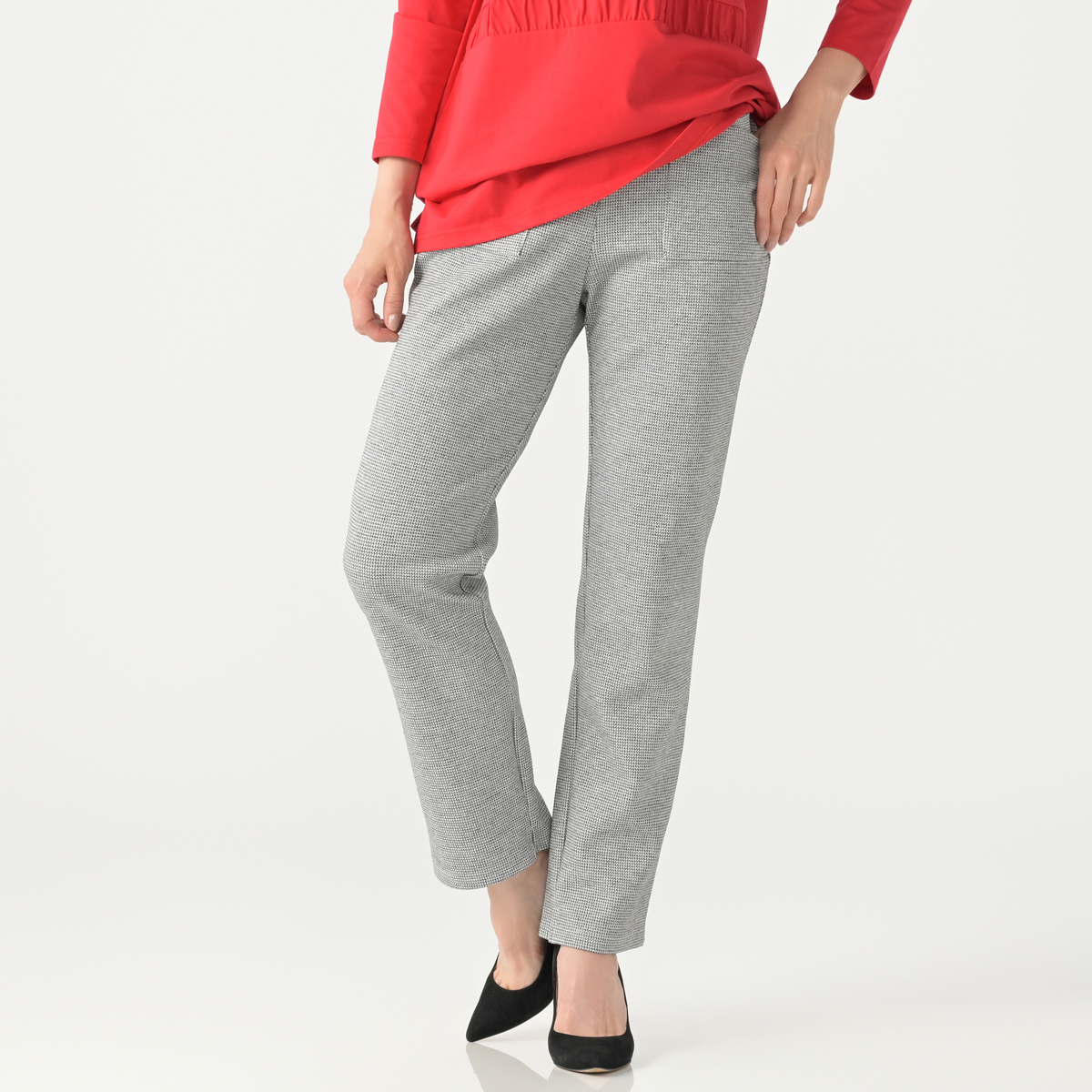 千鳥柄と無地をご用意。day to dayならではのこだわりパターンでスタイルを良く見せてくれます