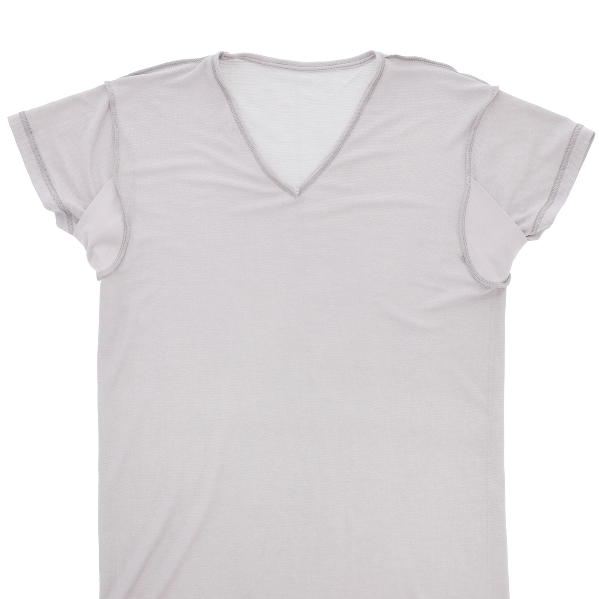 脇下の汗じみを緩和する汗取りパッド付き。汗取りパッドに使用している生地は消臭性があり、汗の臭いが気になりにくいのもポイントです。肌あたりも考慮して、薄くてやわらかい素材を使用しました