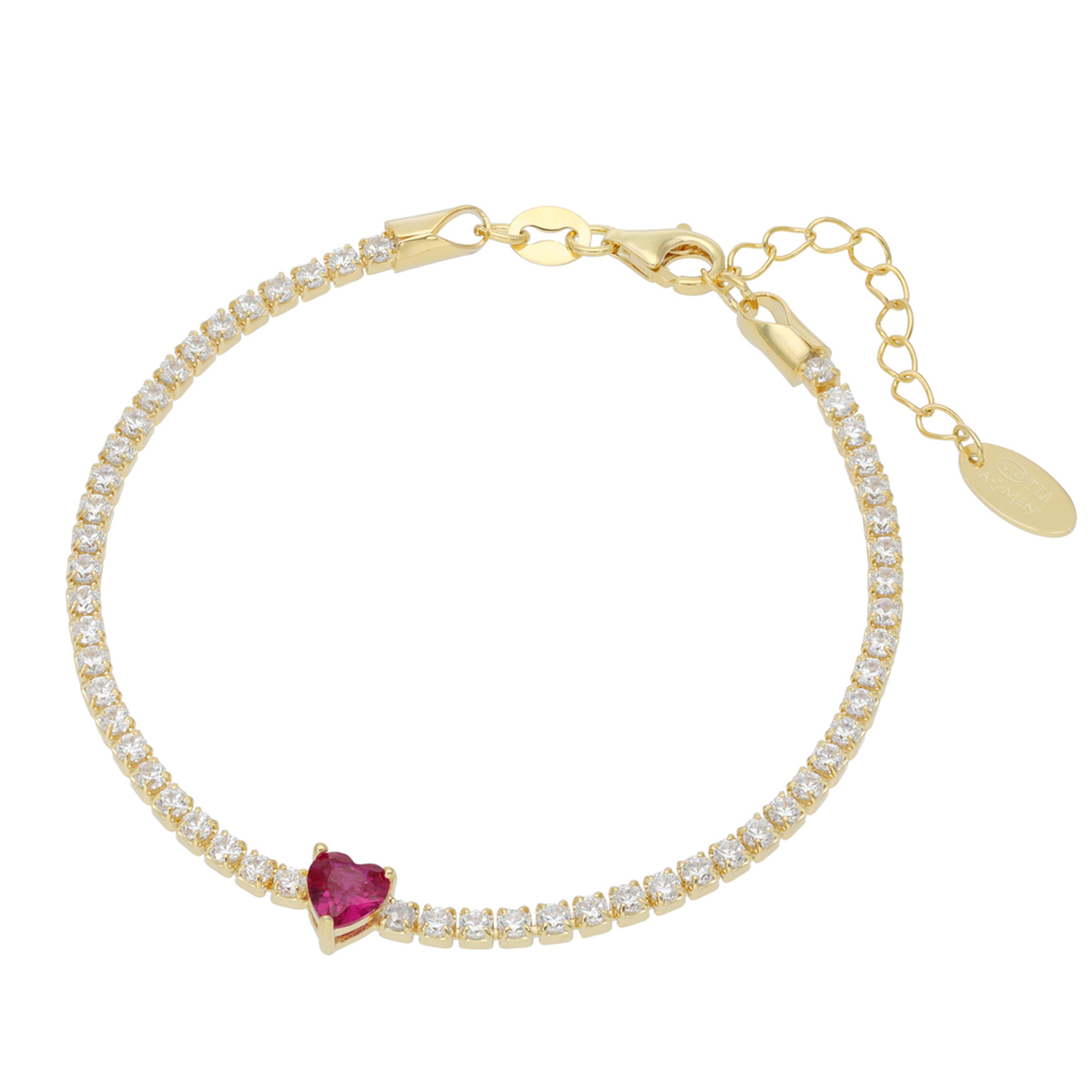 ピンクカラーのハートがポンイトのテニスブレスレット。キュービックジルコニアの愛らしいハートモチーフが遊び心をくすぐるデザインです。アジャスター付きなので、お好みのフィット感でお使いいただけます