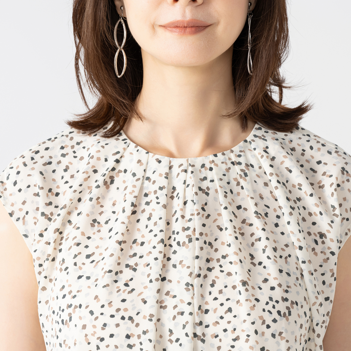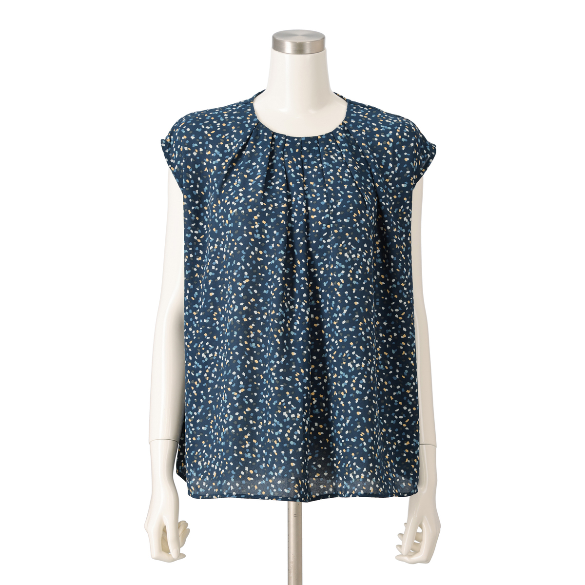 No. 744327 CARRIERE プリントエレガントタックブラウス