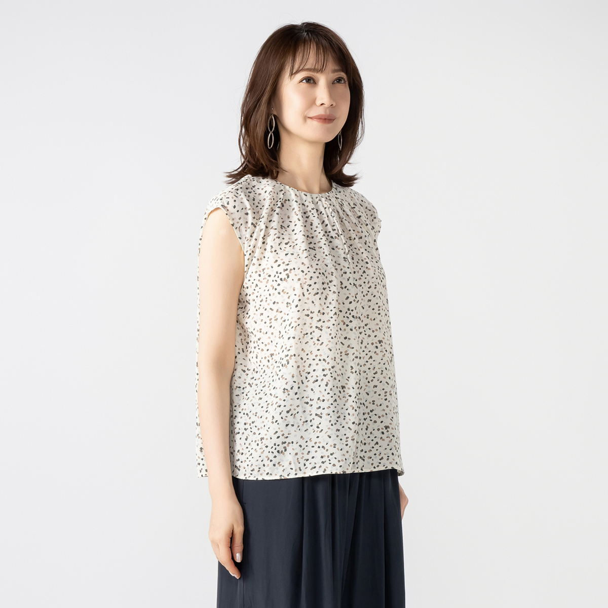 No. 744327 CARRIERE プリントエレガントタックブラウス