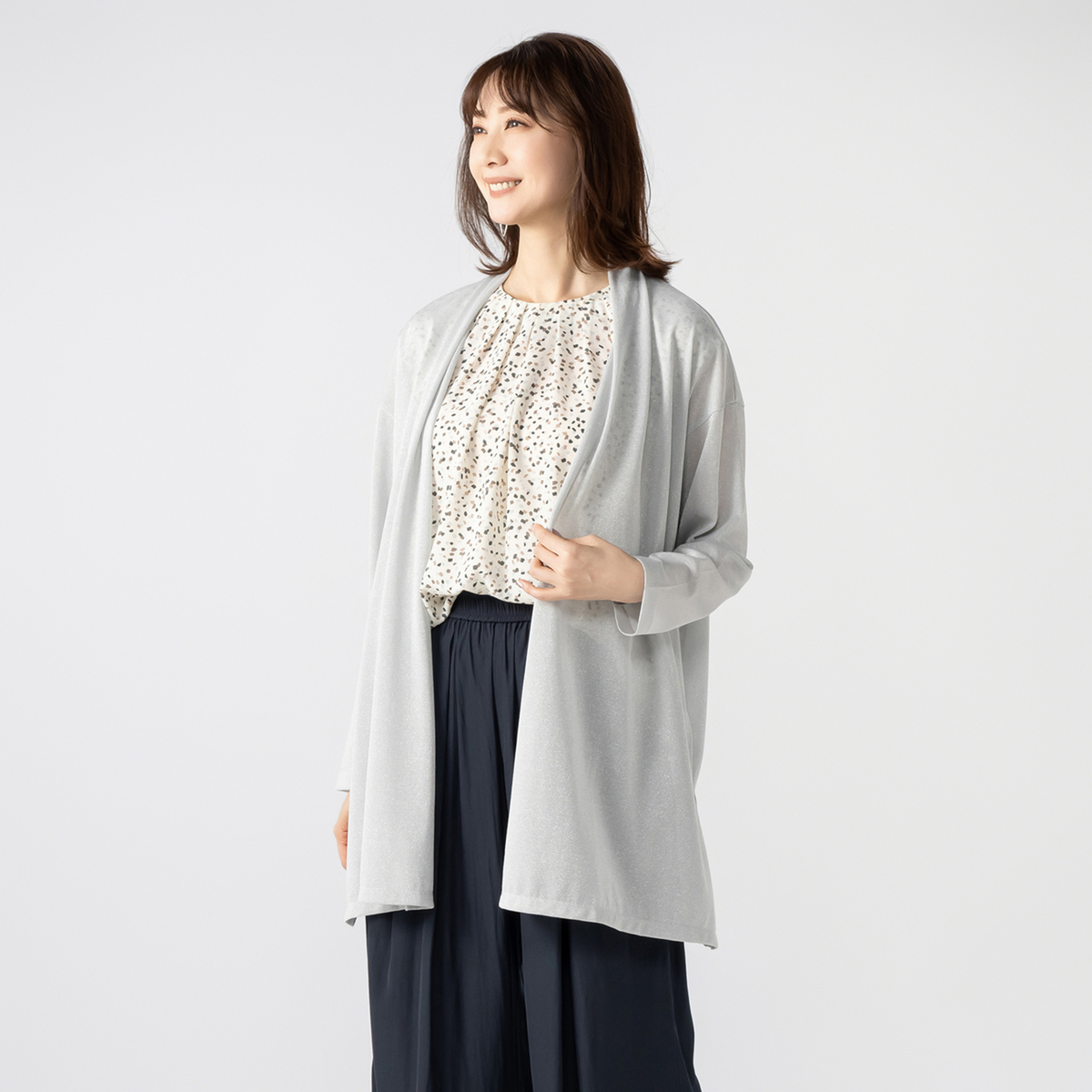 軽くエアリーな生地で肌離れも良く、さらっと羽織れる一枚。程よい長さとゆとりのあるロング丈が、気になる腰やお腹周りをカバー。日差しカバーや冷房対策としても重宝するアイテムです