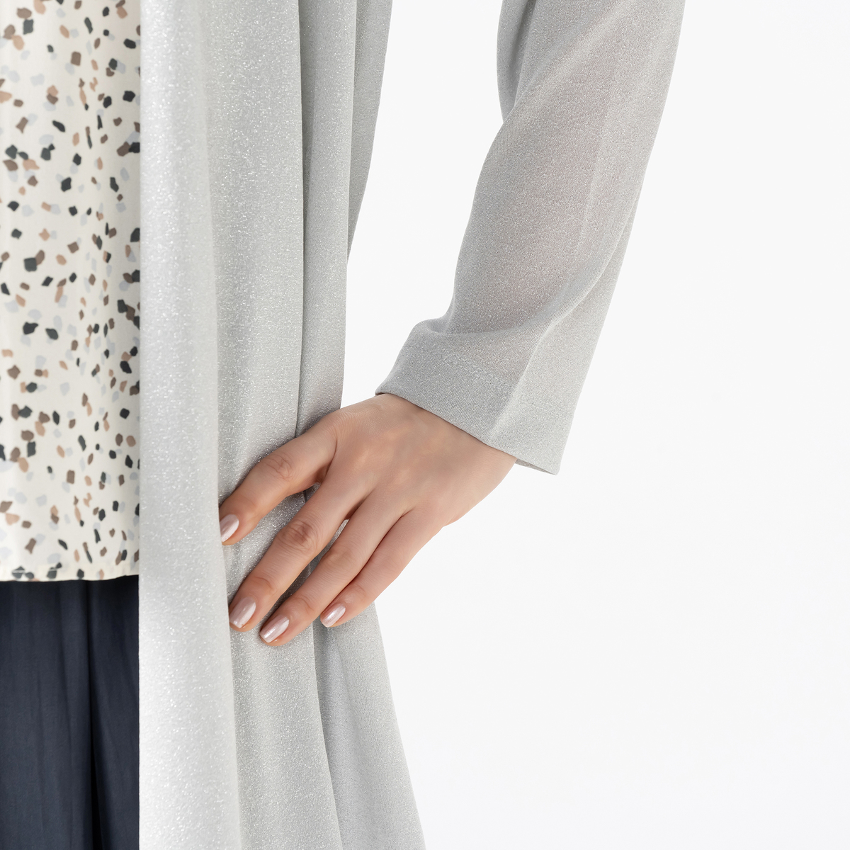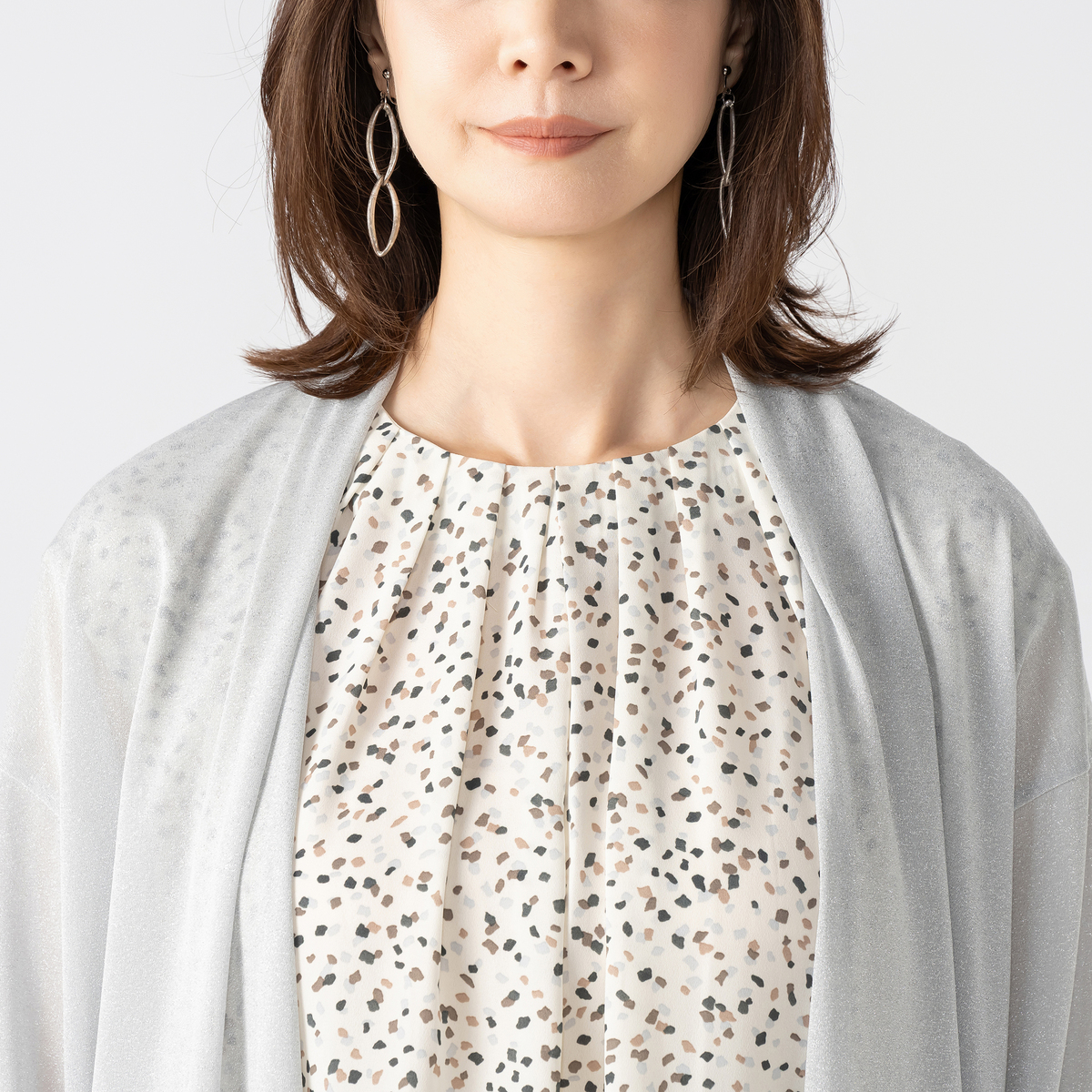 キラキラのラメで旬な表情を添えるカットソーカーディガン。いつものコーディネートにプラスするだけで、お洒落感がアップする着こなしに