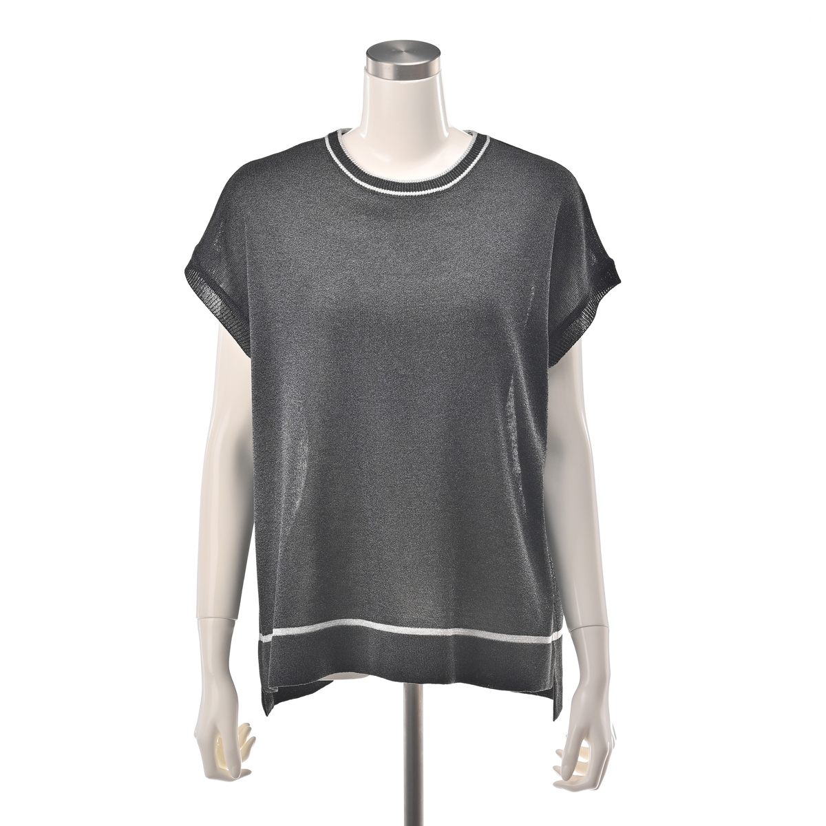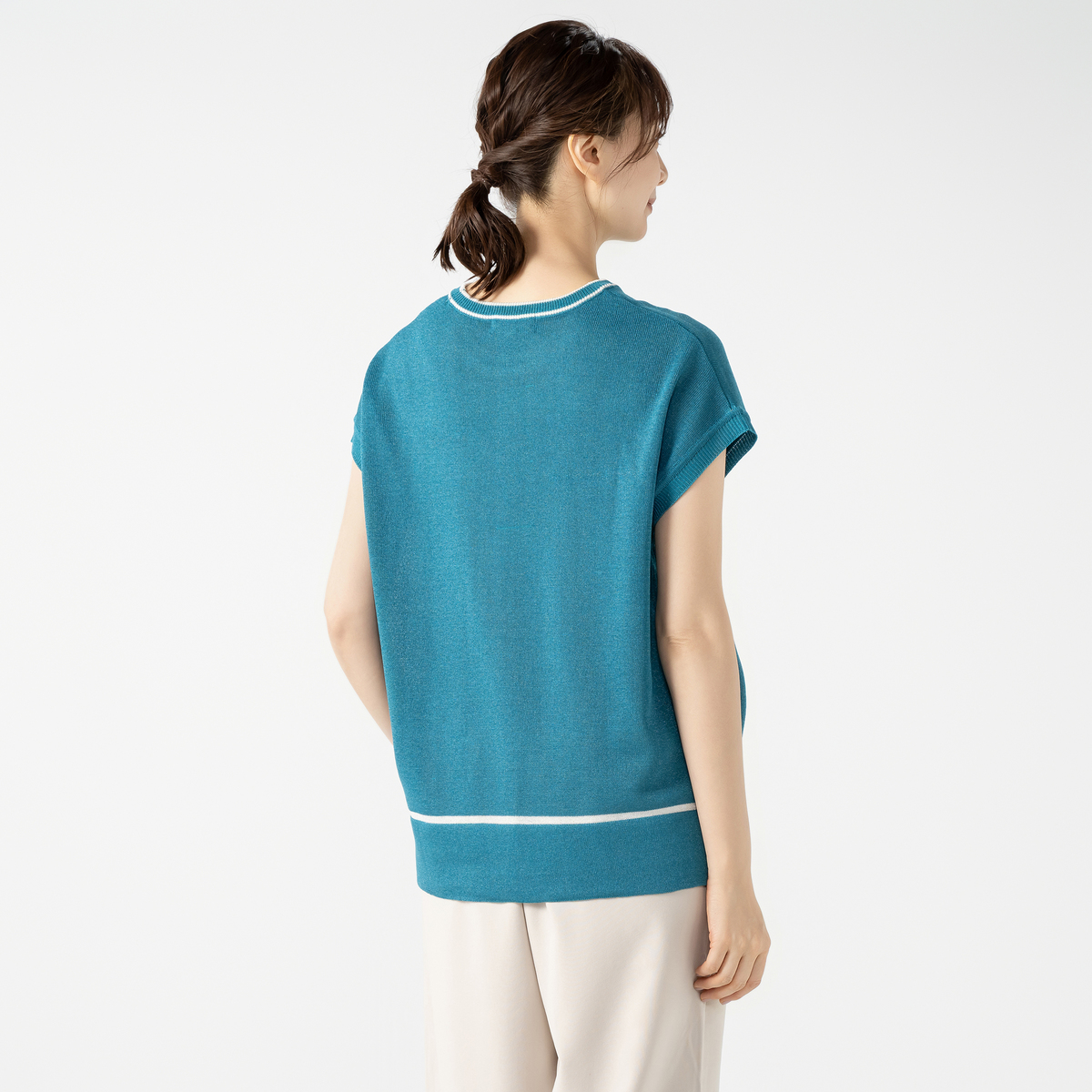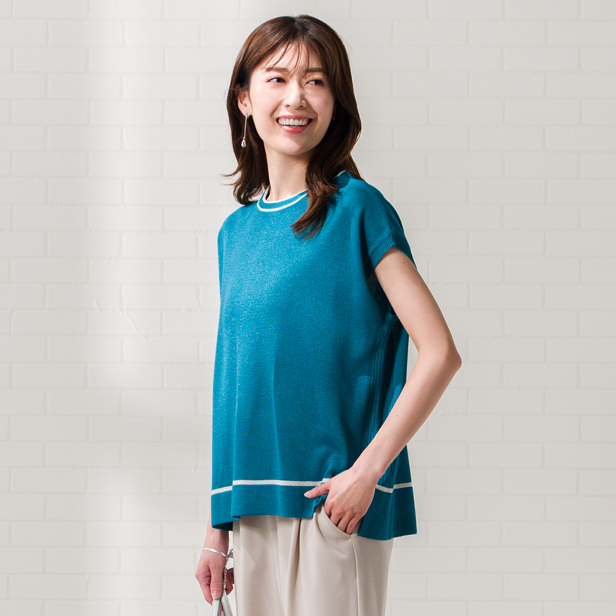 No. 744337 CARRIERE 裾ラメ配色ニットフレンチスリーブプルオーバー