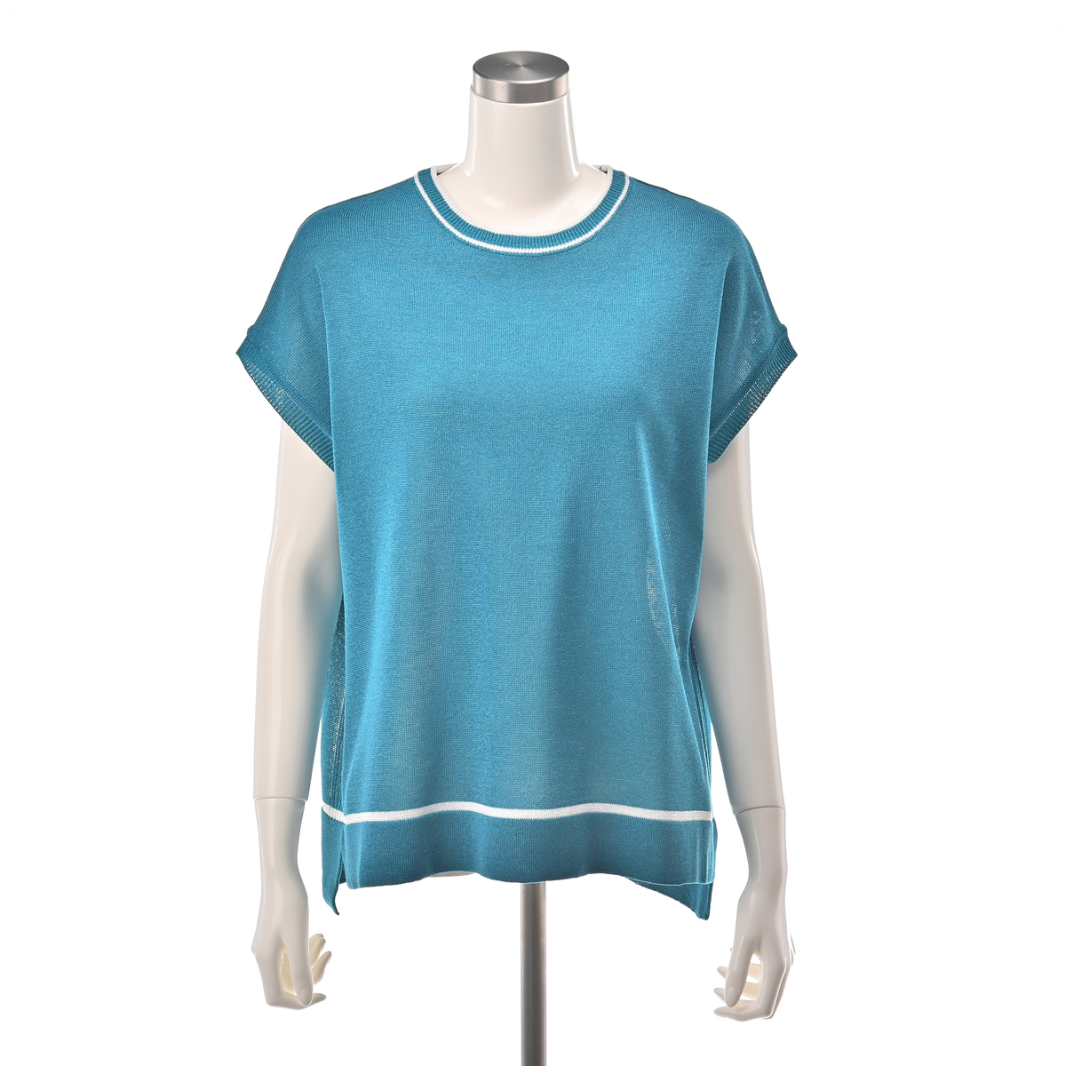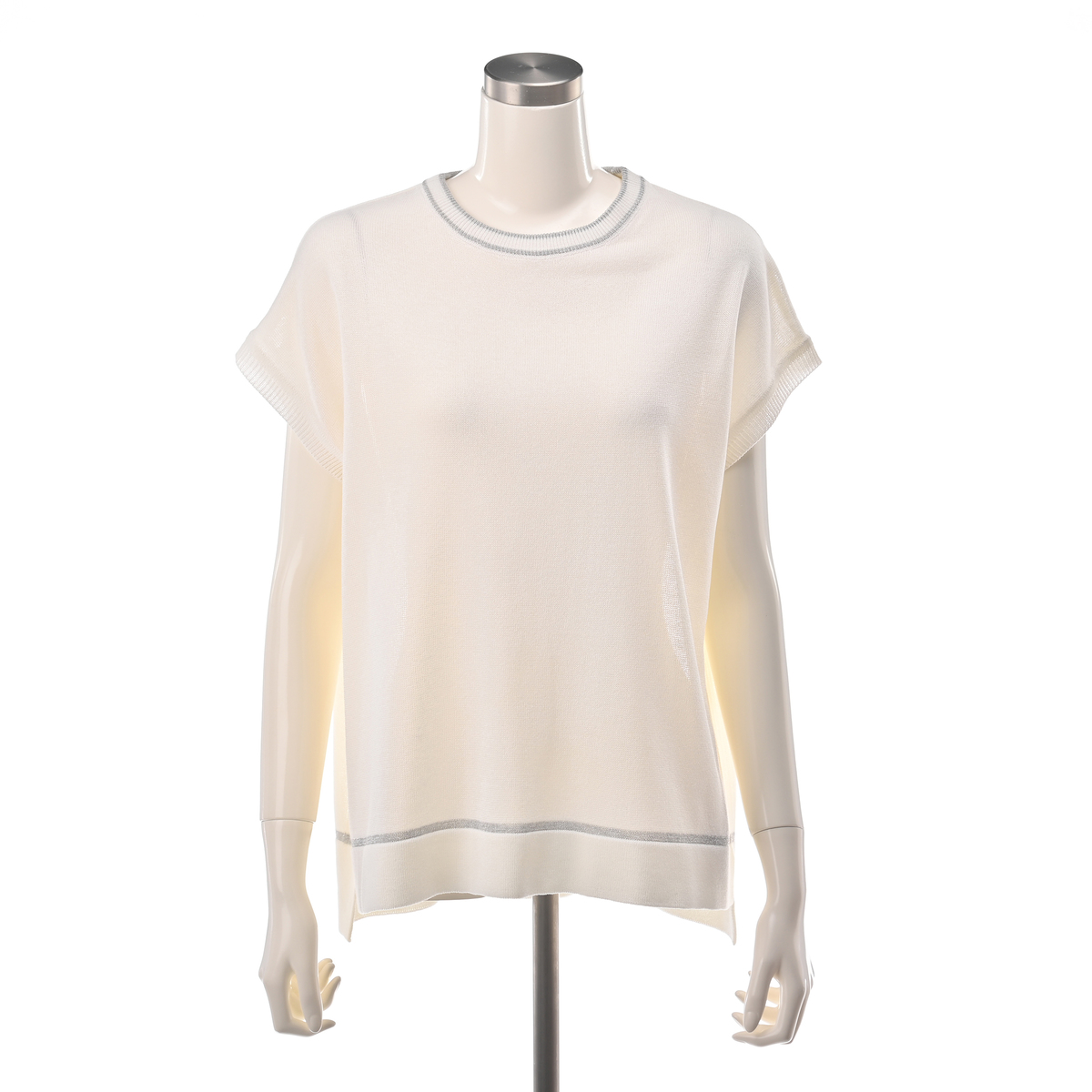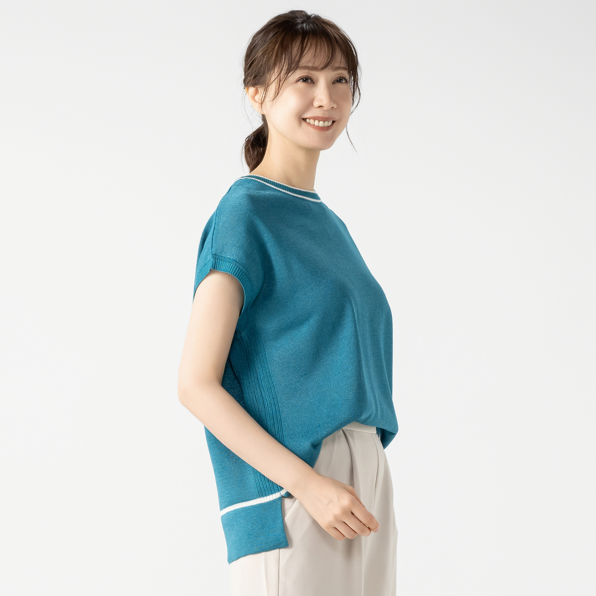 No. 744337 CARRIERE 裾ラメ配色ニットフレンチスリーブプルオーバー