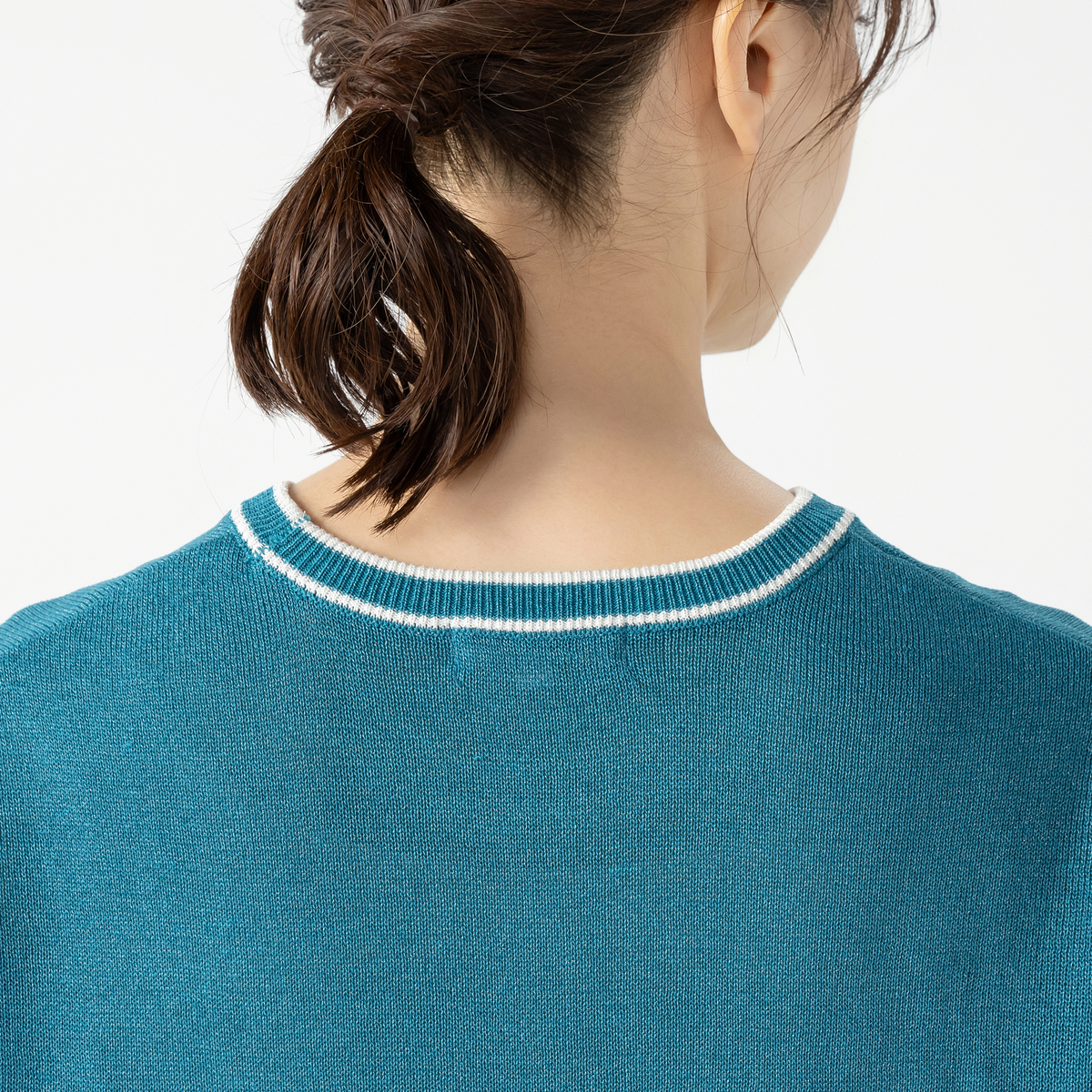 ラメ使いで上品な華やぎ感を添えたプルオーバー。シンプルなコーディネートにフェミニンなアクセントを添えるデザインです