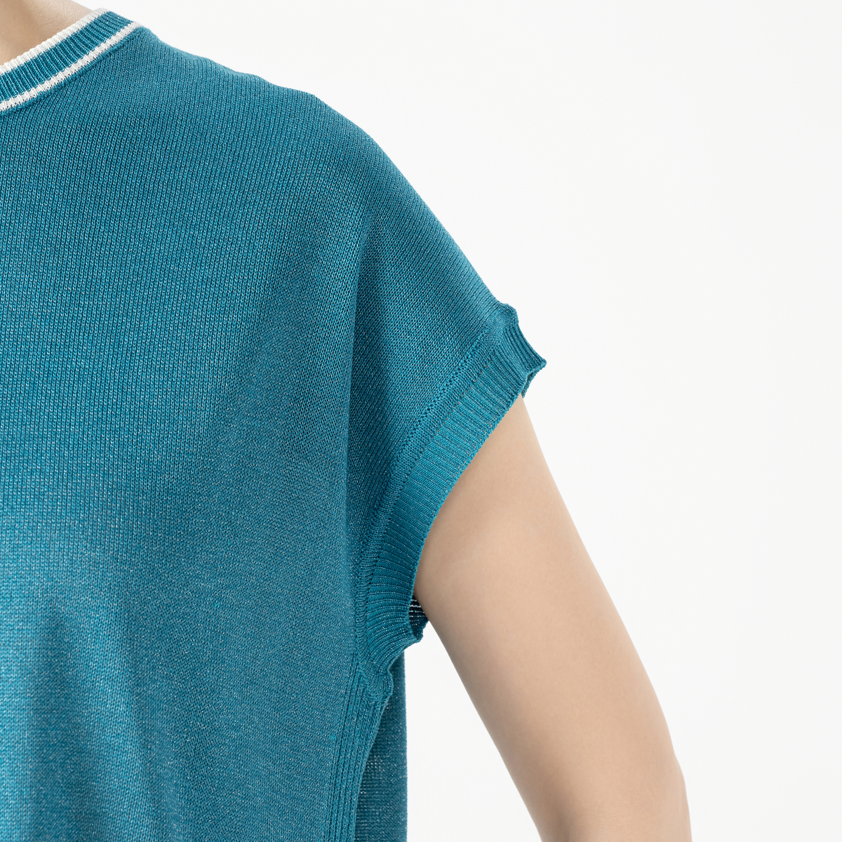 CARRIERE 裾ラメ配色ニットフレンチスリーブプルオーバー