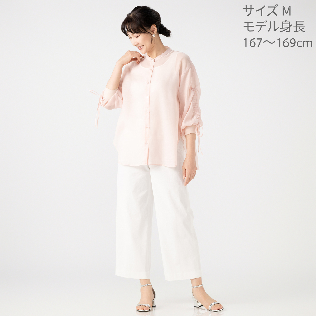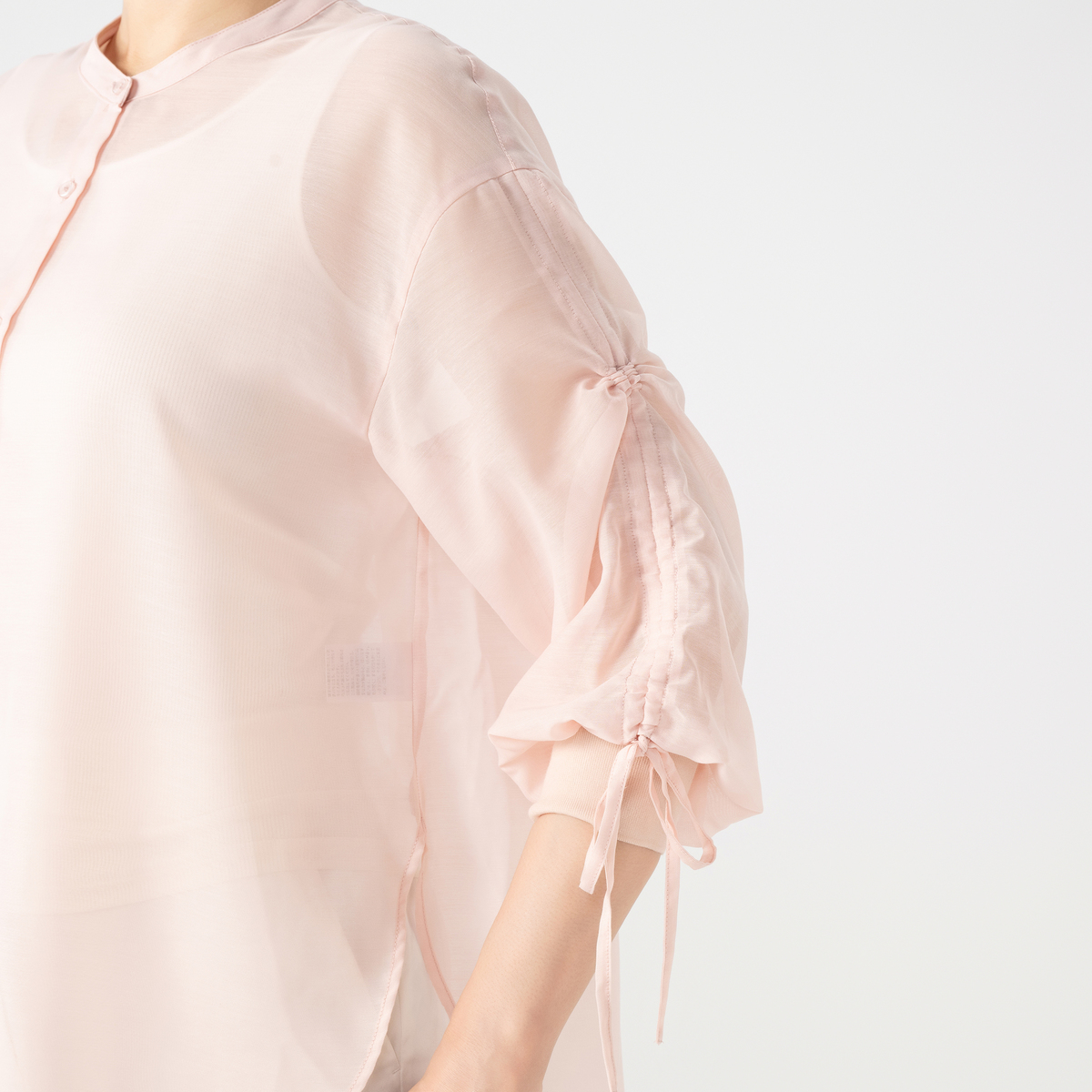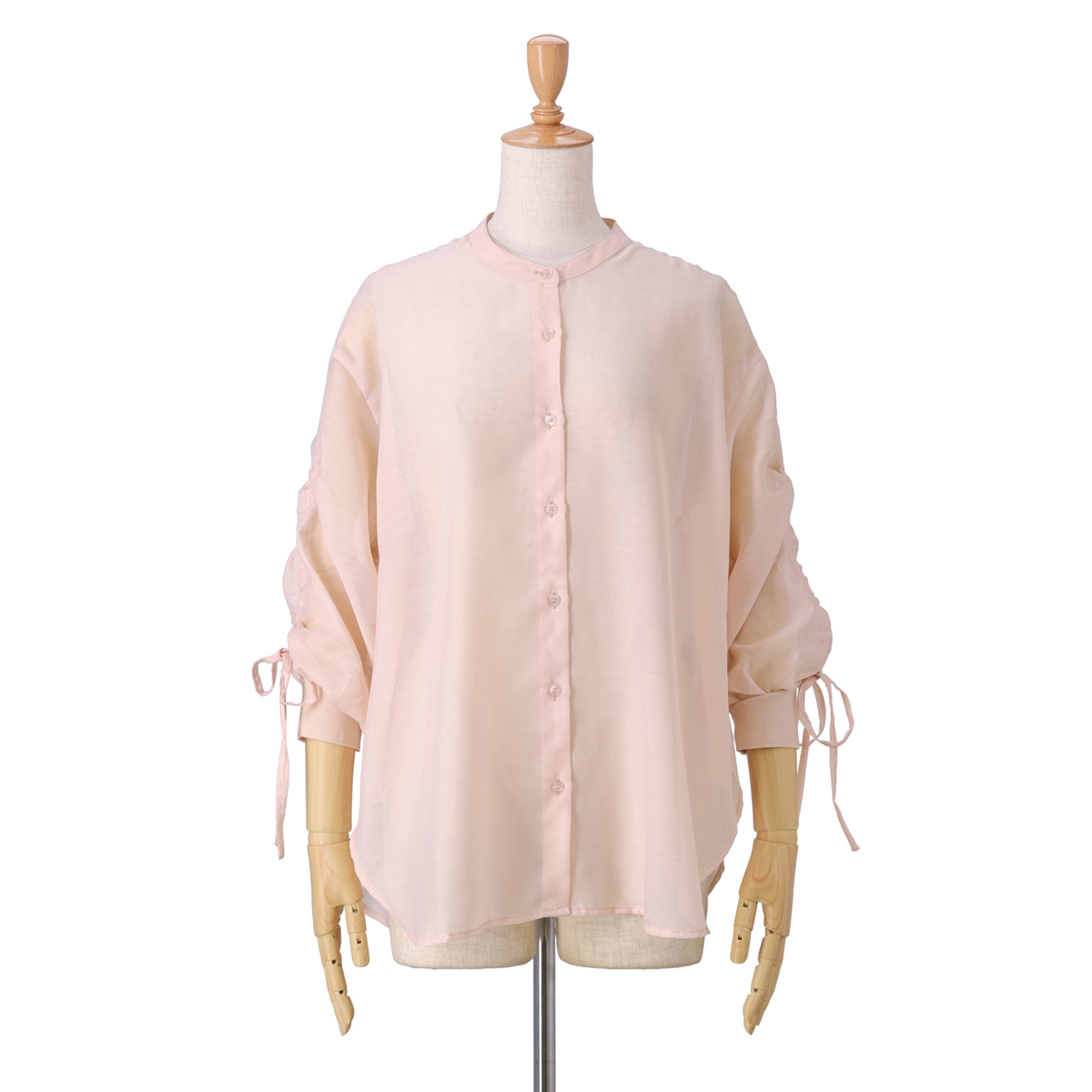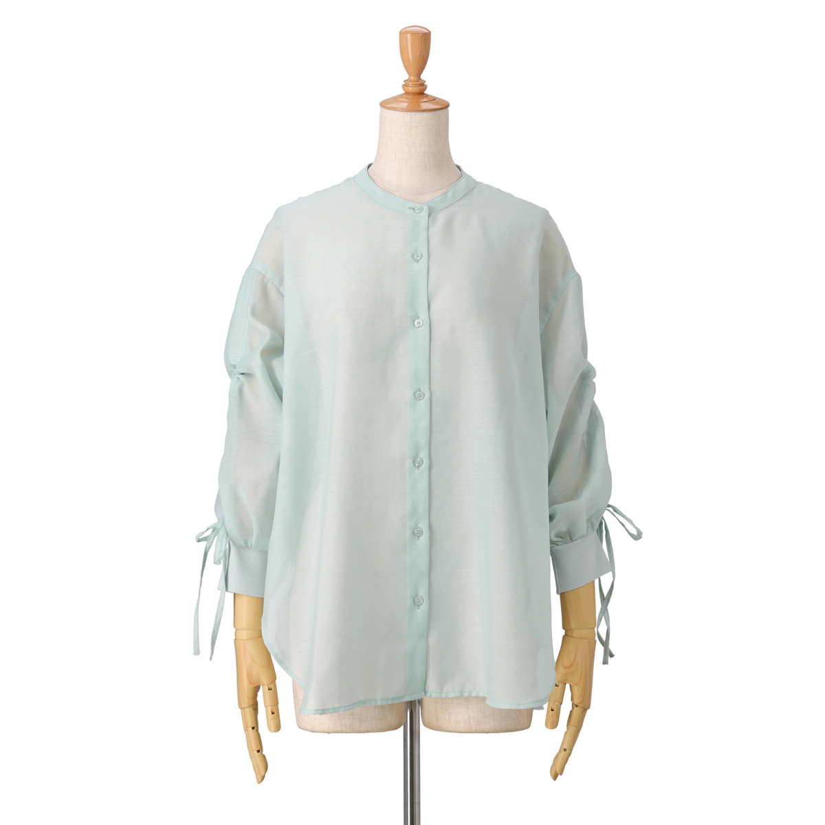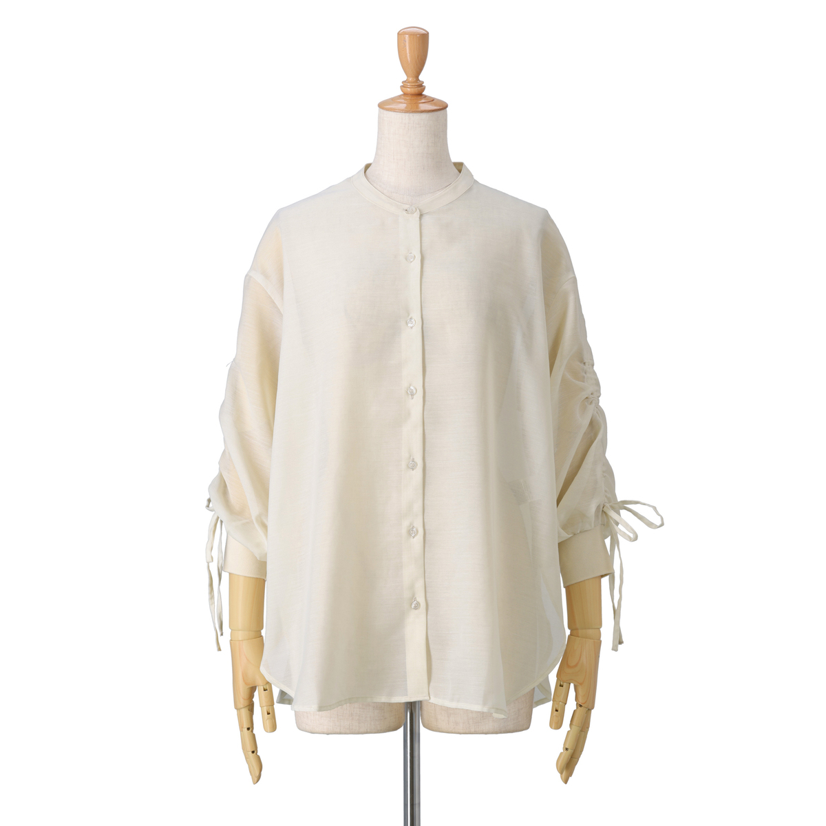 ギャザーを寄せた袖が特徴のバンドカラーシャツカーディガン。袖に寄せる分量でお好きなシルエットに。リブ素材の袖口で腕まくりしやすくなっています