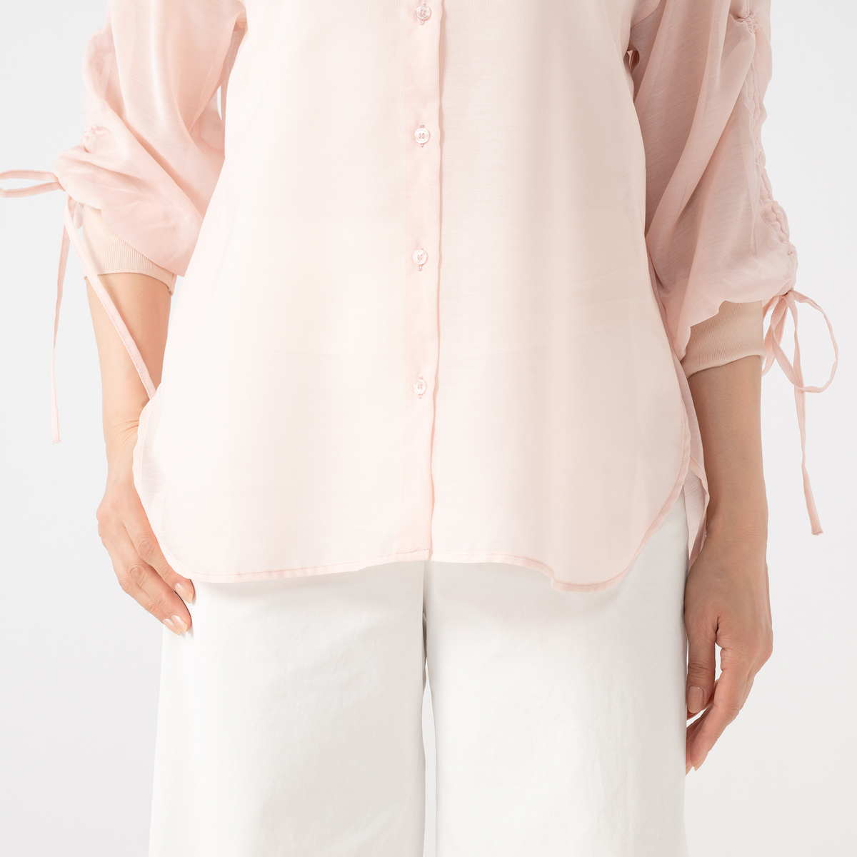 No. 744338 CARRIERE 袖シャーリングシースルーシャツカーディガン