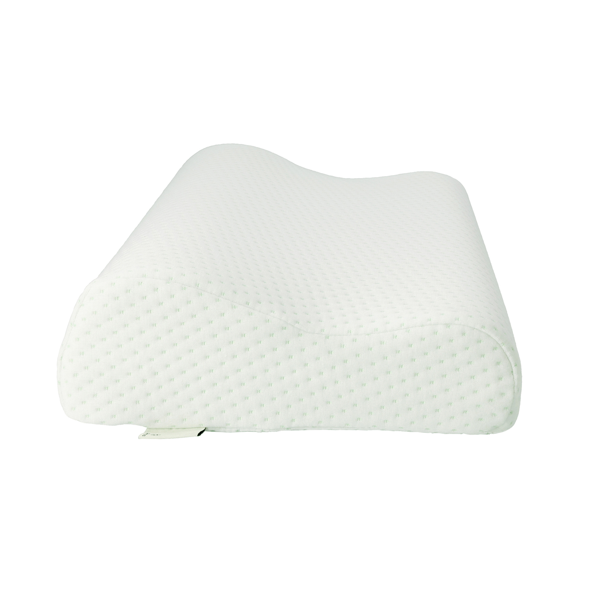 ウェーブ構造で頭部をサポートするウレタンフォームピロー。仰向けでも横向きでも快適な寝姿勢を維持します