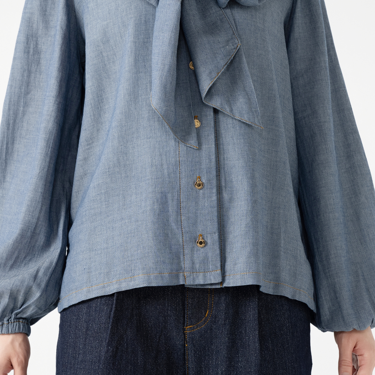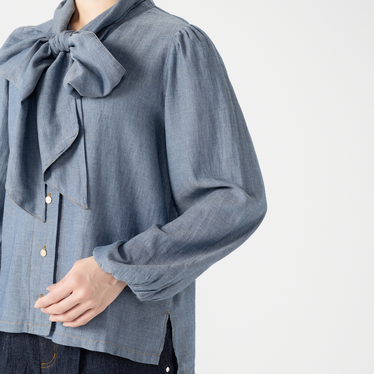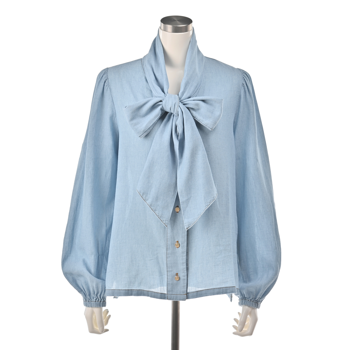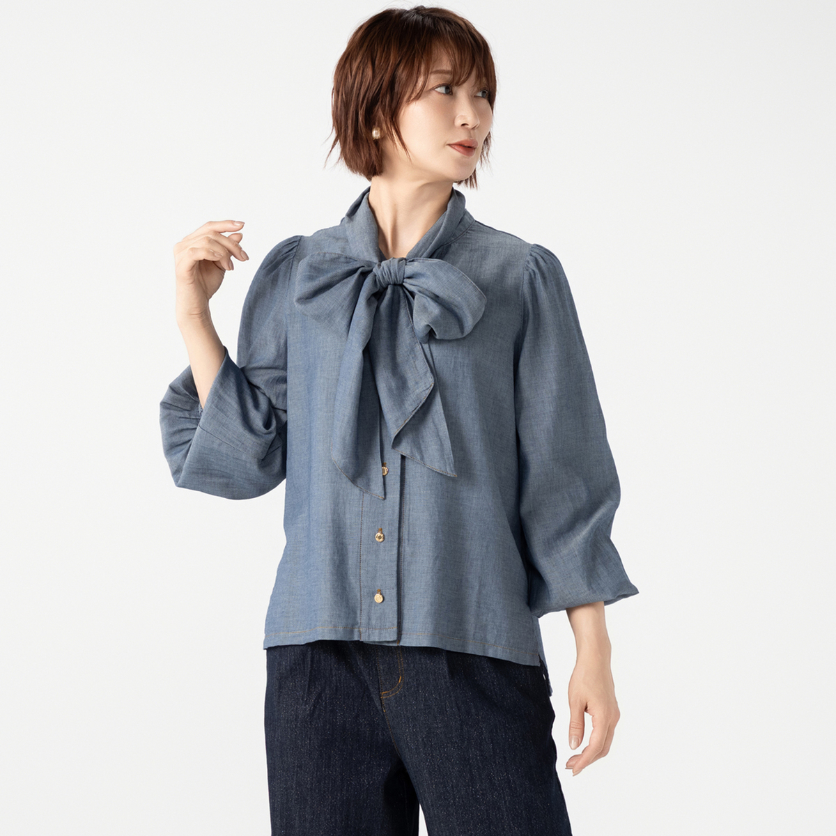 No. 744348 Anne Coquine ライトオンスドビーデニムボウタイブラウス
